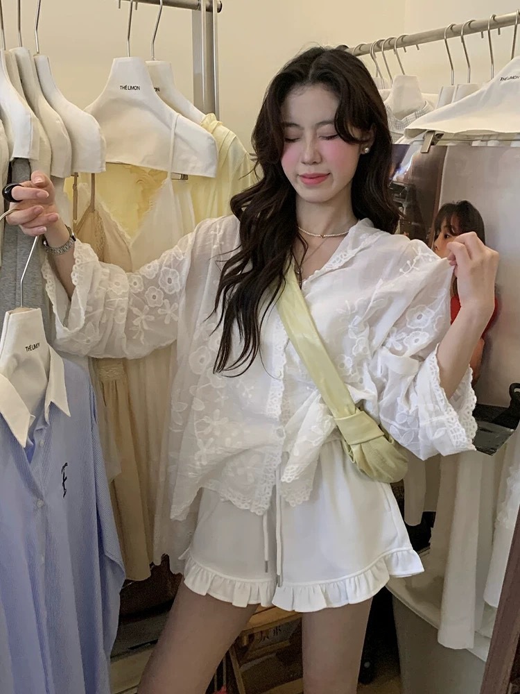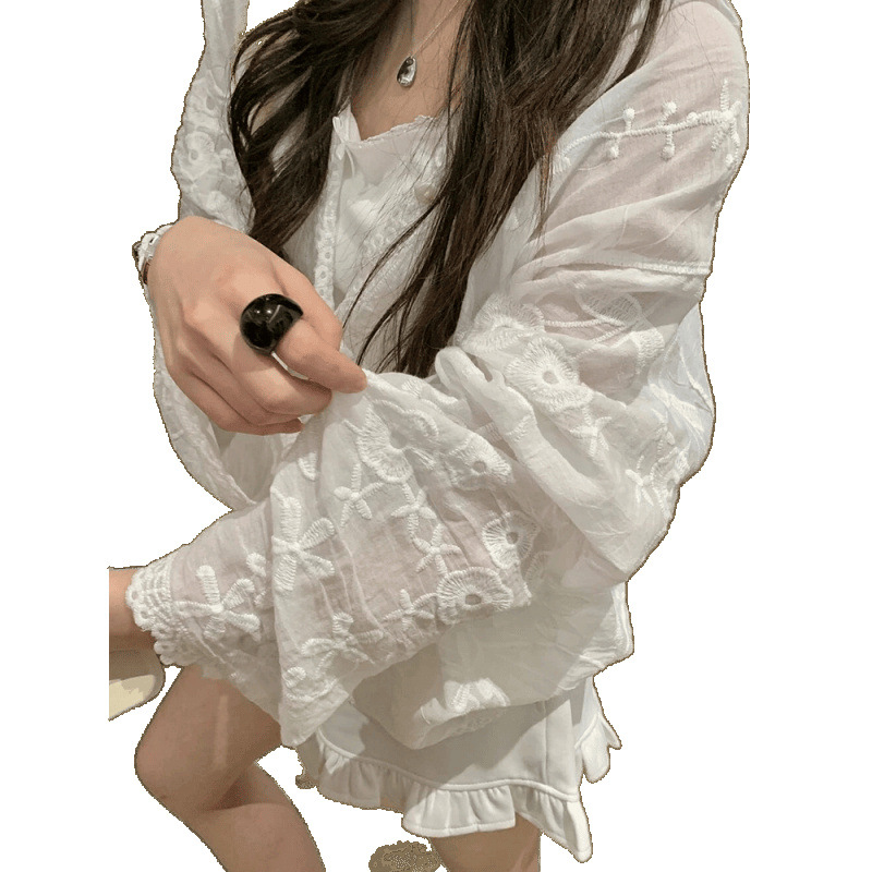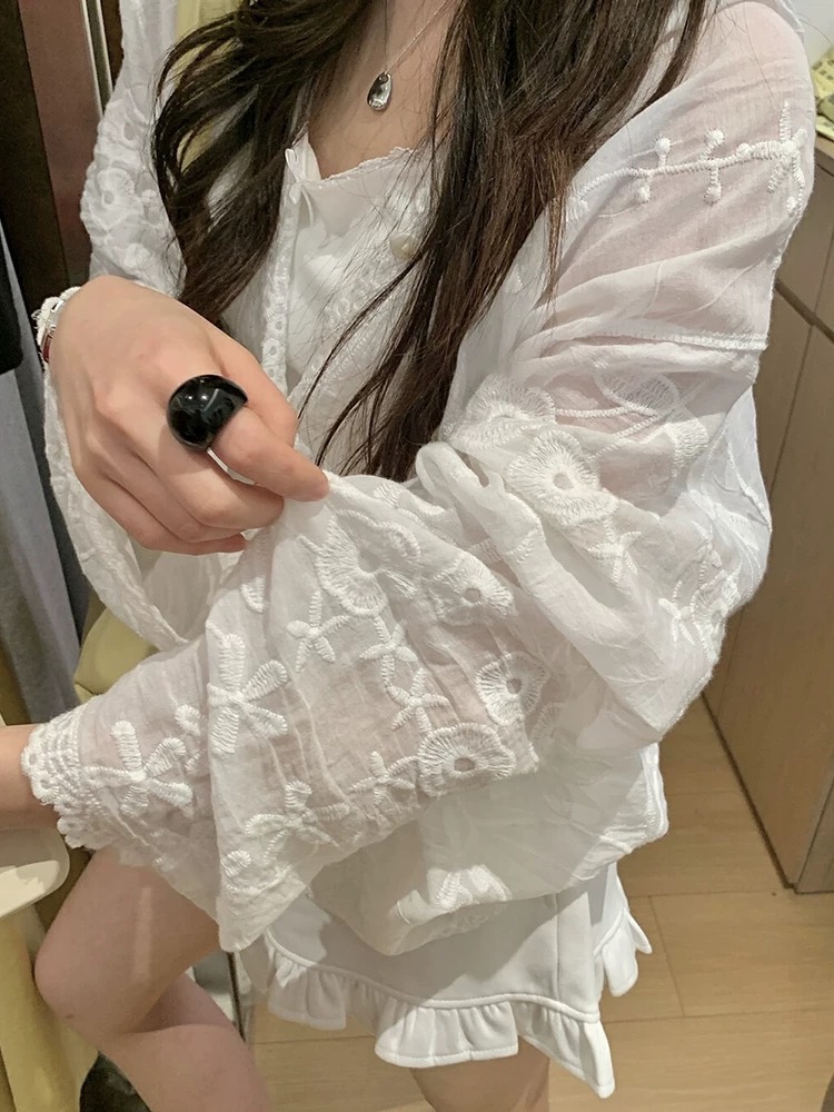 Корейский стиль, дизайн, вышитая кружевная солнцезащитная куртка с капюшоном, женская весенне-летняя свободная рубашка с длинными рукавами