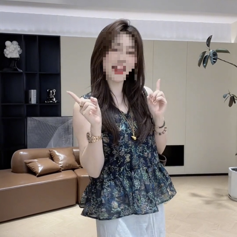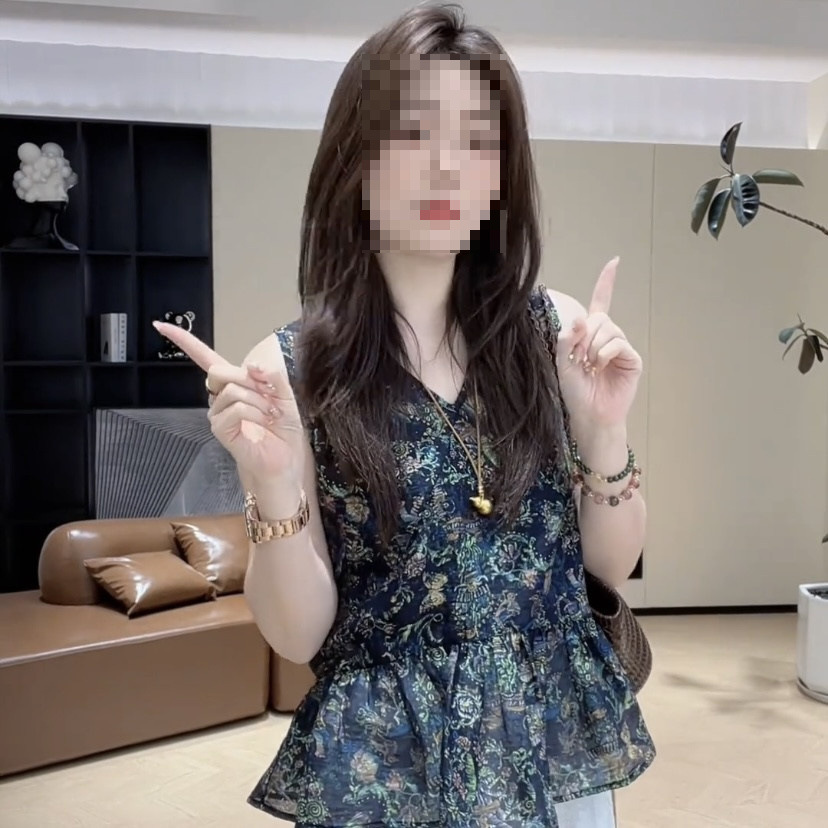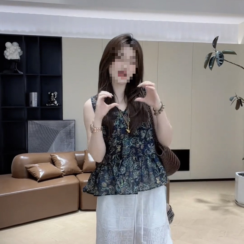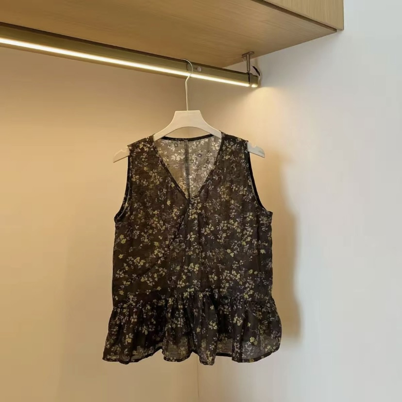 G6N2025 новый летний стиль простой французский топ с v-образным вырезом и цветочным принтом без рукавов для женщин