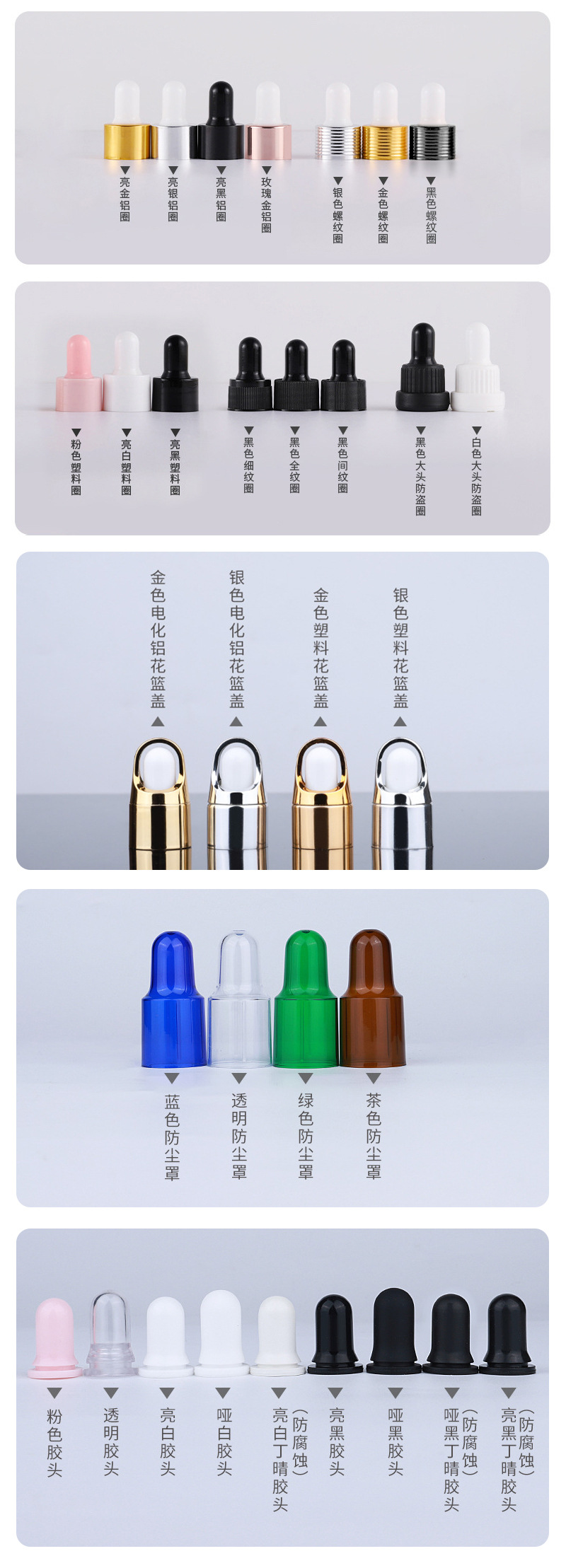 С золотым/серебряным/черным/розовым золотым алюминиевым кольцом + резиновым наконечником + капельницей; В комплект входит черно-белая большая крышка + капельная пробка.; С алюминиевой крышкой с золотой/серебряной/черной резьбой + утопленной заглушкой; Оснащен обычным черно-белым противоугонным чехлом + капельной пробкой.; В комплект входит черно-белое большое кольцо на голову + клеевая головка + капельница.; С золотой/серебряной/черной алюминиевой крышкой + вогнутой заглушкой