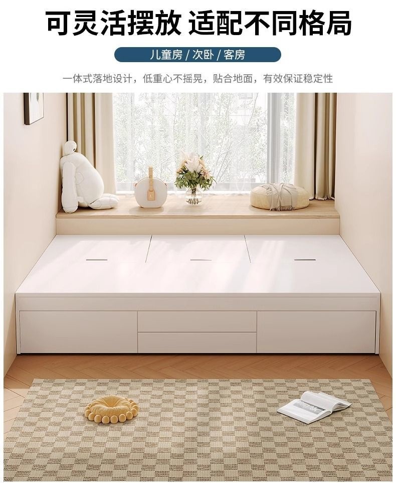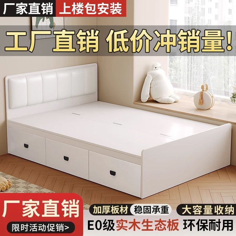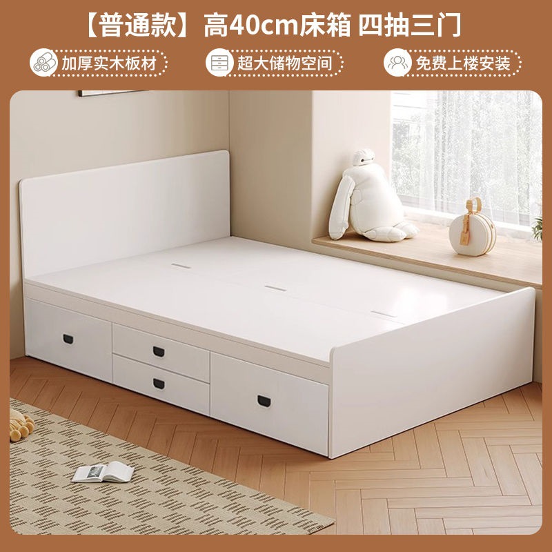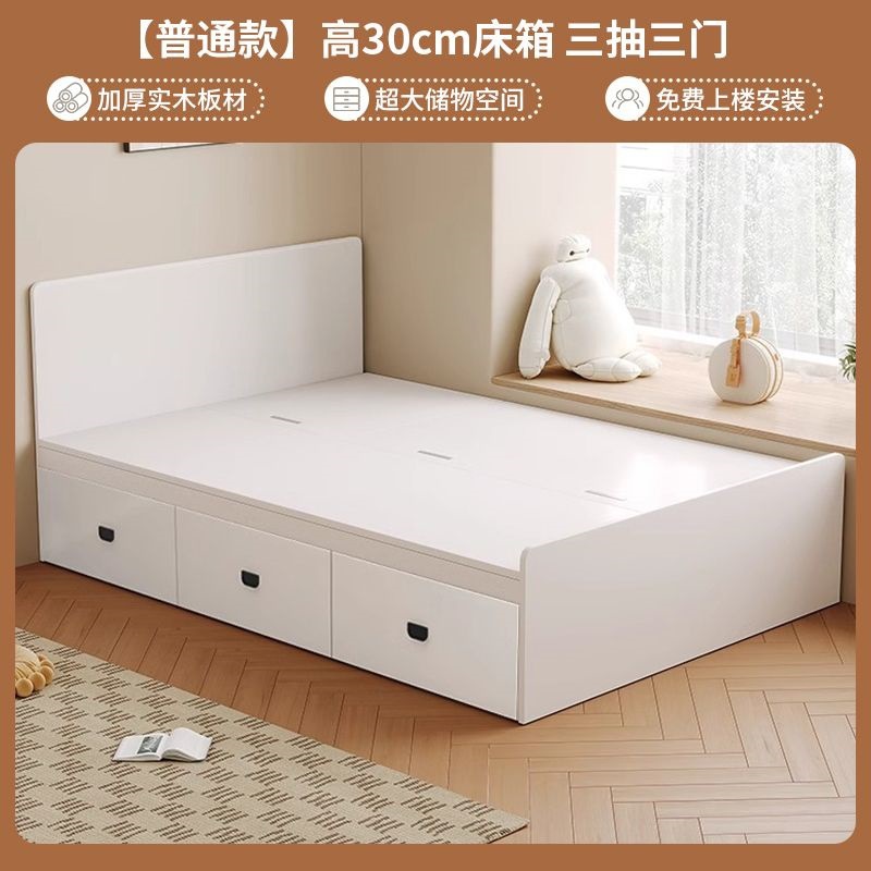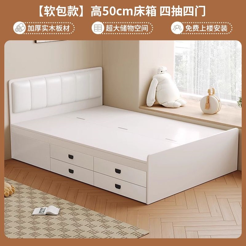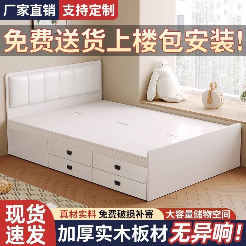Двуспальная кровать-татами из массива дерева, современная, простая, с высоким ящиком для хранения, односпальная кровать для маленькой квартиры, кровать-гардероб