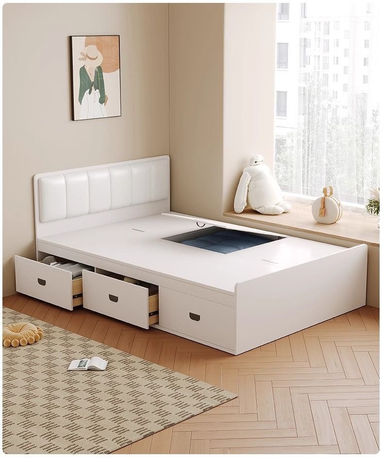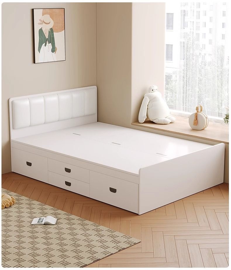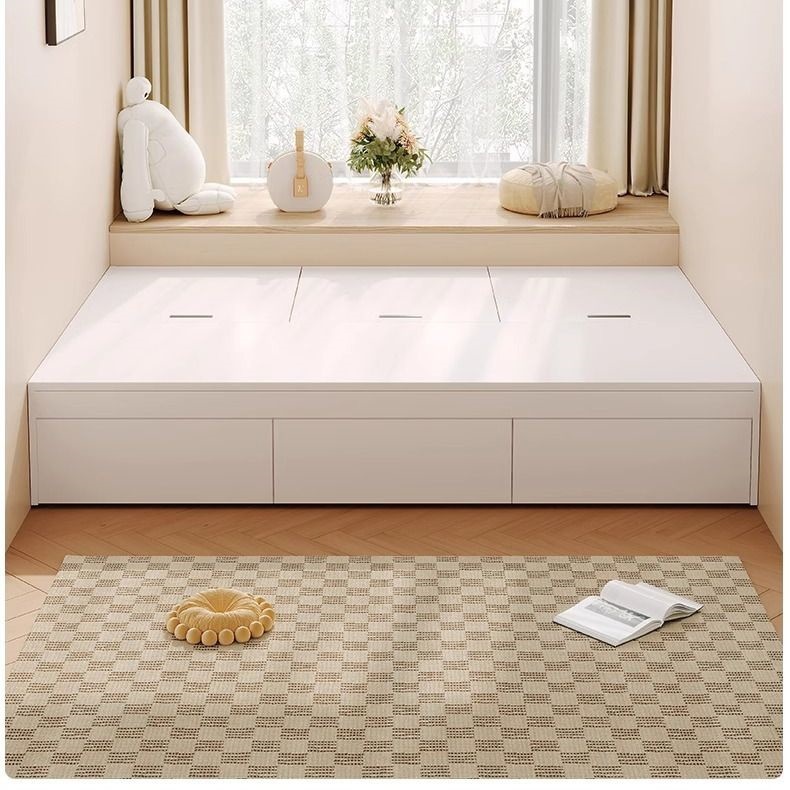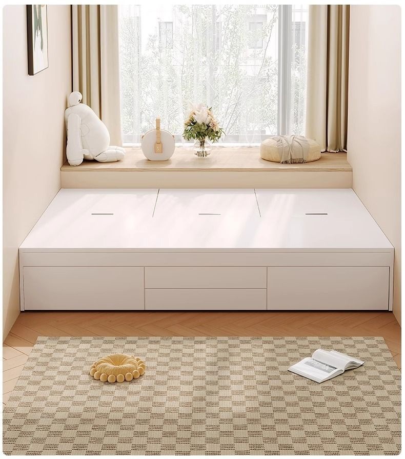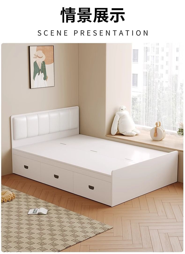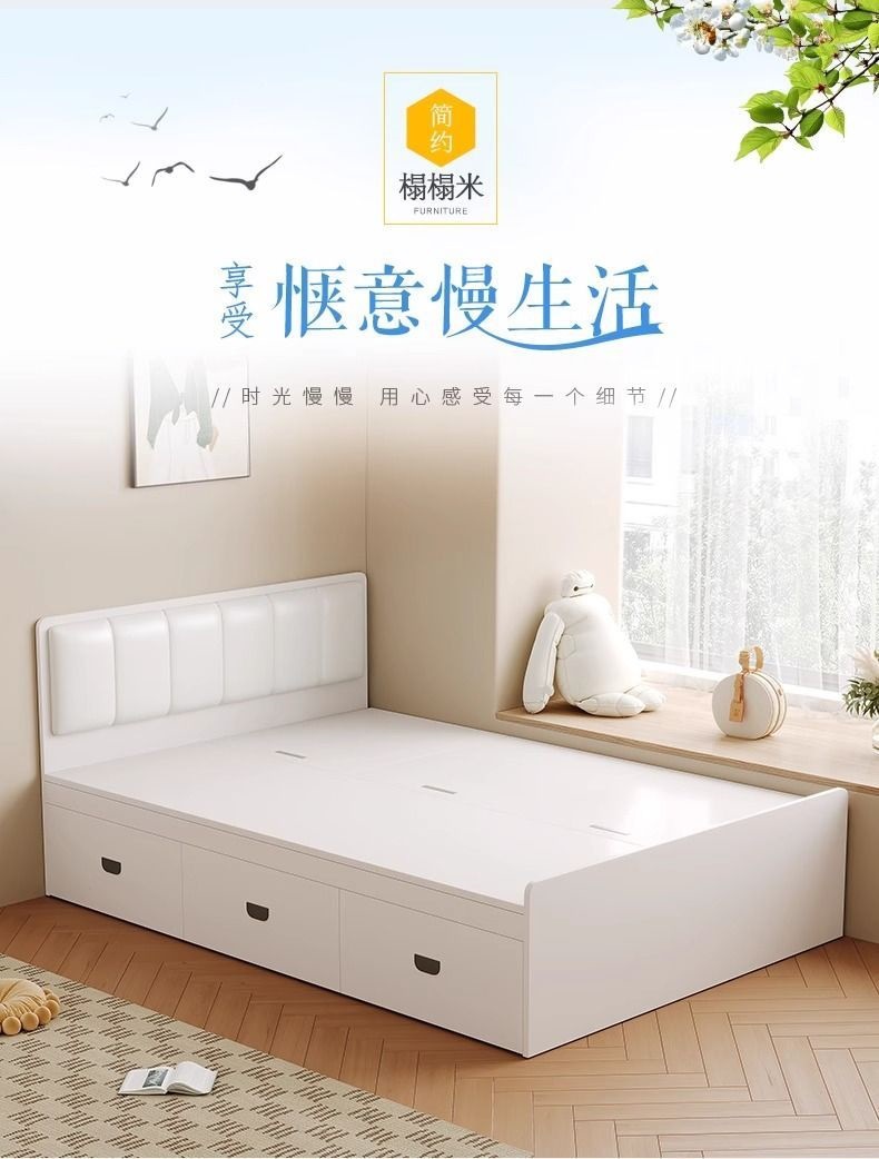 Двуспальная кровать-татами из массива дерева, современная, простая, с высоким ящиком для хранения, односпальная кровать для маленькой квартиры, кровать-гардероб