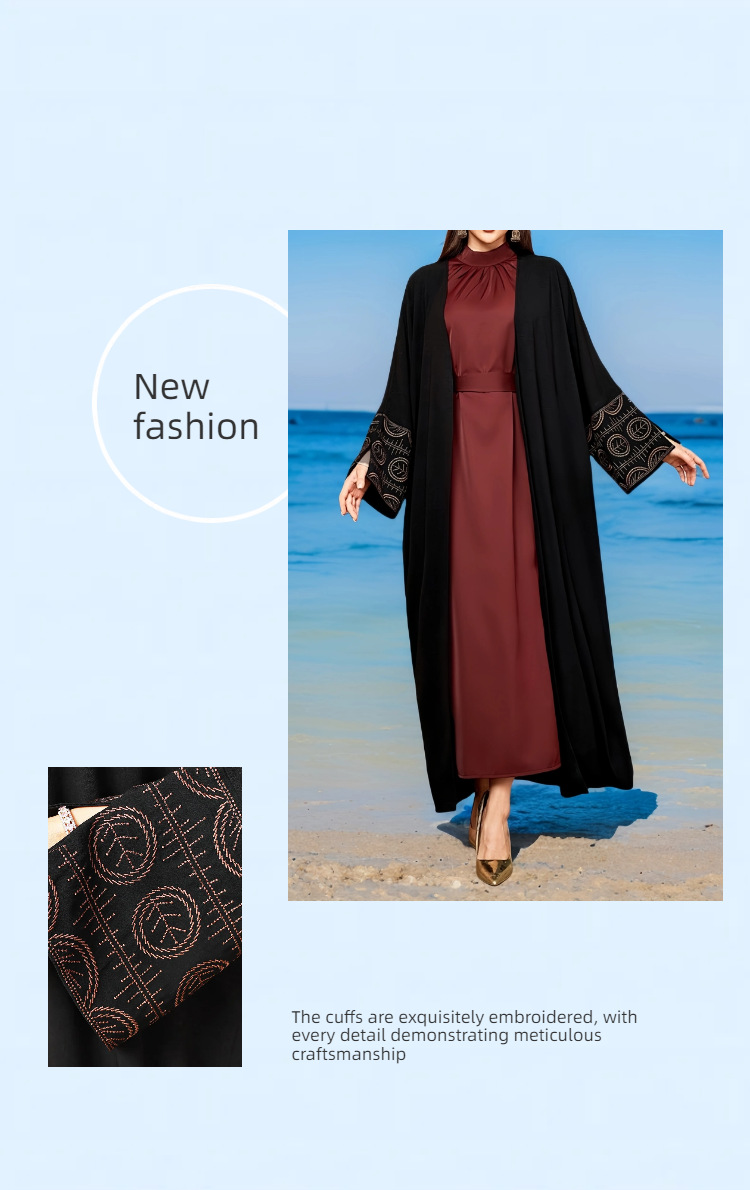 Новое абайя для женщин, дубайский вышитый кардиган, мусульманское платье в восточном стиле, элегантное платье для трансграничной торговли