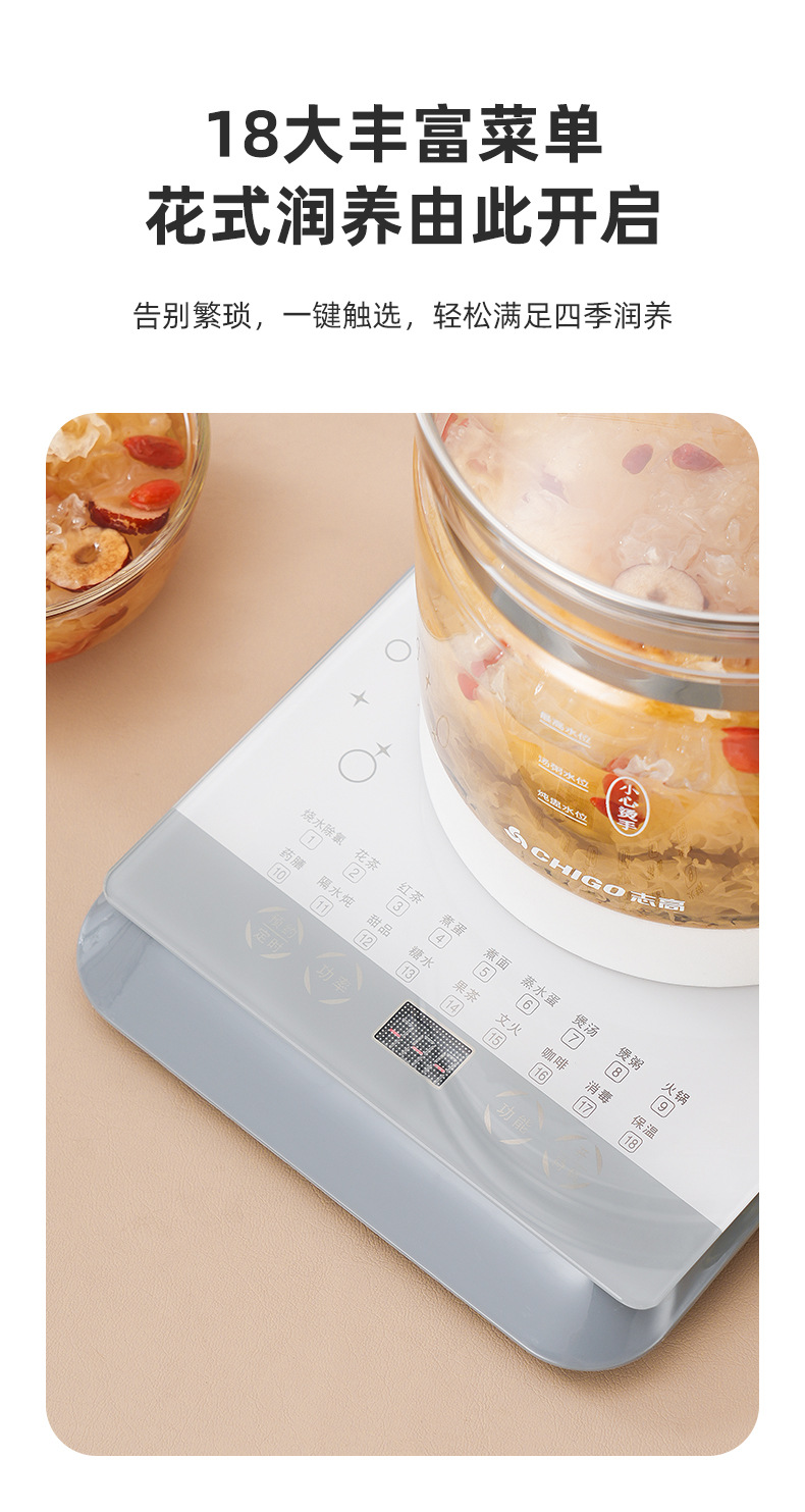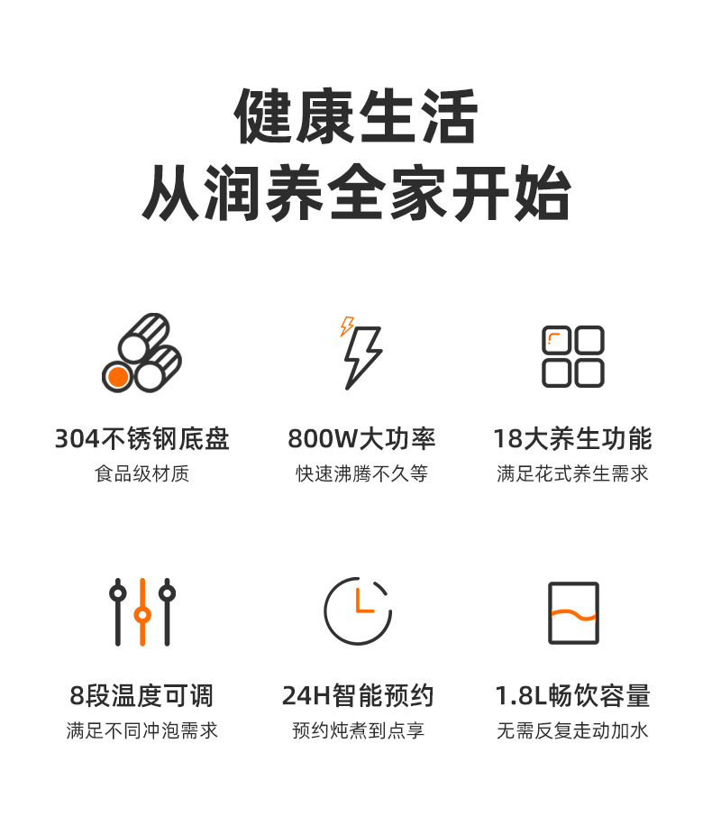 养生壶,除了一般的煮水、煮花茶,还可以煮蛋、煲汤、煮面、养生药膳、五谷粥、火锅、酸奶、煮酒、热奶、凉茶、消毒、保温、蒸水蛋、煮咖啡、婴儿用水、奶粉用水。