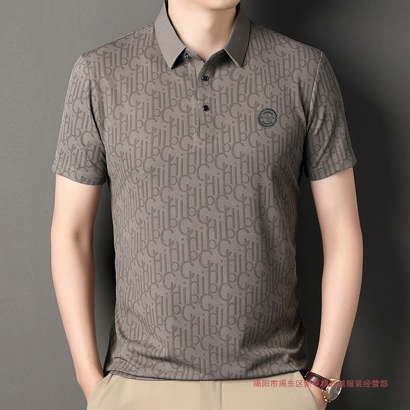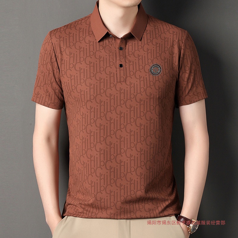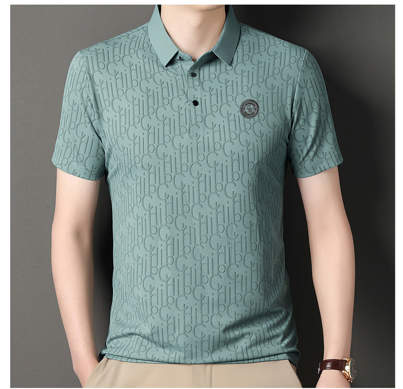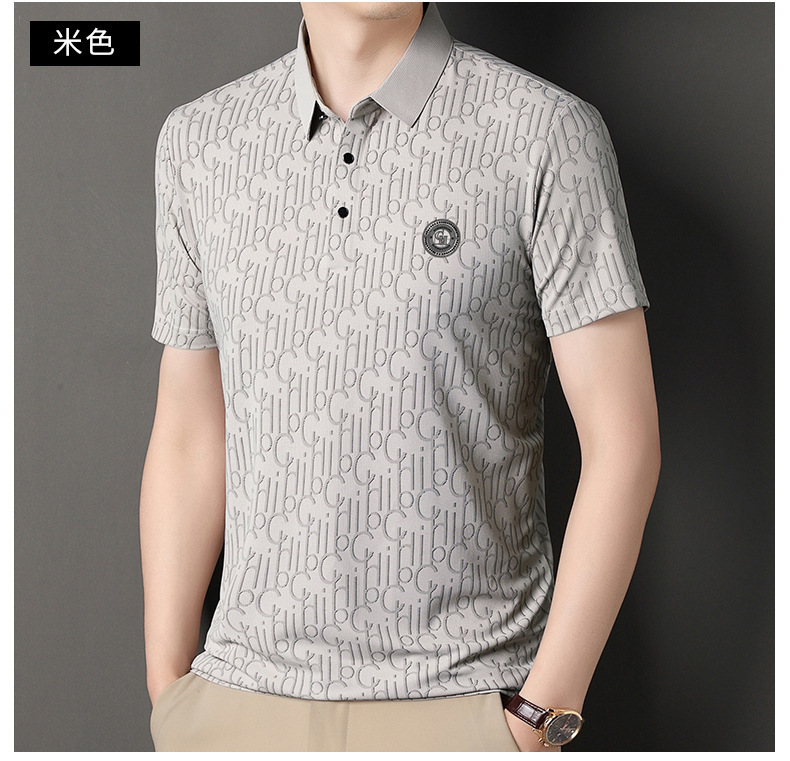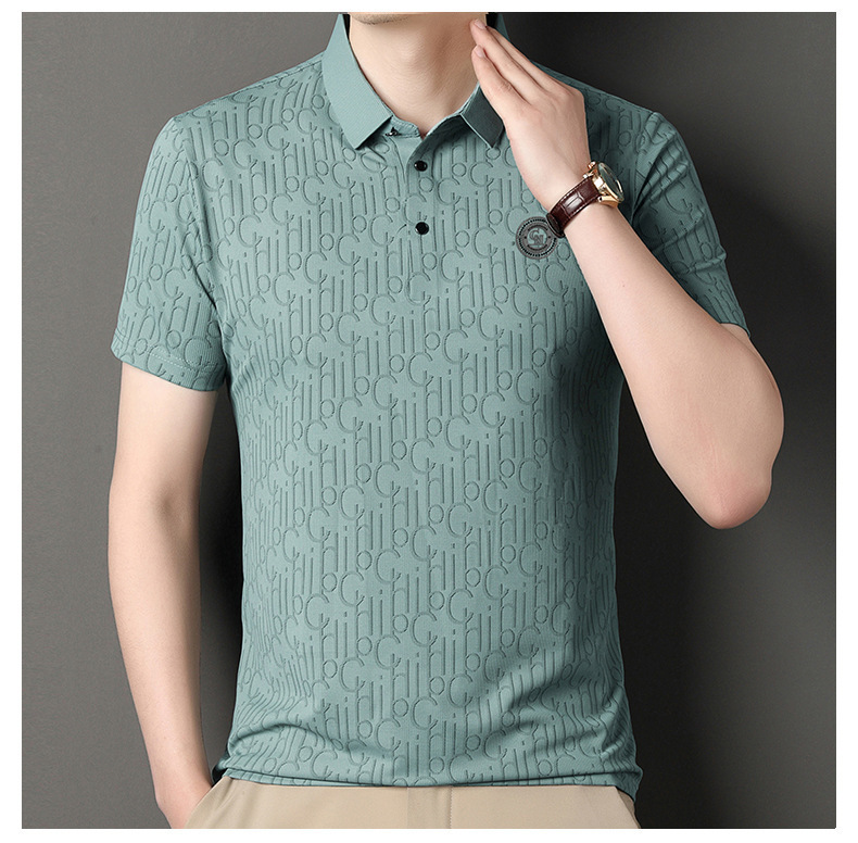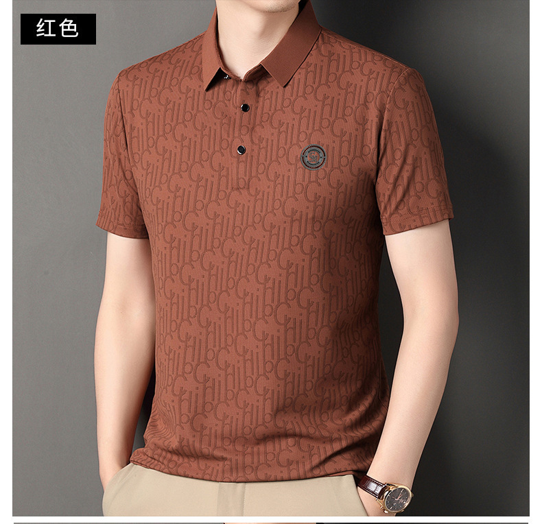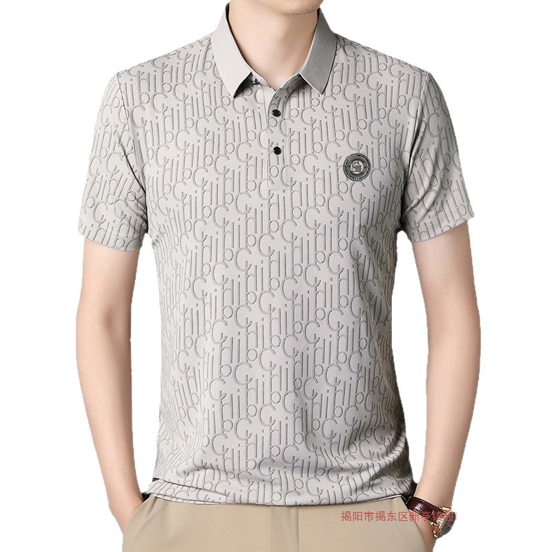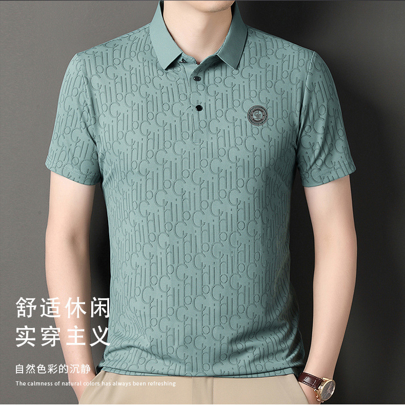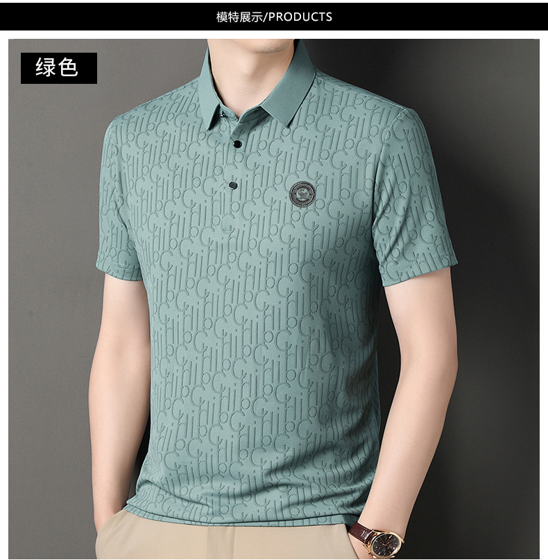 Рубашка ПОЛО с короткими рукавами, мужская летняя новая футболка с лацканами и половиной рукавов, модные брендовые мужские экспортные тонкие топы из ледяного шелка