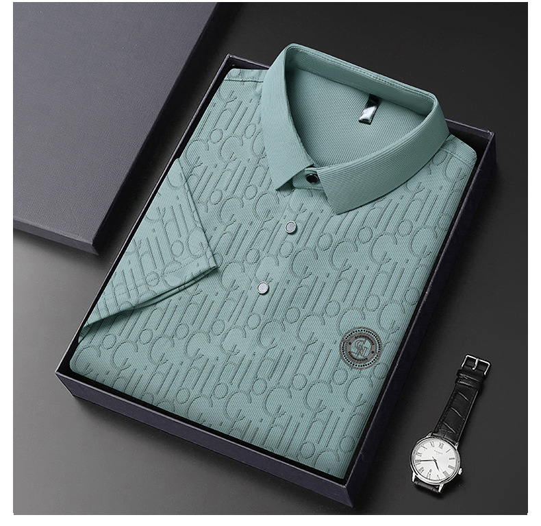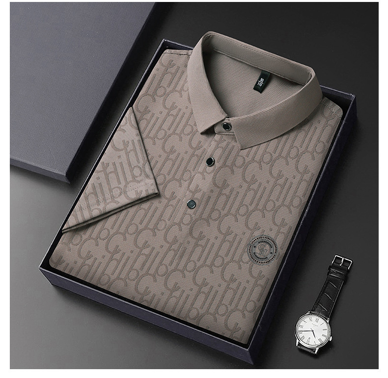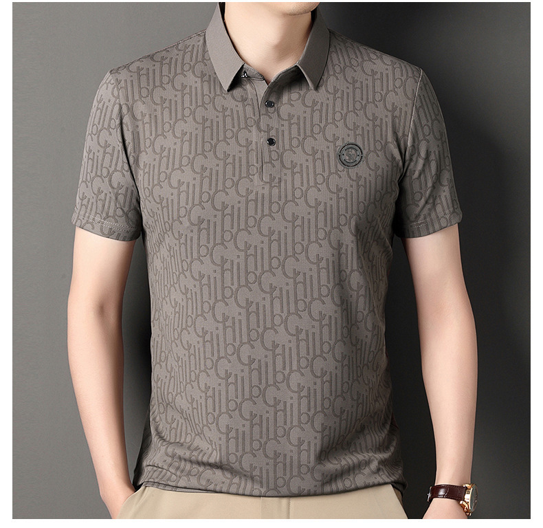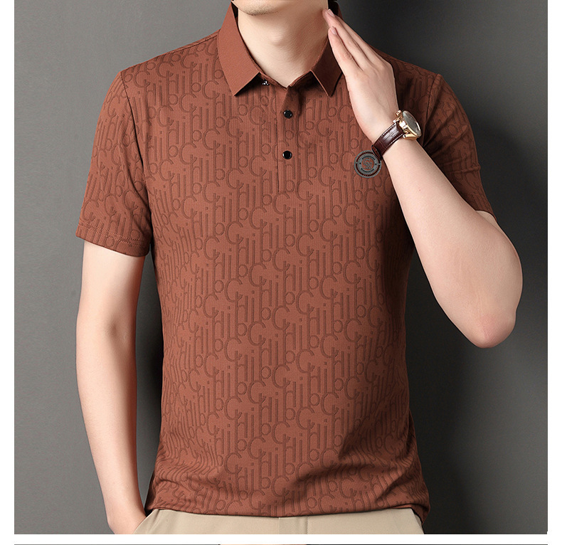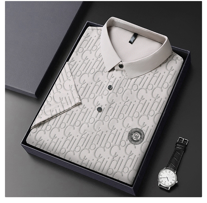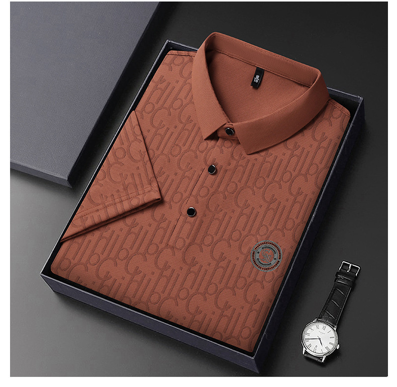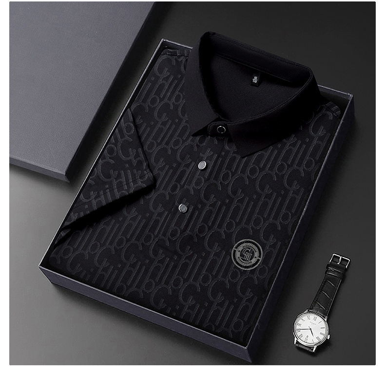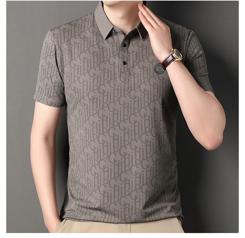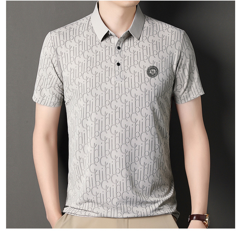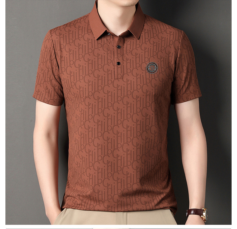 Рубашка ПОЛО с короткими рукавами, мужская летняя новая футболка с лацканами и половиной рукавов, модные брендовые мужские экспортные тонкие топы из ледяного шелка