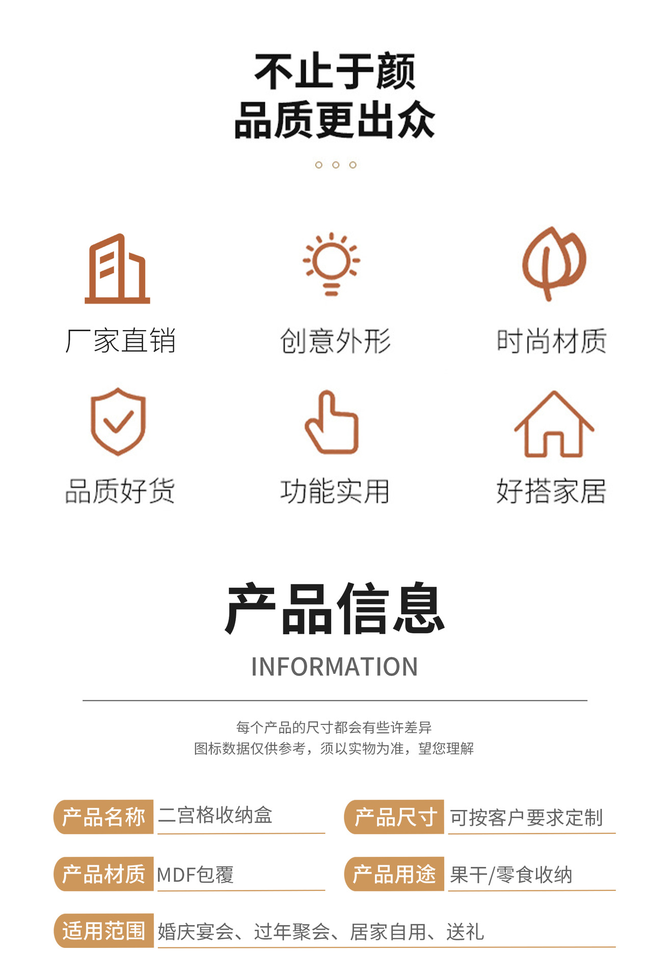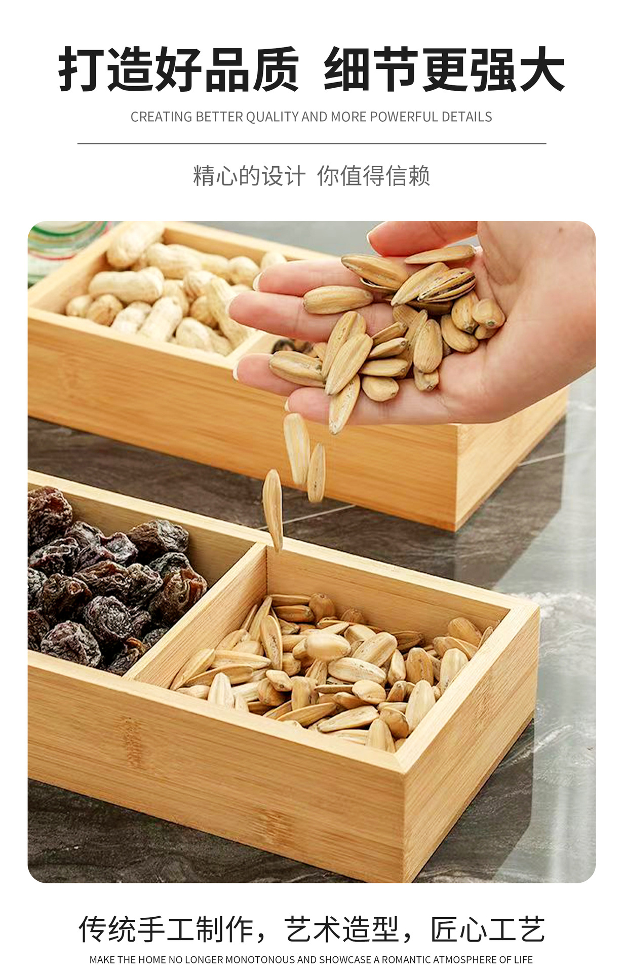 Деревянная коробка для сухофруктов из МДФ с двумя отделениями, коробка для хранения чая, поднос для закусок, орехов, украшение, коробка для конфет для раннего процветания.