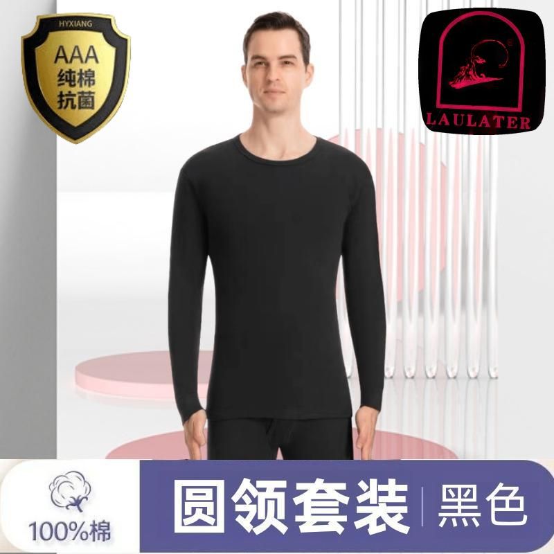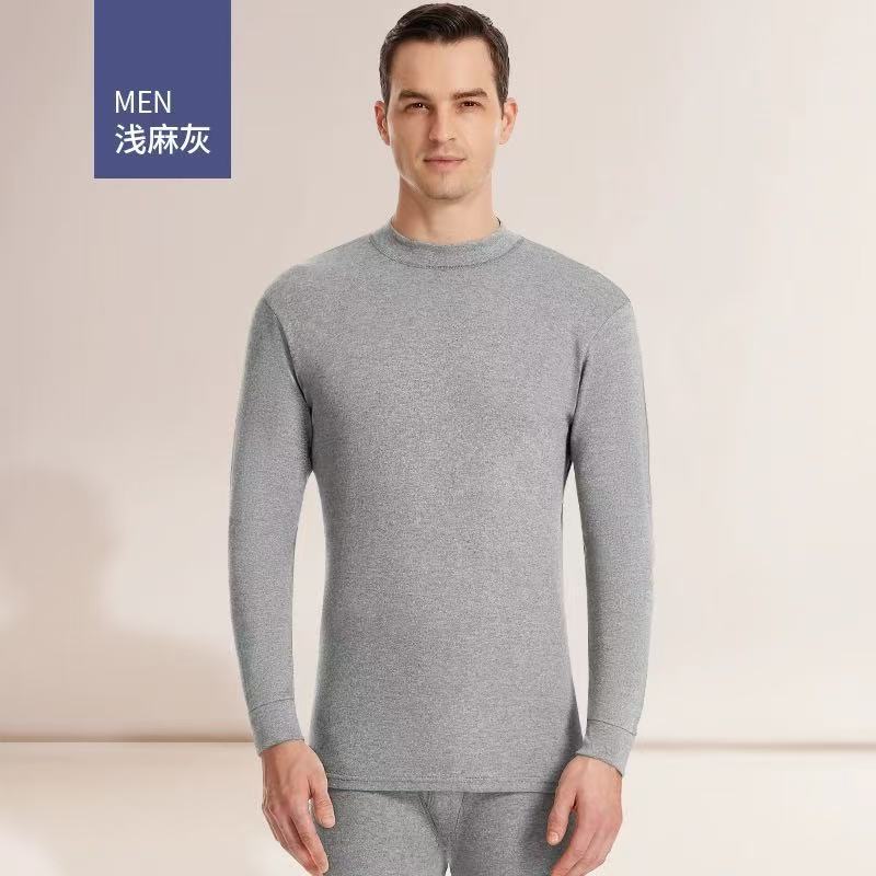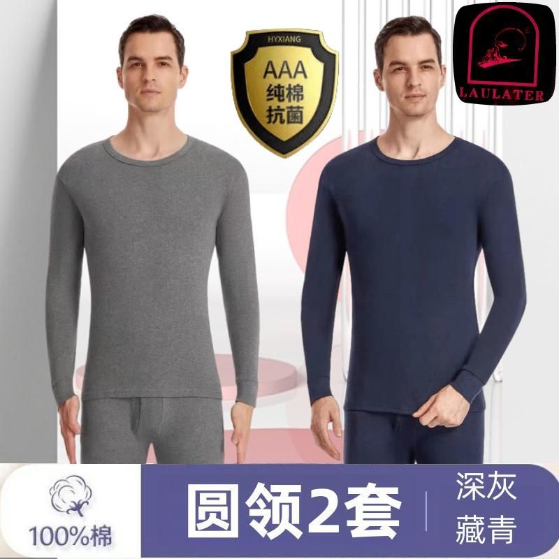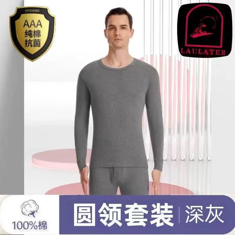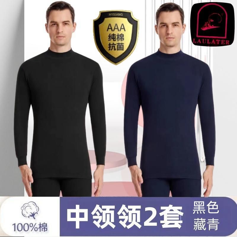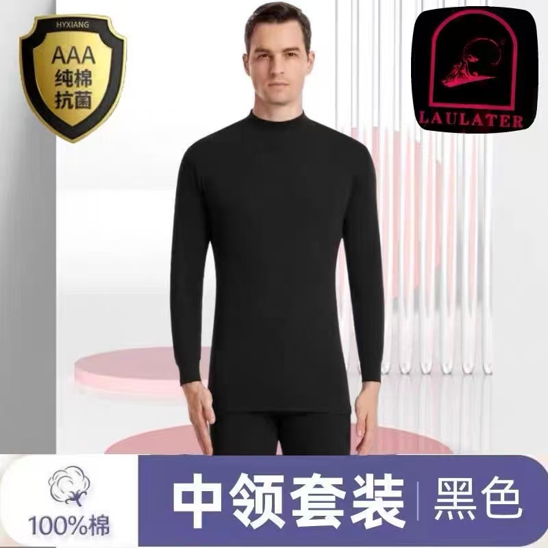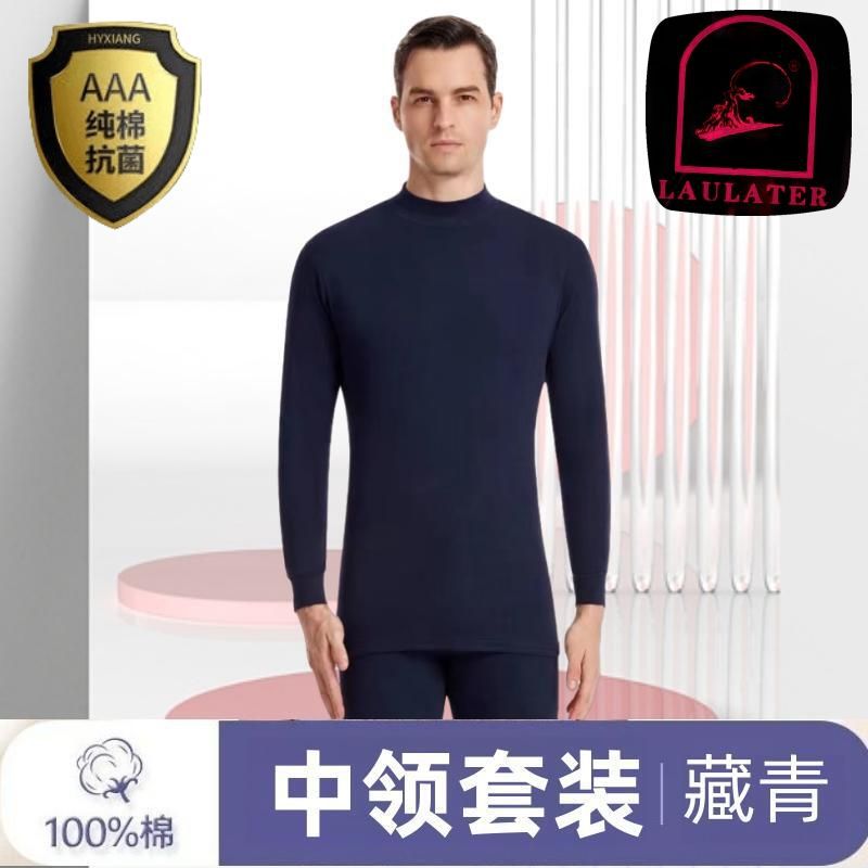 [Костюм из 100% хлопка] Мужская осенняя одежда и длинные брюки, тонкое термобелье из хлопка со средним воротником для людей среднего и пожилого возраста.