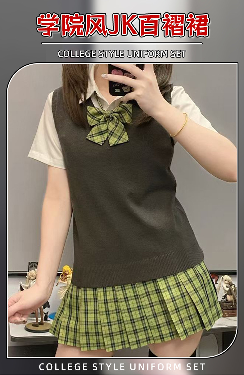 Xiaoqingmei JK униформа клетчатая юбка женский костюм с короткими рукавами плиссированная юбка студенческая школьная форма jk оптовая продажа плиссированная юбка колледж короткая