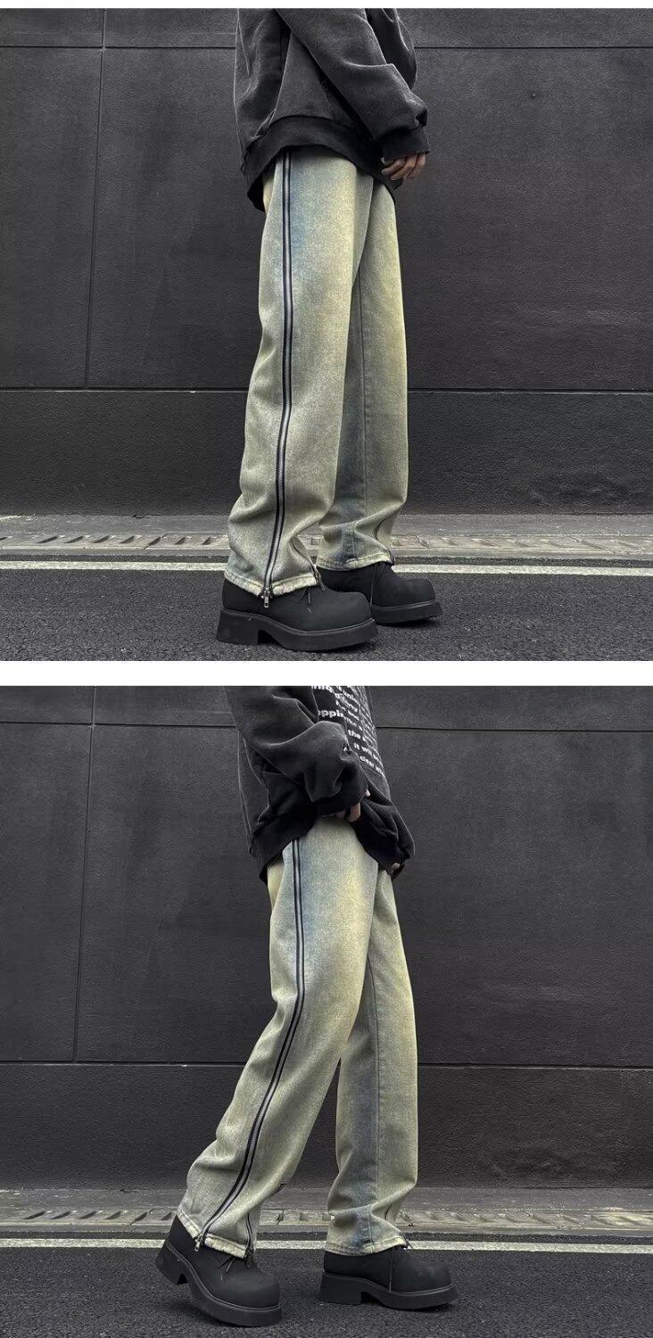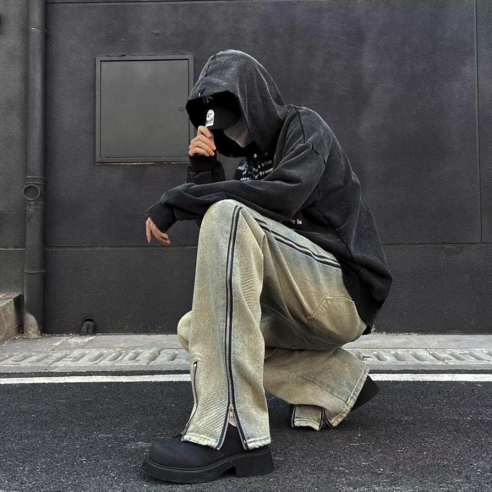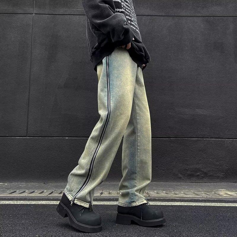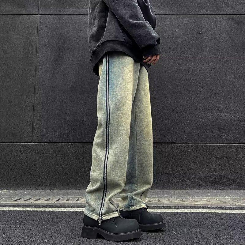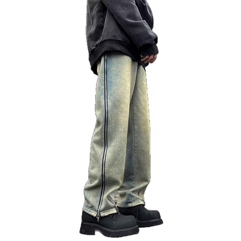 25 осенне-зимних брюк в американском стиле ретро с карманами и клапанами, джинсы, мужские уличные модные брендовые модные свободные прямые брюки с разрезом, хлопок