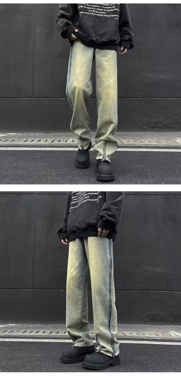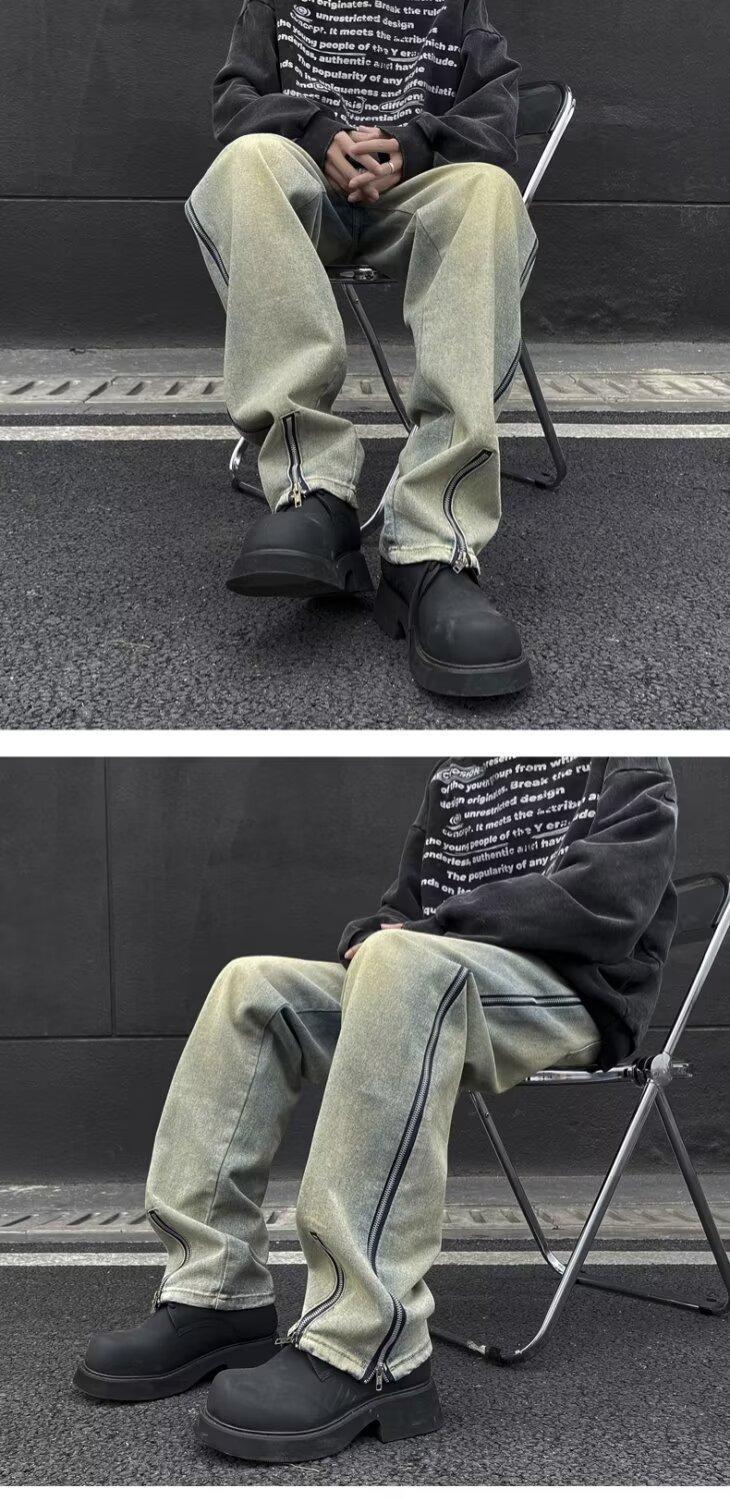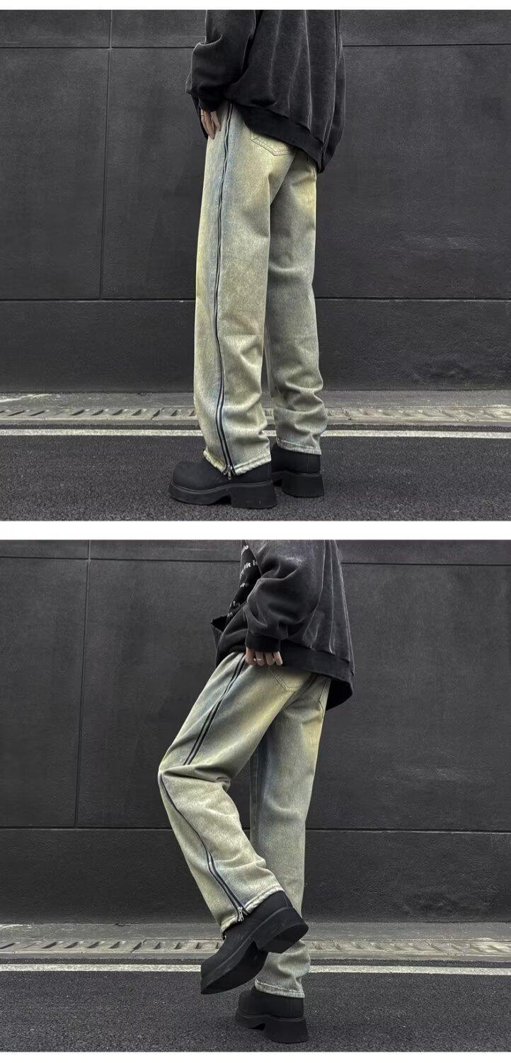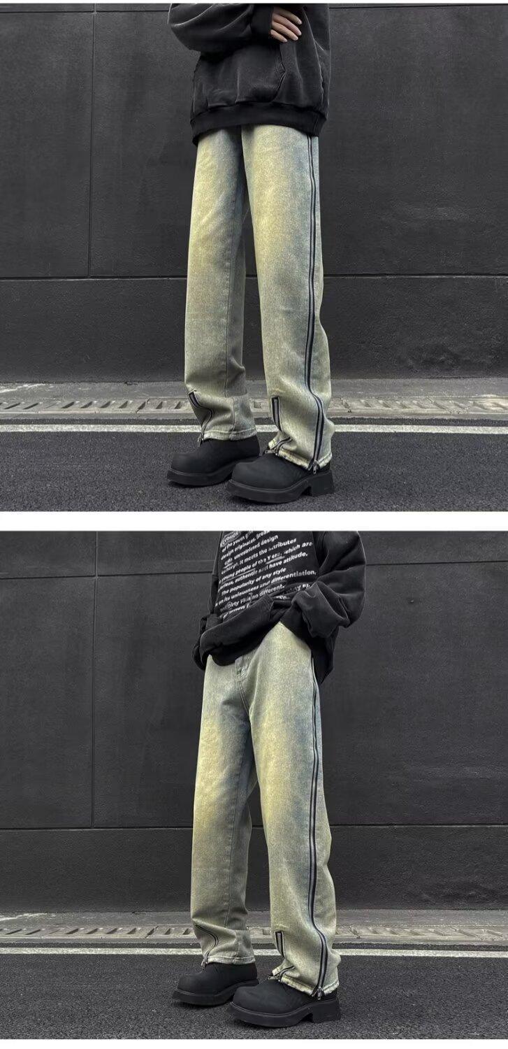 25 осенне-зимних брюк в американском стиле ретро с карманами и клапанами, джинсы, мужские уличные модные брендовые модные свободные прямые брюки с разрезом, хлопок