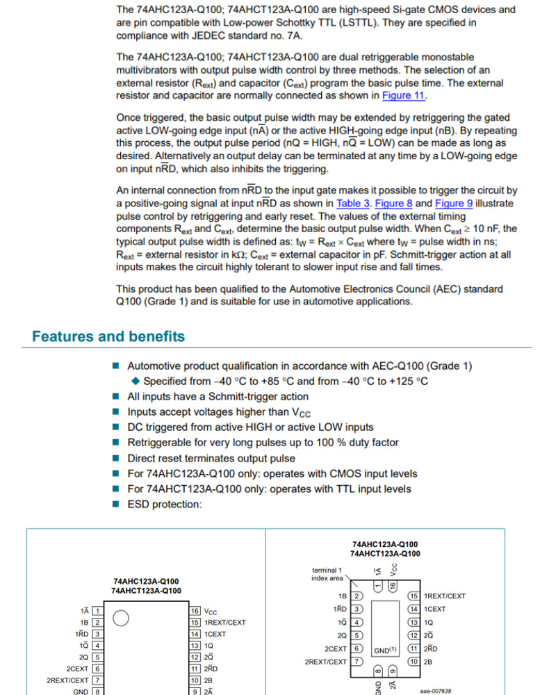 Оригинальный 74AHC123APW-Q100J TSSOP-16 с моностабильным мультивибратором сброса и триггера