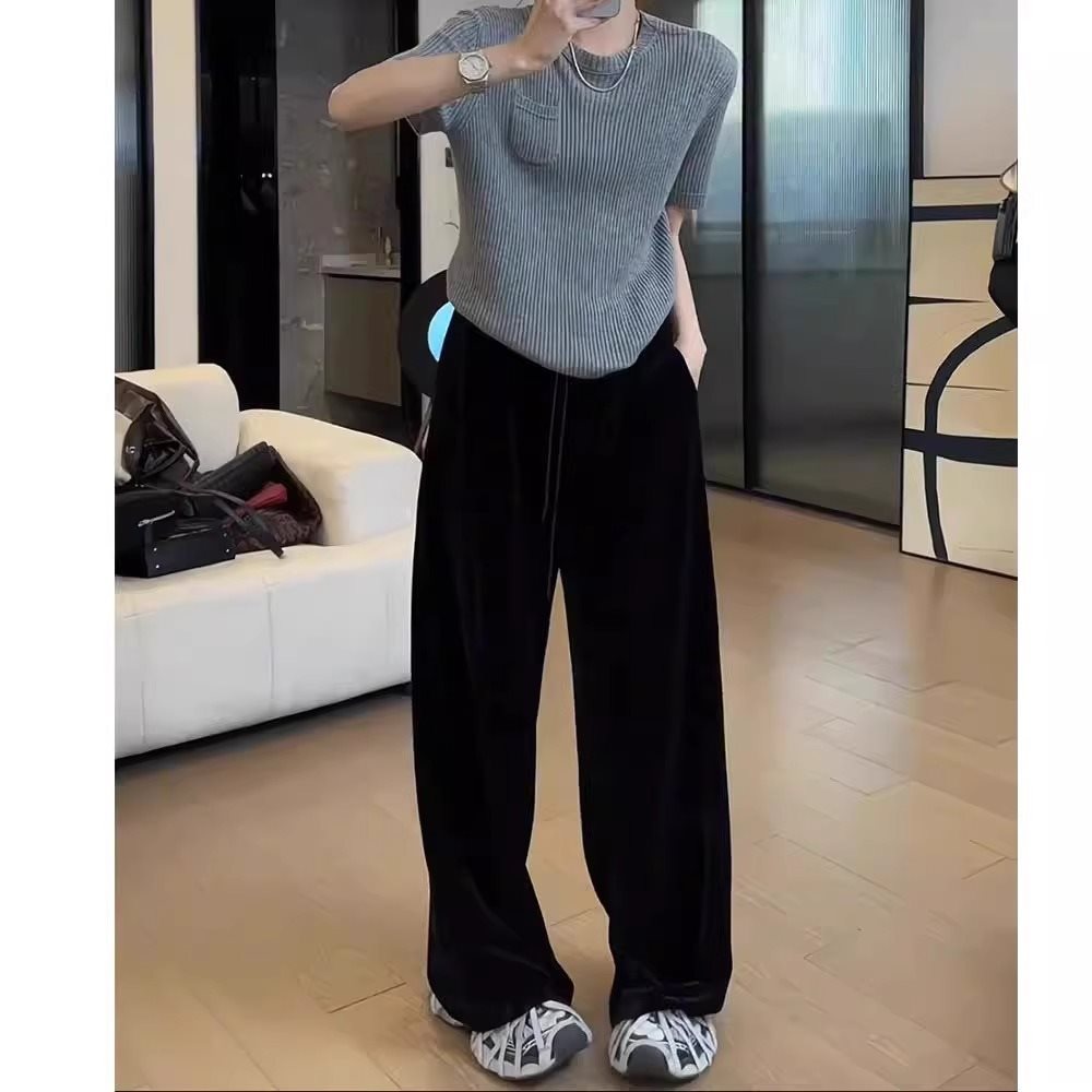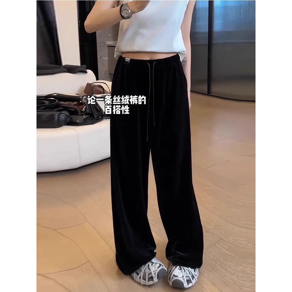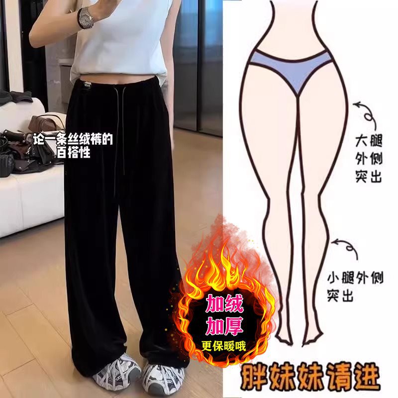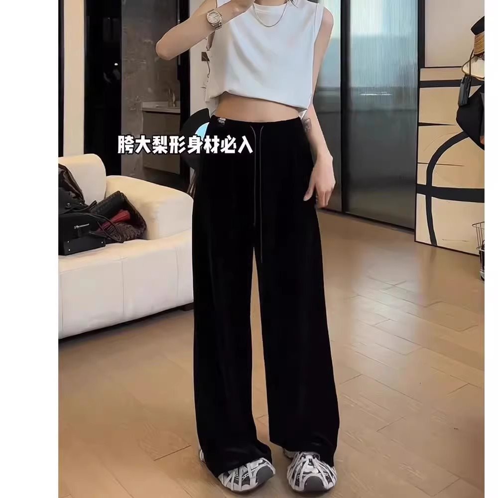 Черные бархатные брюки для женщин, весенние новые большие размеры, с высокой талией, утягивающие, прямые, повседневные широкие брюки.