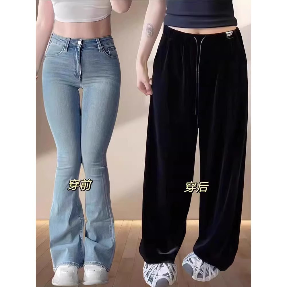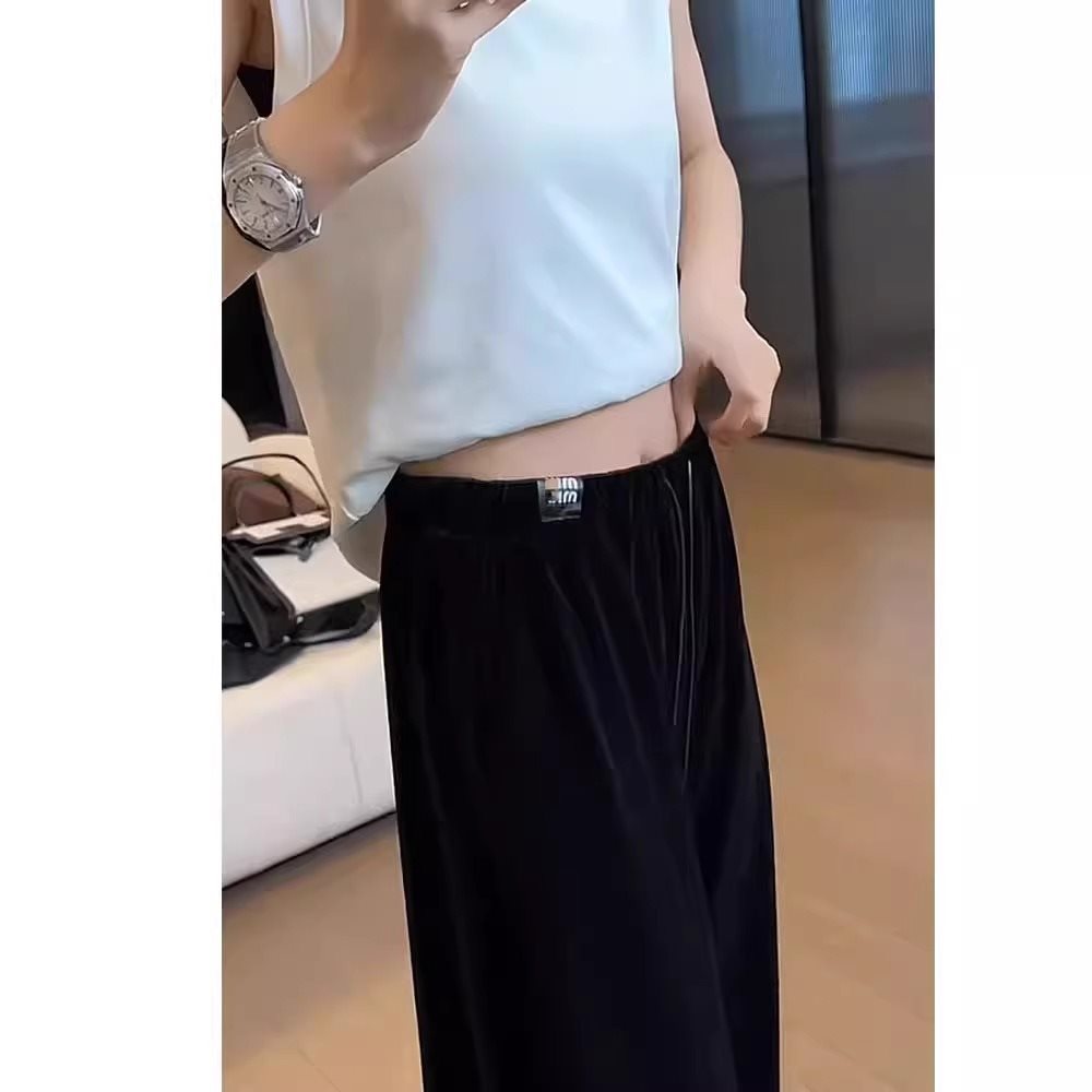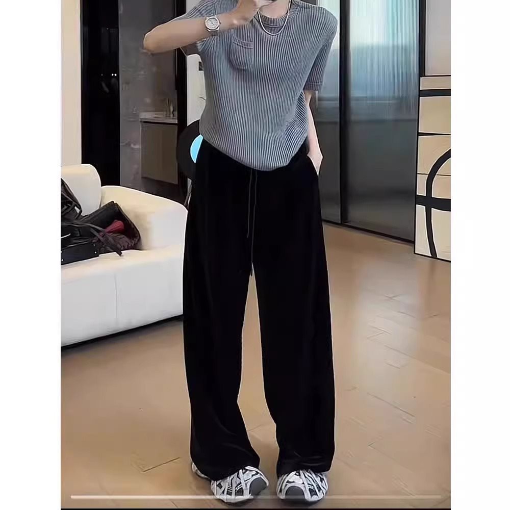 Черные бархатные брюки для женщин, весенние новые большие размеры, с высокой талией, утягивающие, прямые, повседневные широкие брюки.