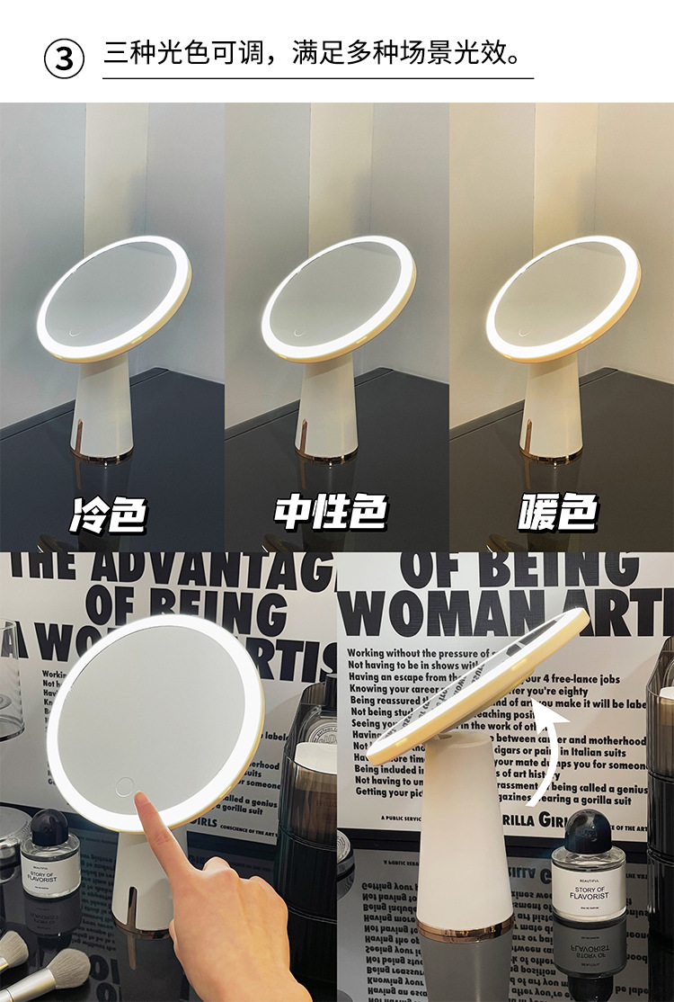 Косметическое зеркало с подсветкой, настольное зеркало для девочек, настольное зеркало с подсветкой, маленькое зеркало для спальни, комод, светодиодное настольное косметическое зеркало