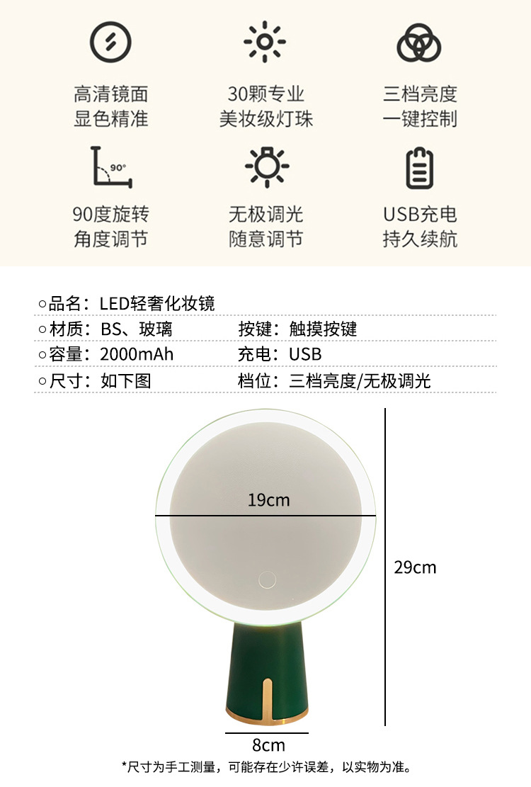 жемчужно-белый; ретро зеленый; Пакет «Жемчужно-белый + ящик для хранения»; Ретро-зеленый + коробка для хранения; Жемчужно-белый + ретро-зеленый; Новое зеркало для макияжа-розовое [маленький размер]; Новое косметическое зеркало белого цвета [маленький размер]; Новое косметическое зеркало-розовое [большой размер]; Новое зеркало для макияжа-белое [большой размер]