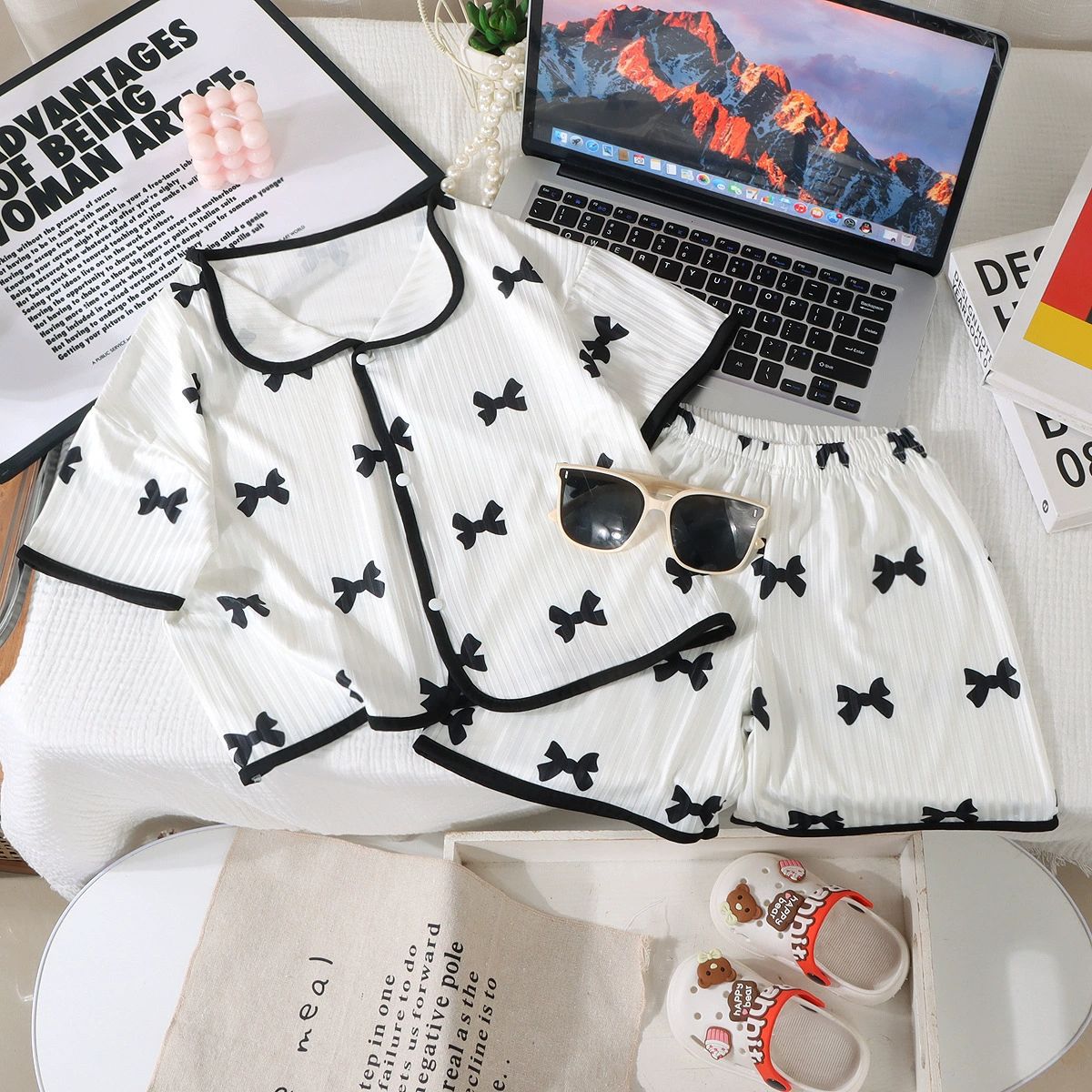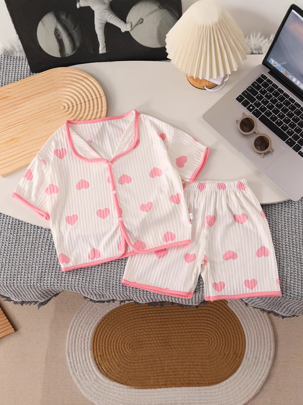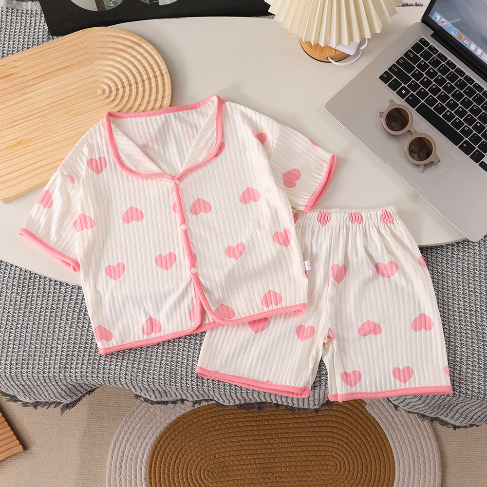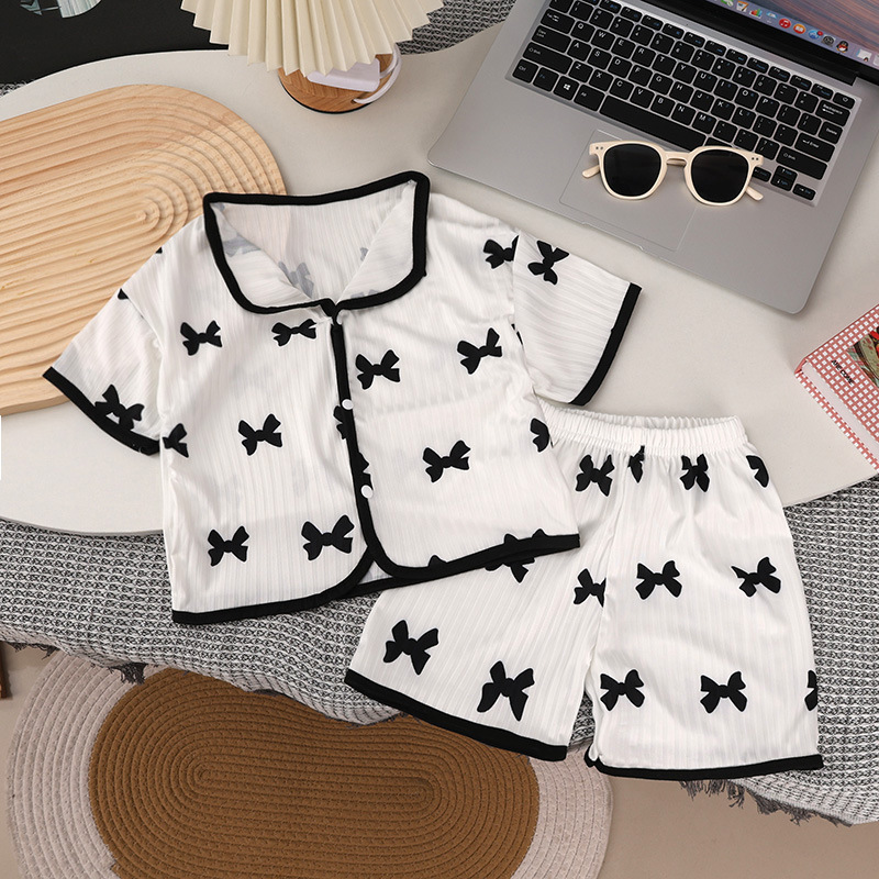 Детский летний костюм из льняной ткани для девочек 2025 года, пижама с лацканами, средний и большой размер, короткий рукав