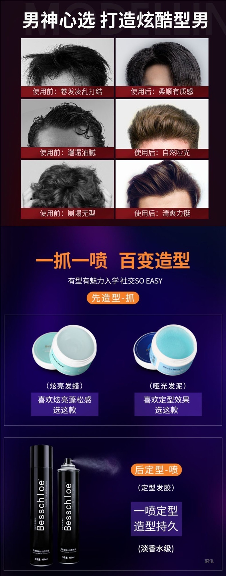Мужской спрей для укладки, освежающий спрей для быстрой укладки, быстросохнущий лак для волос, гель с ароматом грязи, сухой гель, естественно пушистый