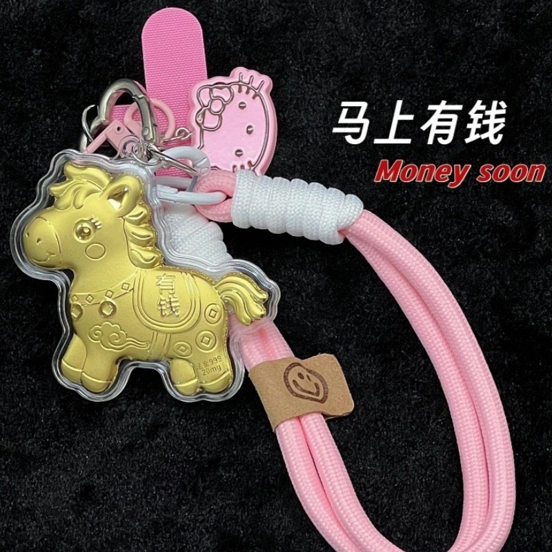 Чистое золото 999, чтобы сразу стать богатым, брелок-подвеска, подвеска-цепочка для мобильного телефона с милым мультяшным пони, подарок