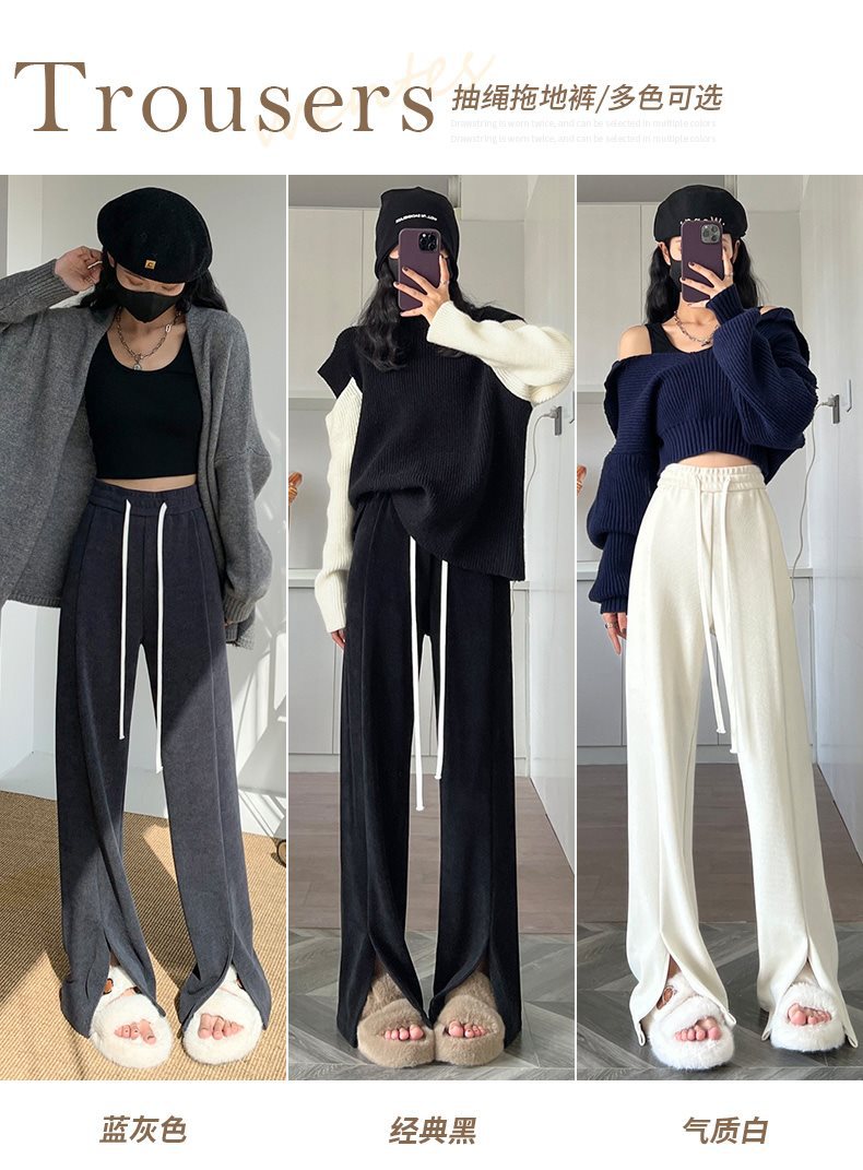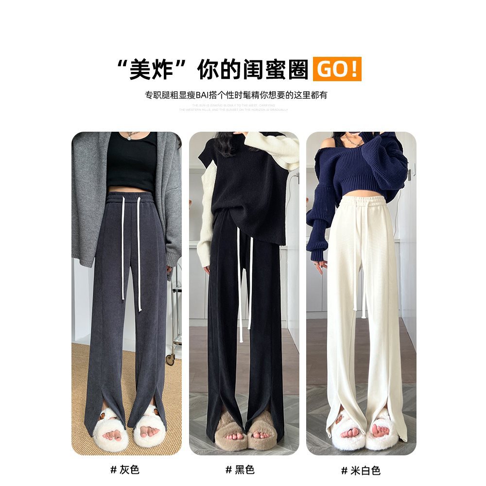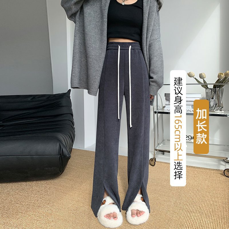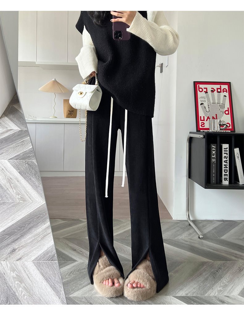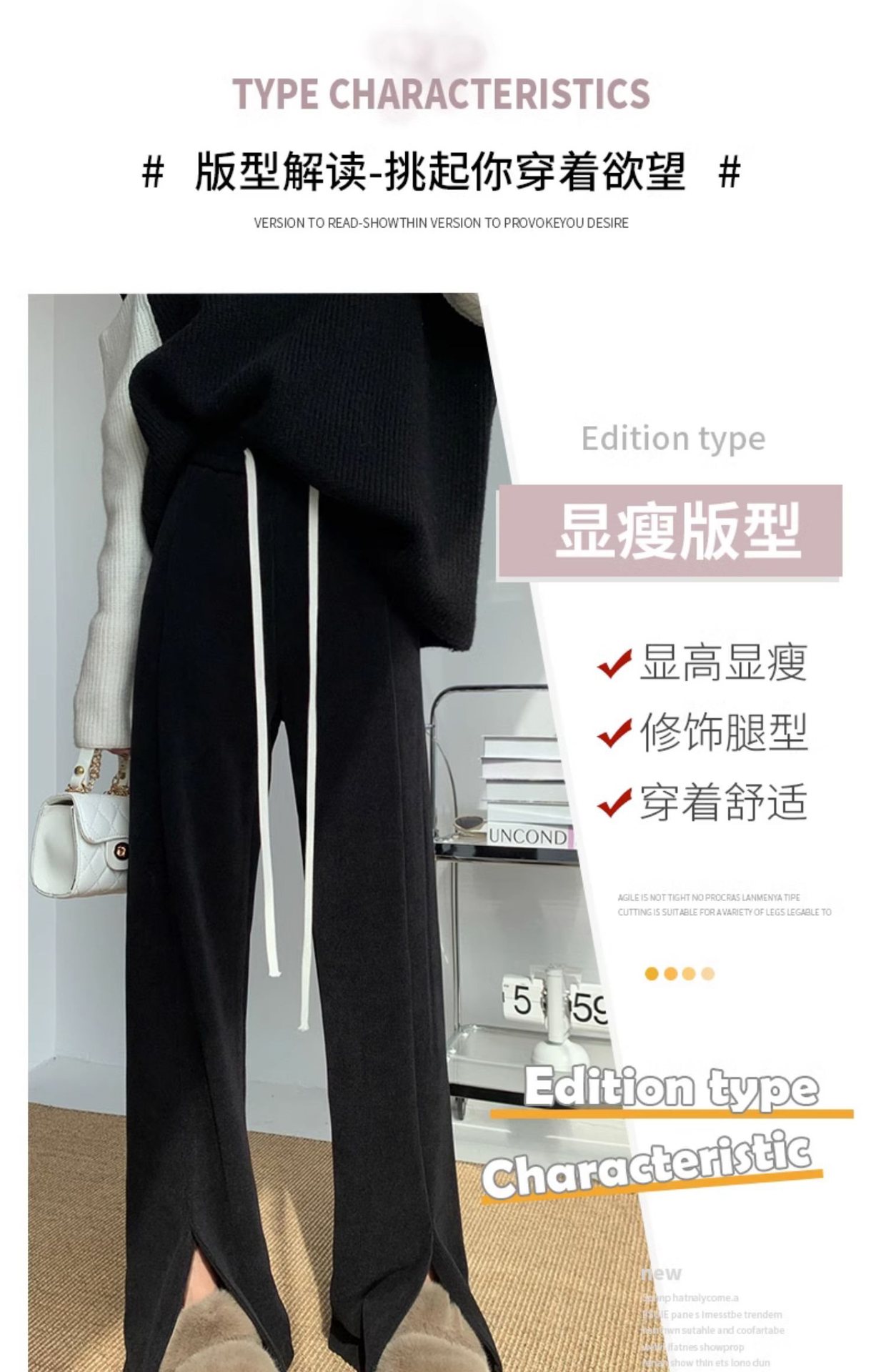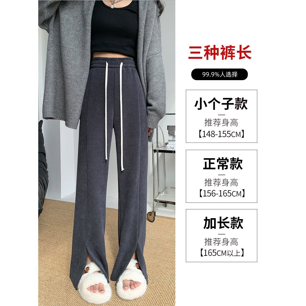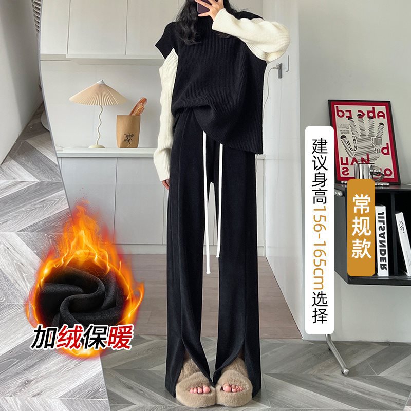Узкие широкие брюки для женщин, весенние, осенние и зимние, с высокой талией, узкие, прямые брюки в пол, драпированные брюки с разрезом на флисовой подкладке из синели.