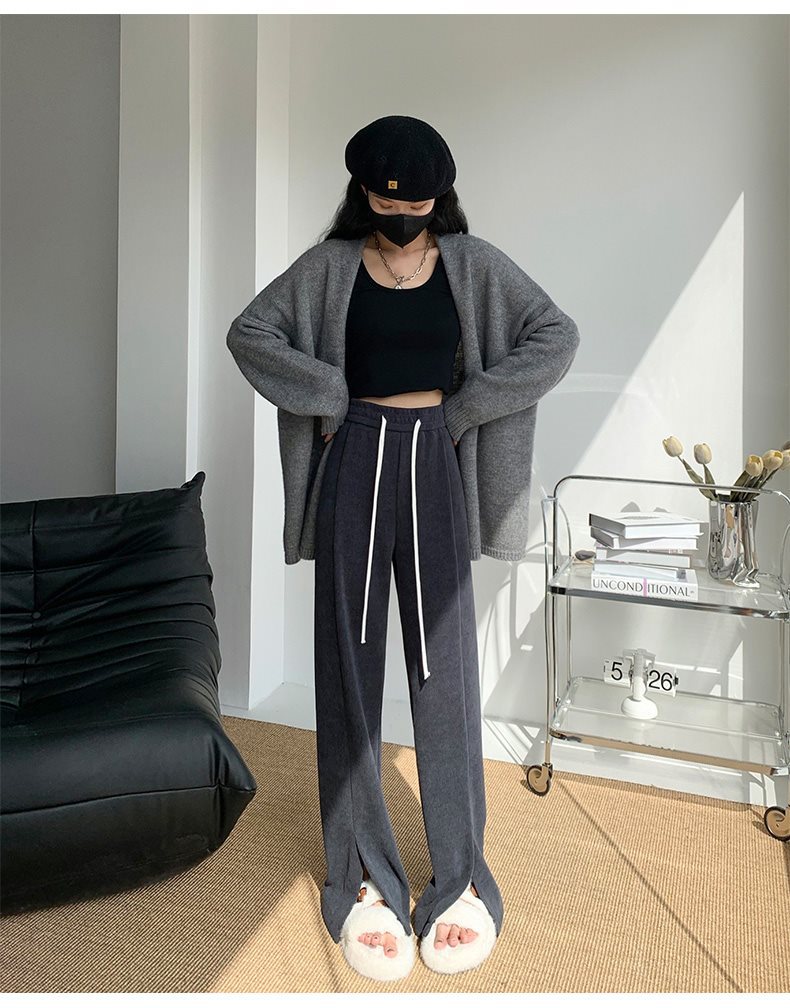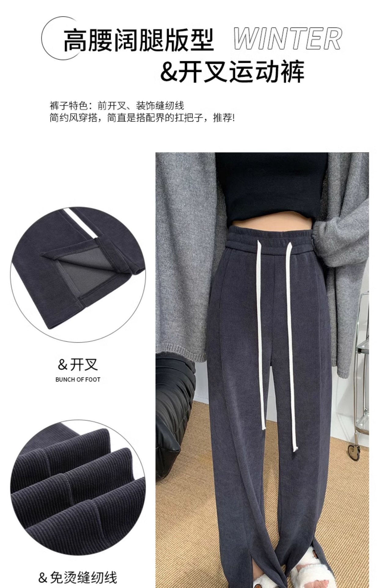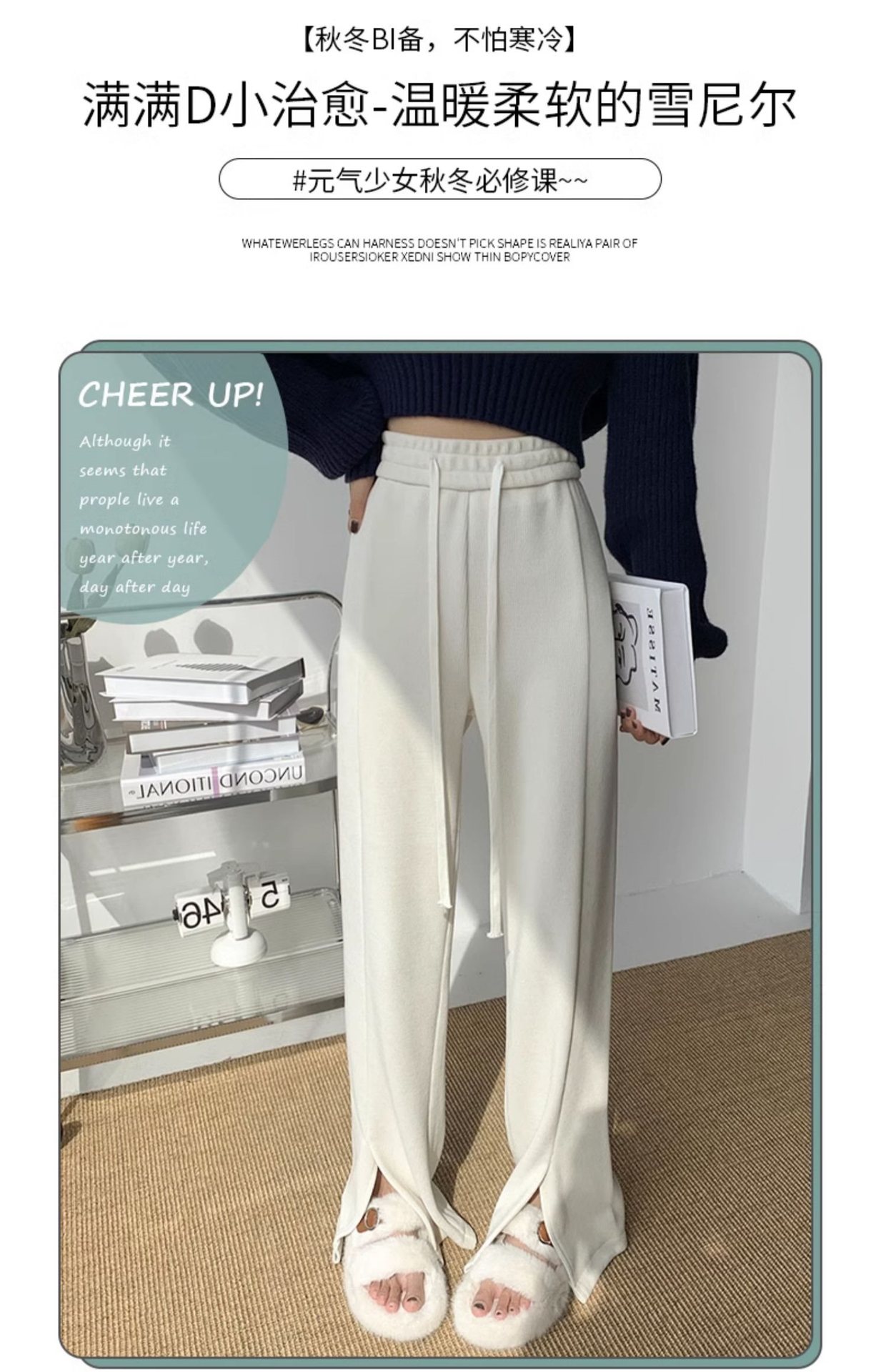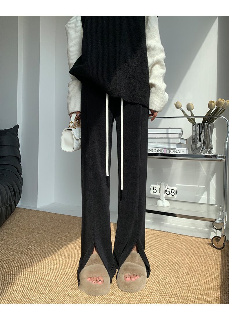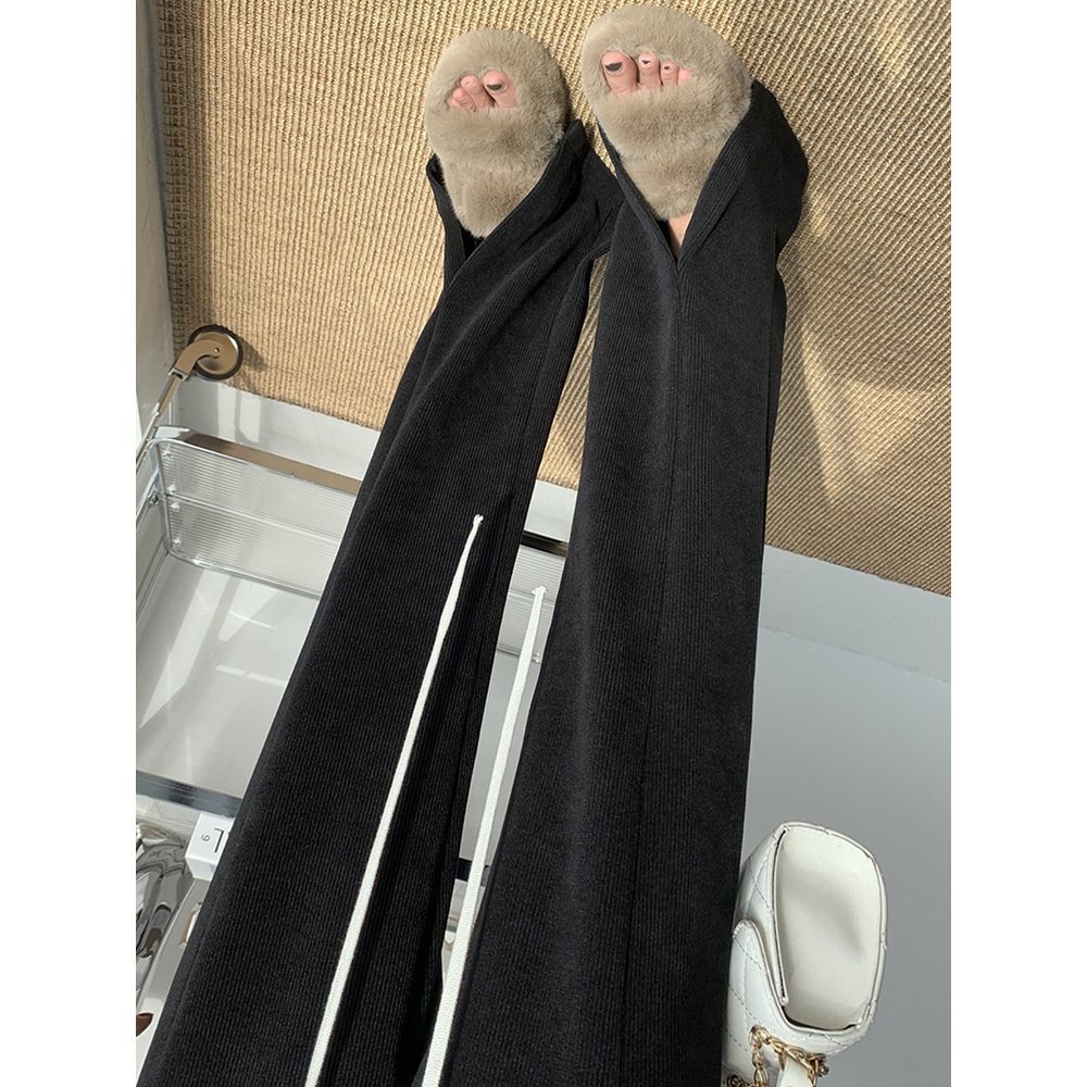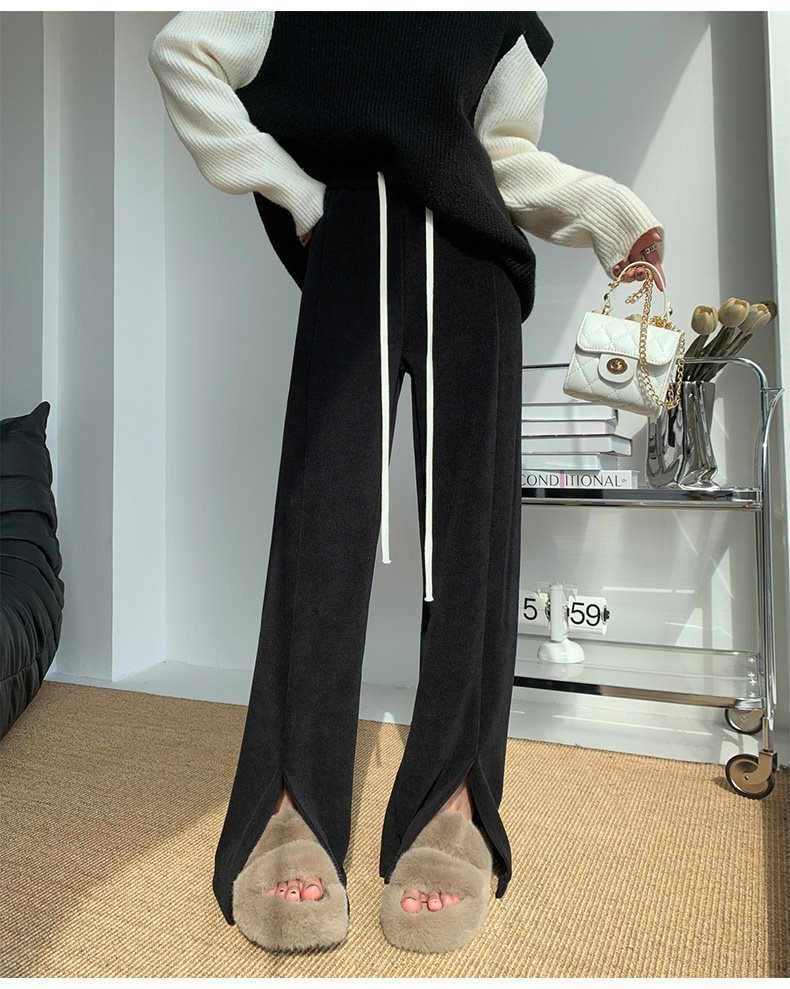 Узкие широкие брюки для женщин, весенние, осенние и зимние, с высокой талией, узкие, прямые брюки в пол, драпированные брюки с разрезом на флисовой подкладке из синели.