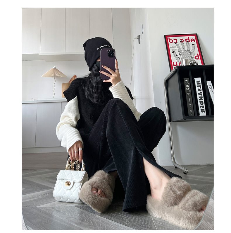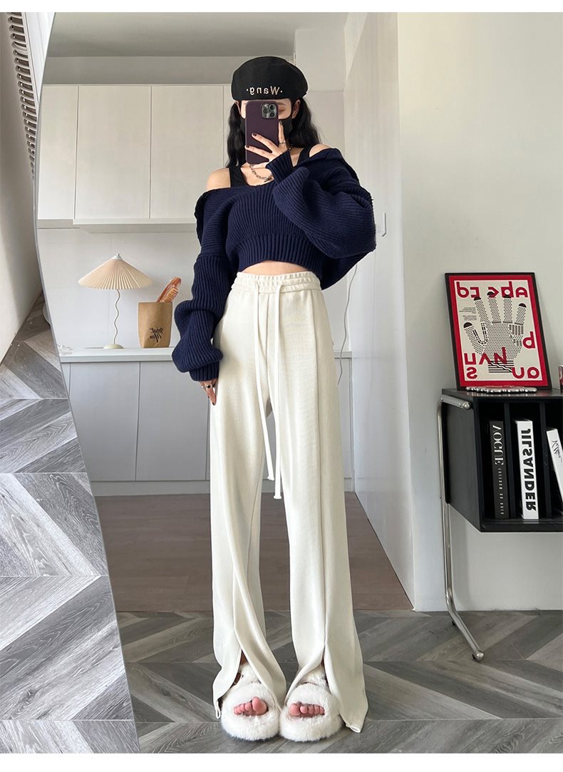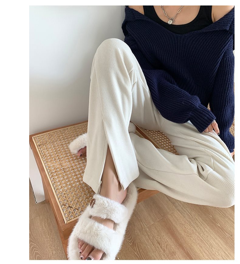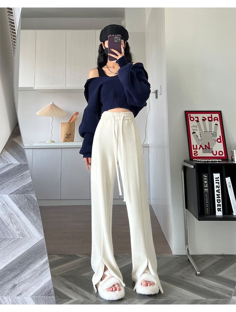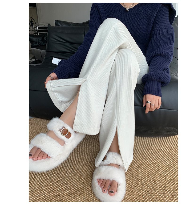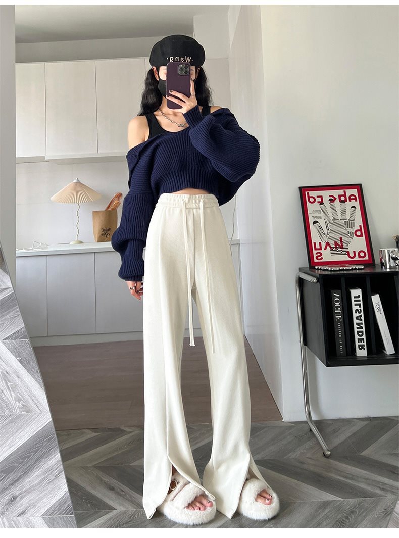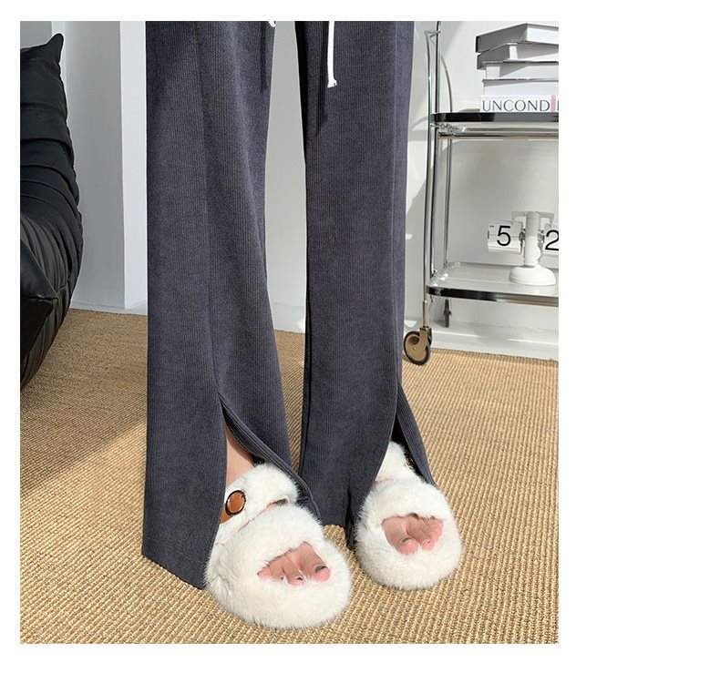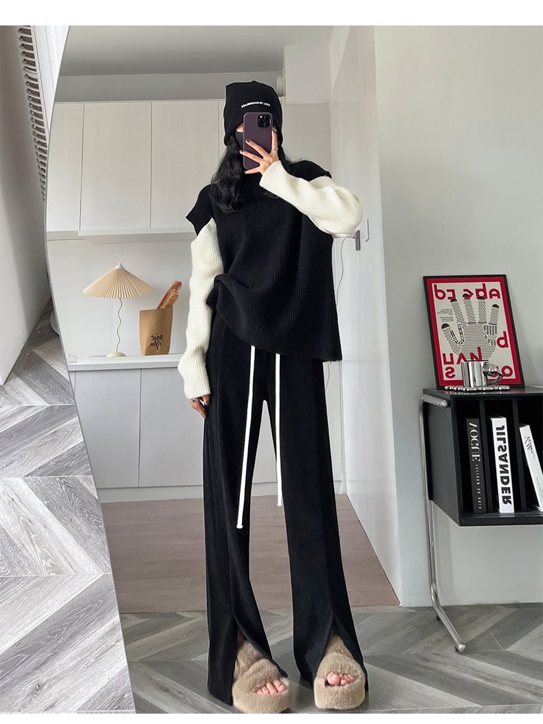 Узкие широкие брюки для женщин, весенние, осенние и зимние, с высокой талией, узкие, прямые брюки в пол, драпированные брюки с разрезом на флисовой подкладке из синели.