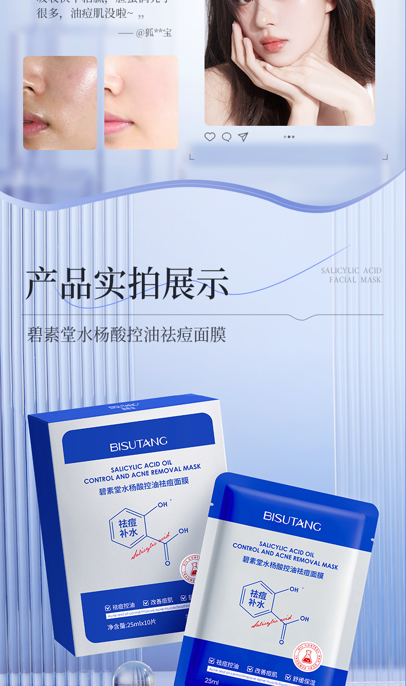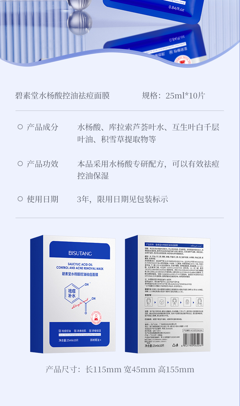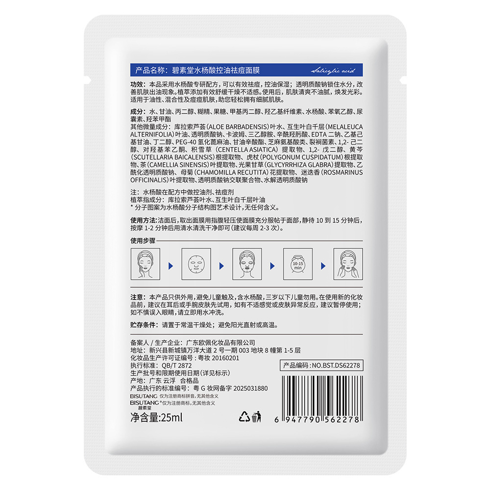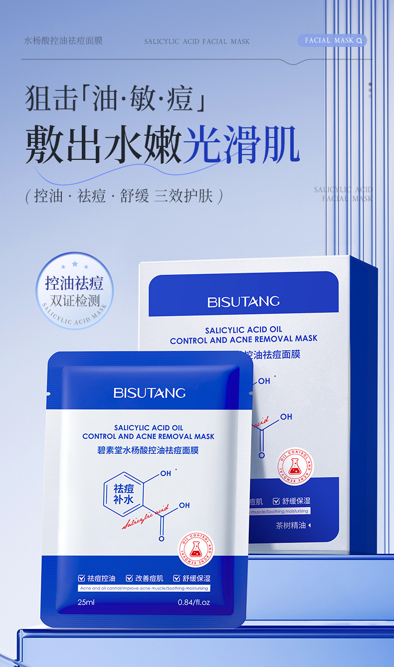 Маска с салициловой кислотой Bisutang контролирует жирность, удаляет прыщи, уменьшает следы прыщей, восстанавливает и увлажняет, сужает поры для мужчин и женщин.