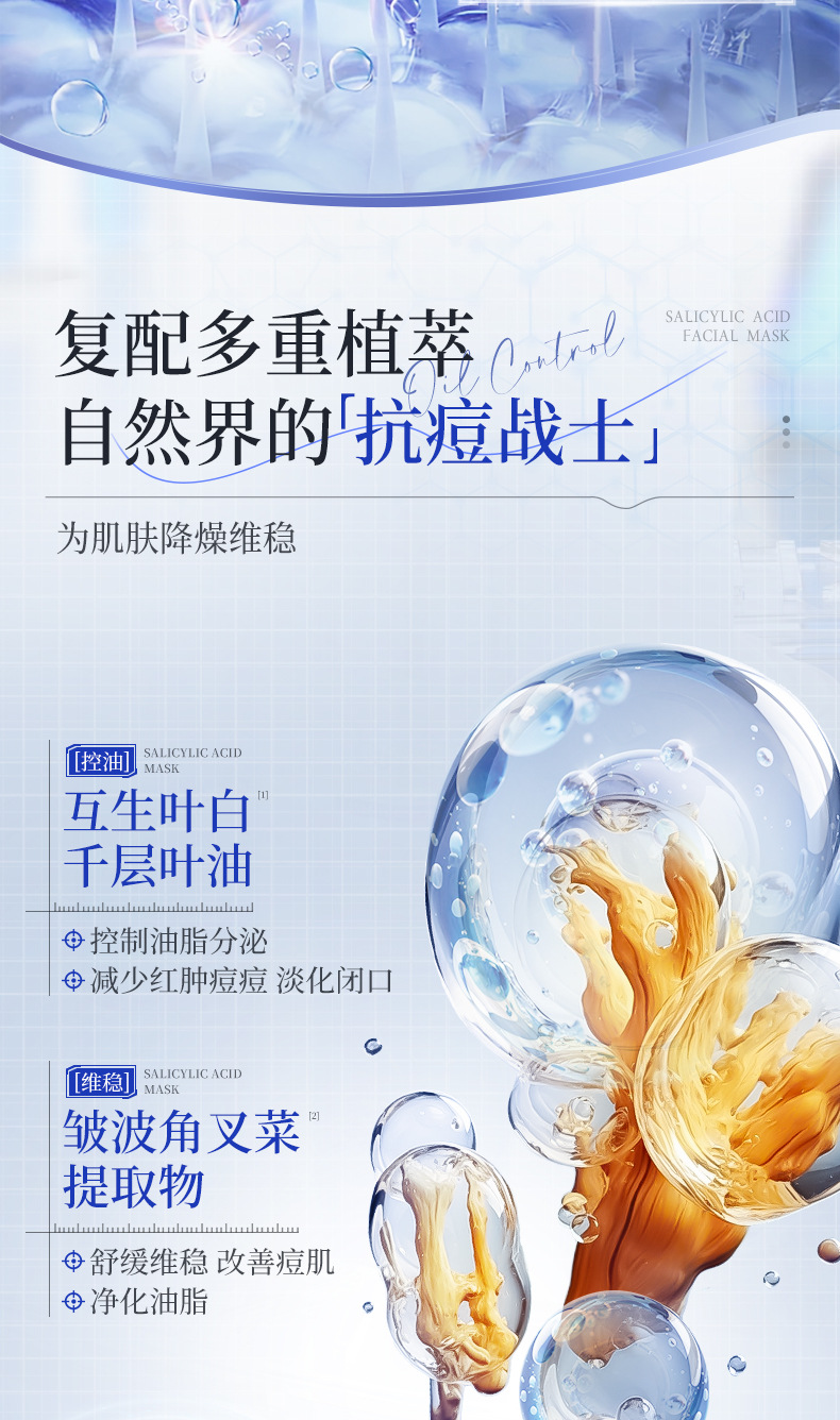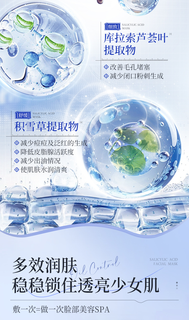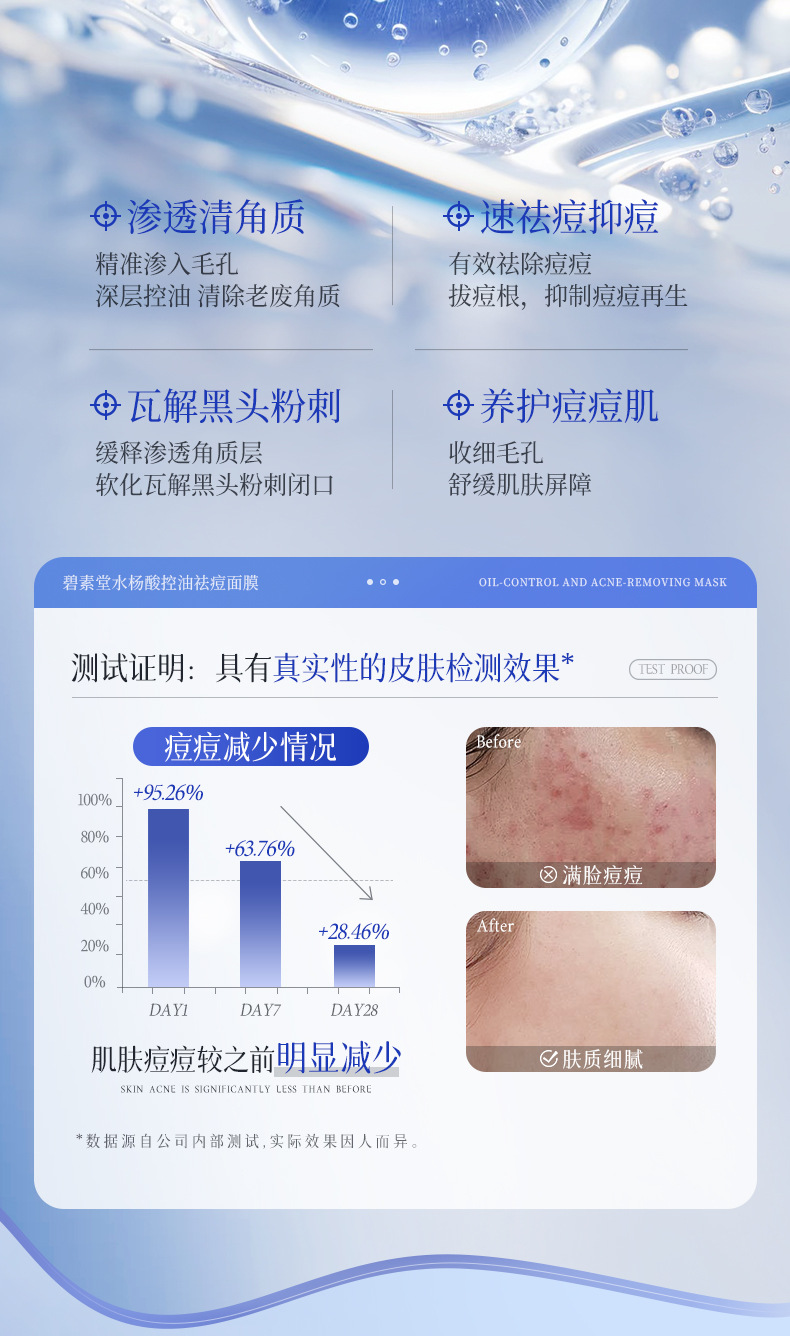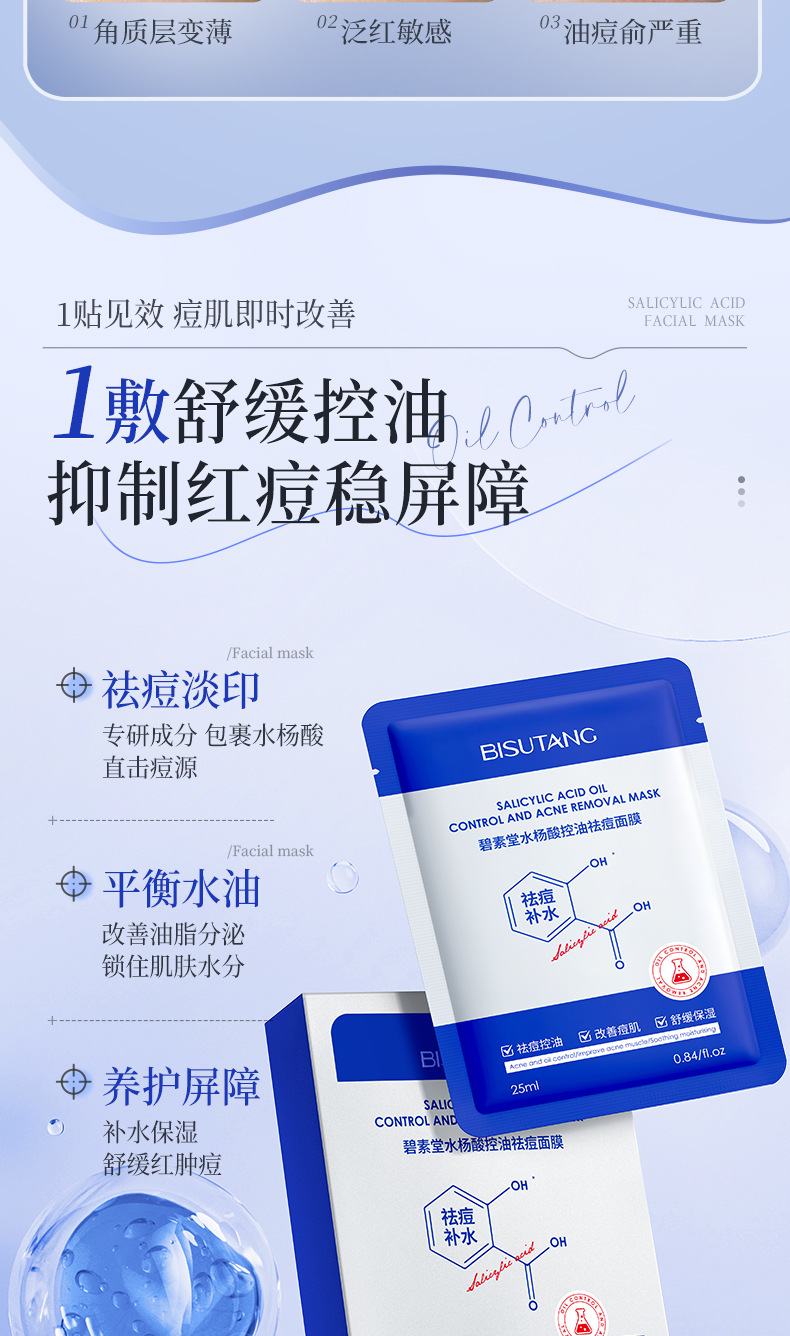Маска с салициловой кислотой Bisutang контролирует жирность, удаляет прыщи, уменьшает следы прыщей, восстанавливает и увлажняет, сужает поры для мужчин и женщин.
