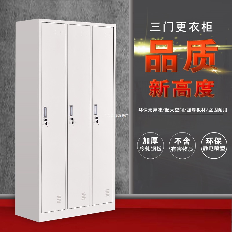 Утолщенный трехдверный железный шкаф для офиса, шкафчик с замком для ванной комнаты, тренажерного зала, общежития, шкафчик для сотрудников