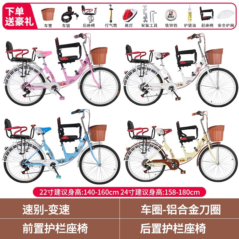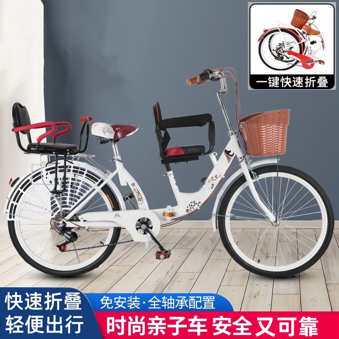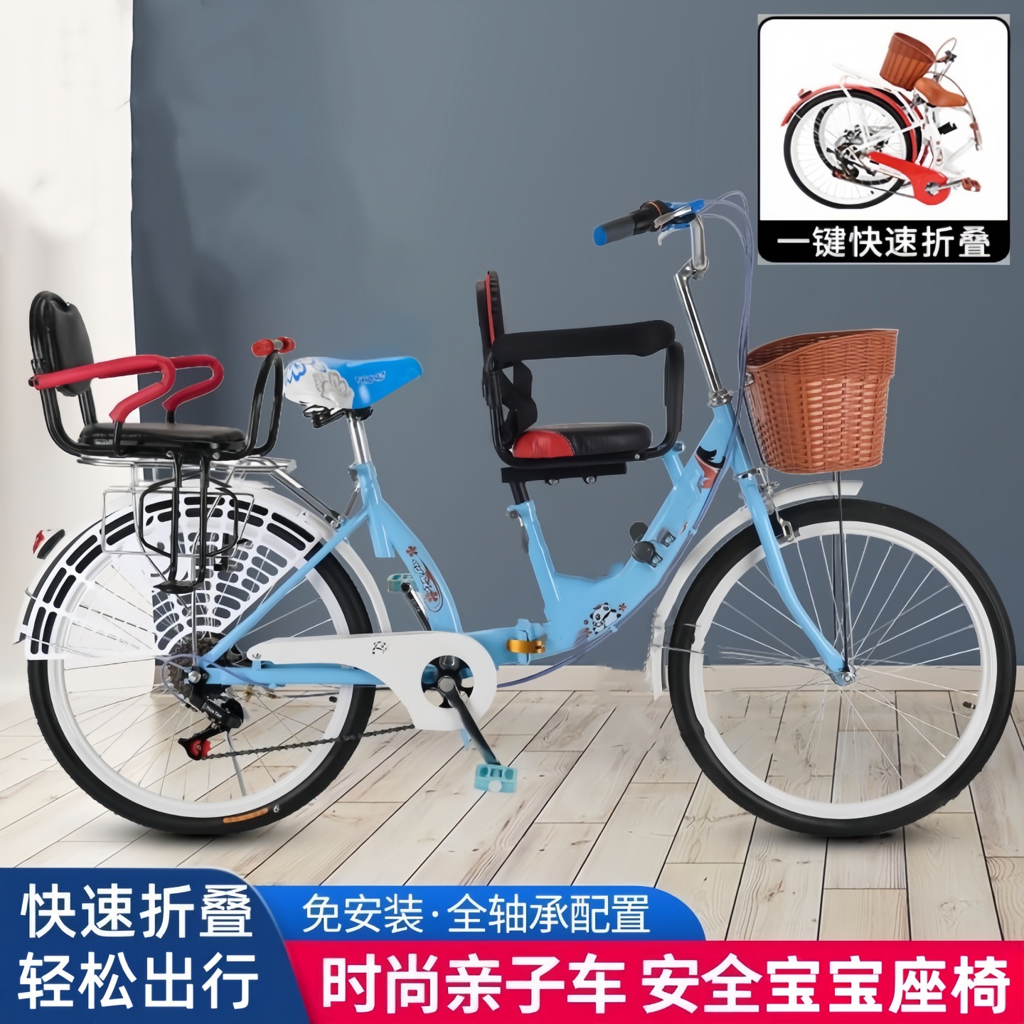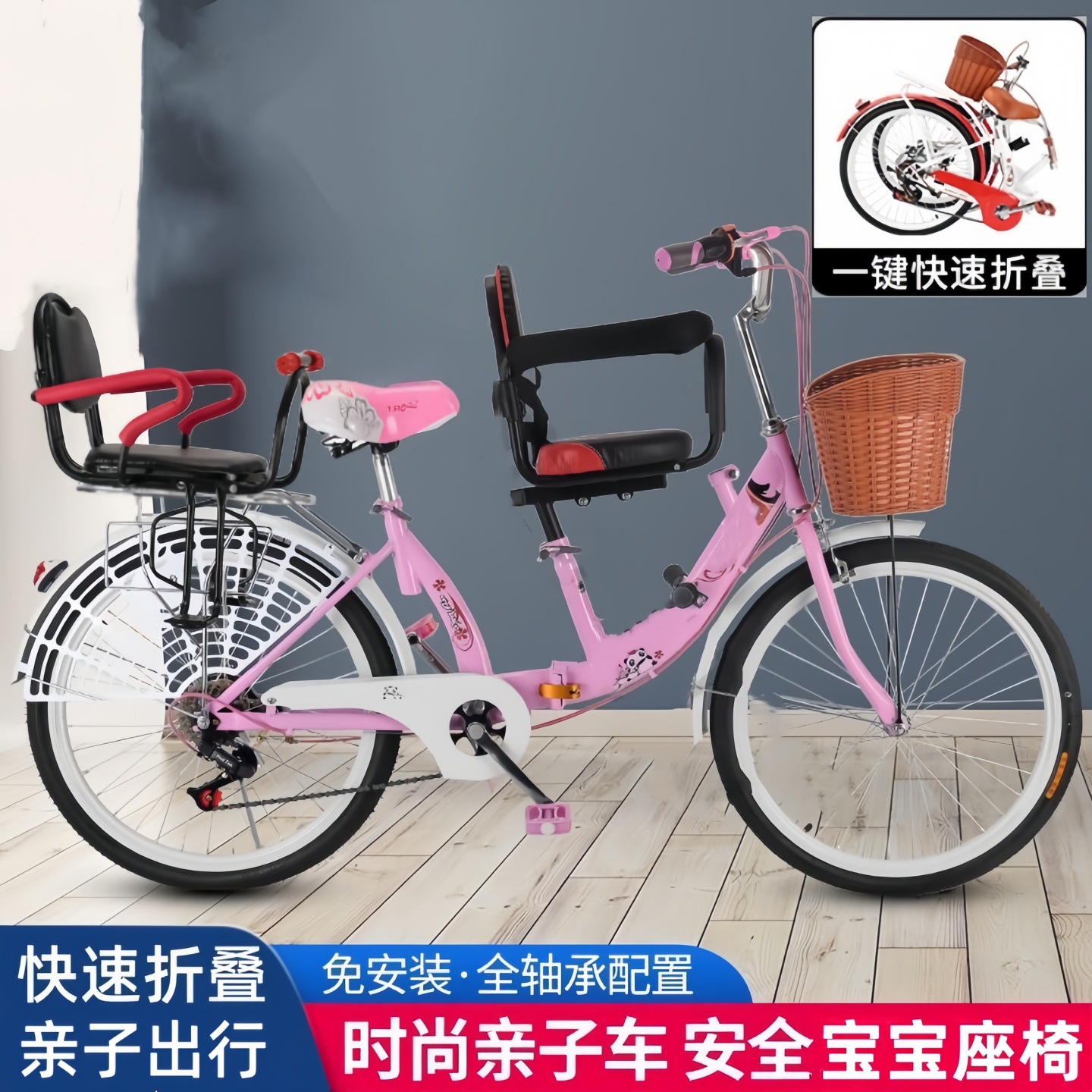 Складной велосипед для родителей и детей, не требующий установки, подходит для перевозки двух детей, с передними и задними поручнями для перевозки 2-3 человек.