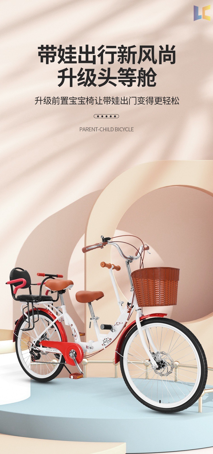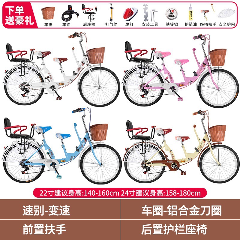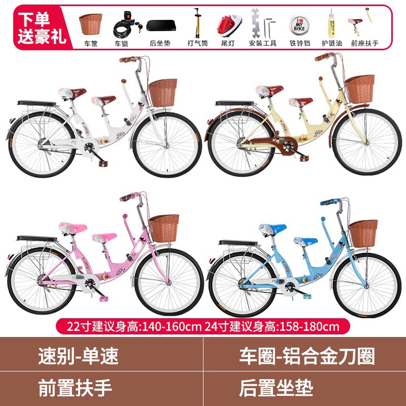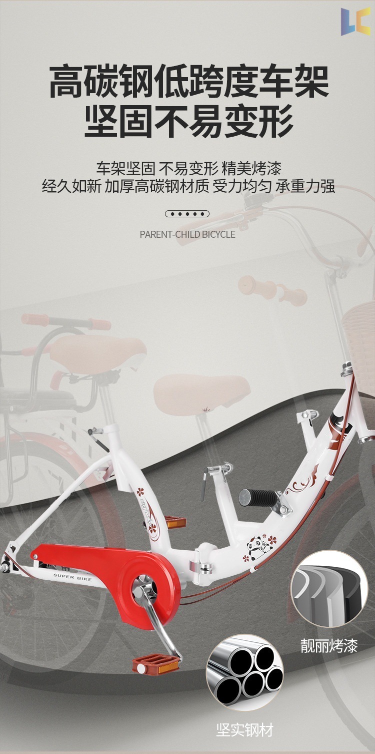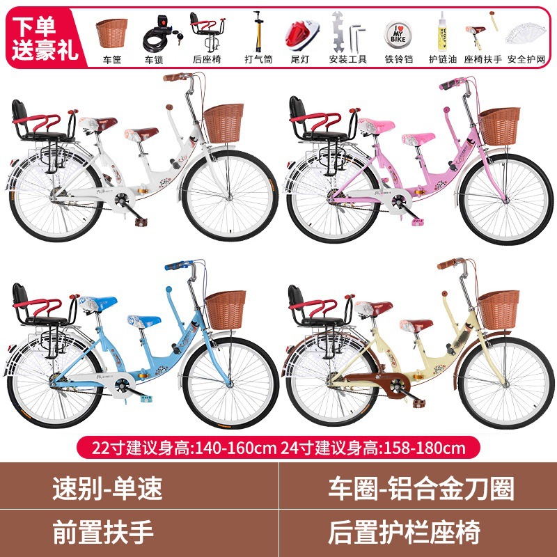 Складной велосипед для родителей и детей, не требующий установки, подходит для перевозки двух детей, с передними и задними поручнями для перевозки 2-3 человек.