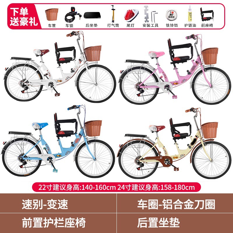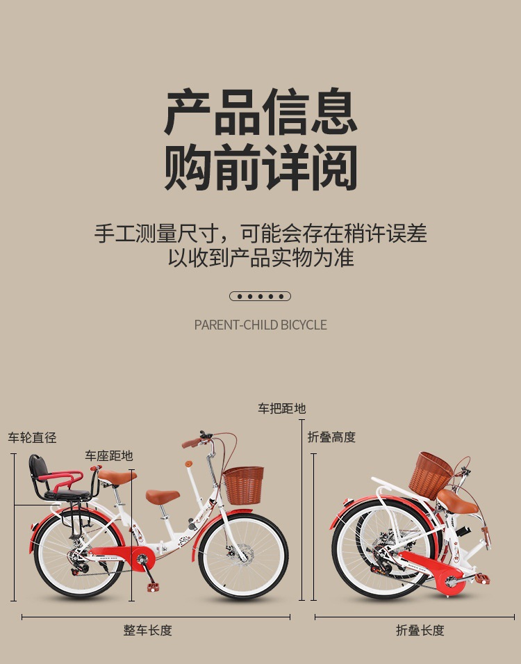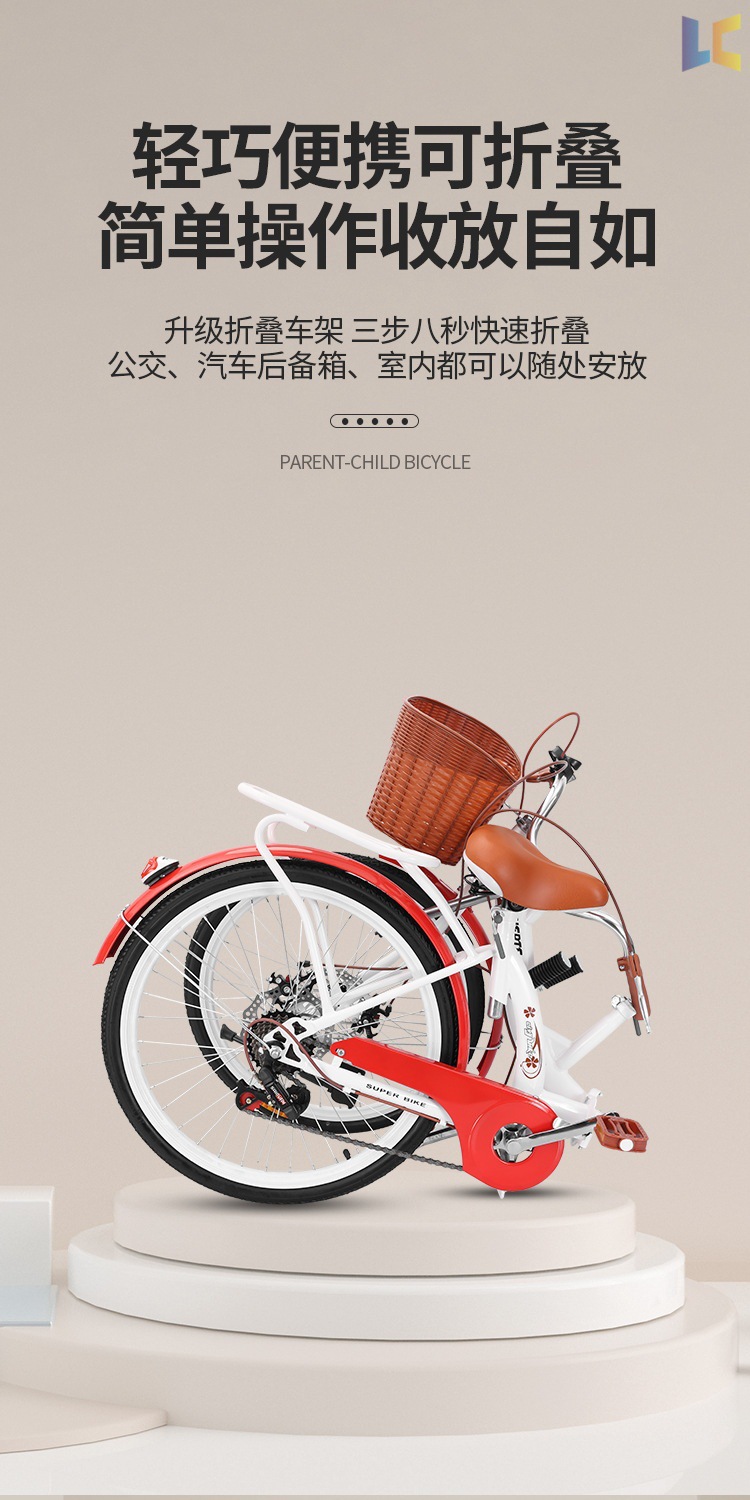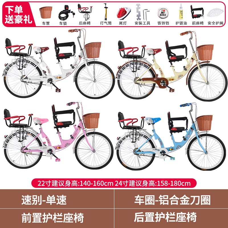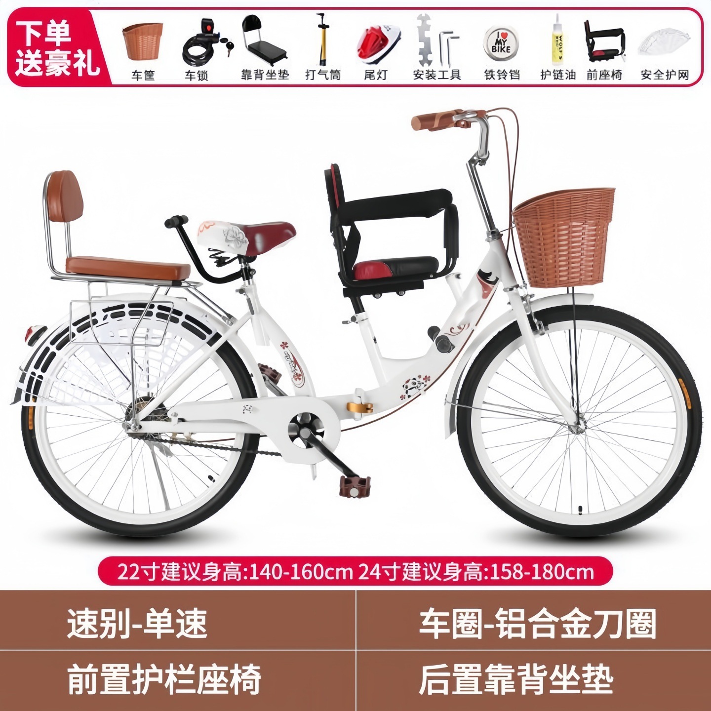 Складной велосипед для родителей и детей, не требующий установки, подходит для перевозки двух детей, с передними и задними поручнями для перевозки 2-3 человек.