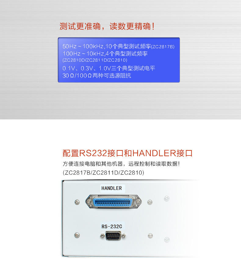 ZC2810D10кГц, 4 частотных точки); ZC2811D10кГц, 4 частотных точки); ZC2811C10кГц, 3 частотных точки); ZC2816A (200 кГц, 120 000 частотных точек); ZC2816B (200 кГц, 37 частотных точек); ZC2817B100 кГц, 10 частотных точек; ZC2818A (300 кГц); LCR002 (оригинальные аксессуары) опционально; LCR003 (оригинальные аксессуары) опционально; LCR004 (оригинальные аксессуары) опционально