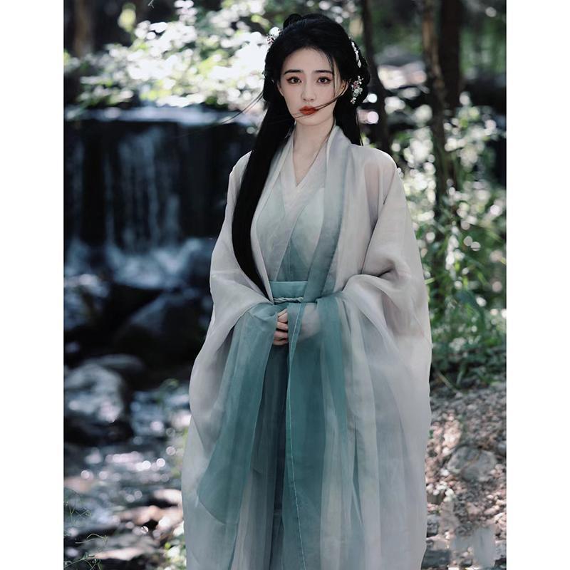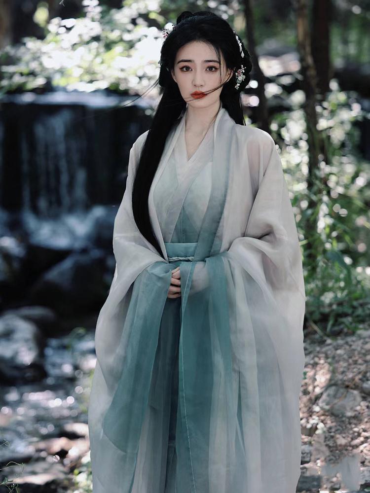 Женский стиль Ханфу в стиле Сю Лу, древний костюм династий Вэй, Цзинь, Северная и Южная династии, прохладная рубашка с широкими рукавами и перекрестным воротником, юбка-ру до талии и комплект с широкими рукавами.