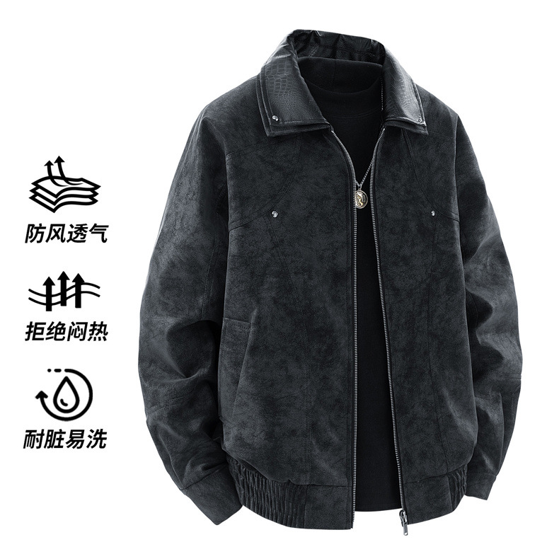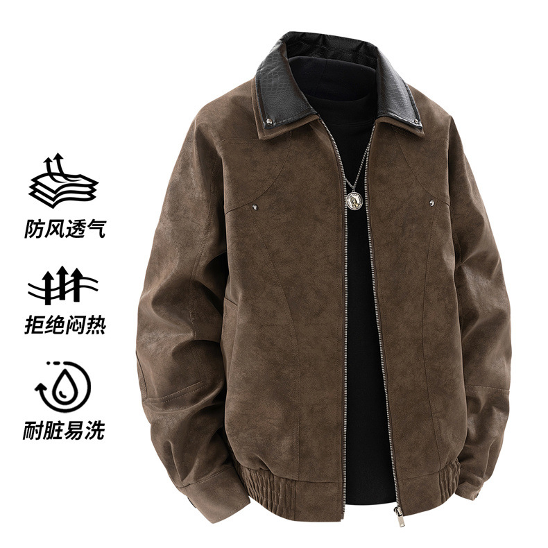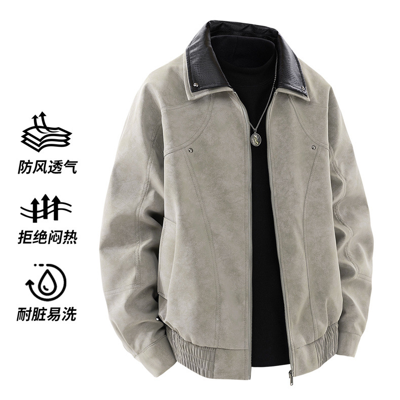 Мужская кожаная куртка 2025, американская мотоциклетная кожаная куртка для мужчин, весенне-осенняя куртка с отворотами, свободного кроя, в стиле пилота