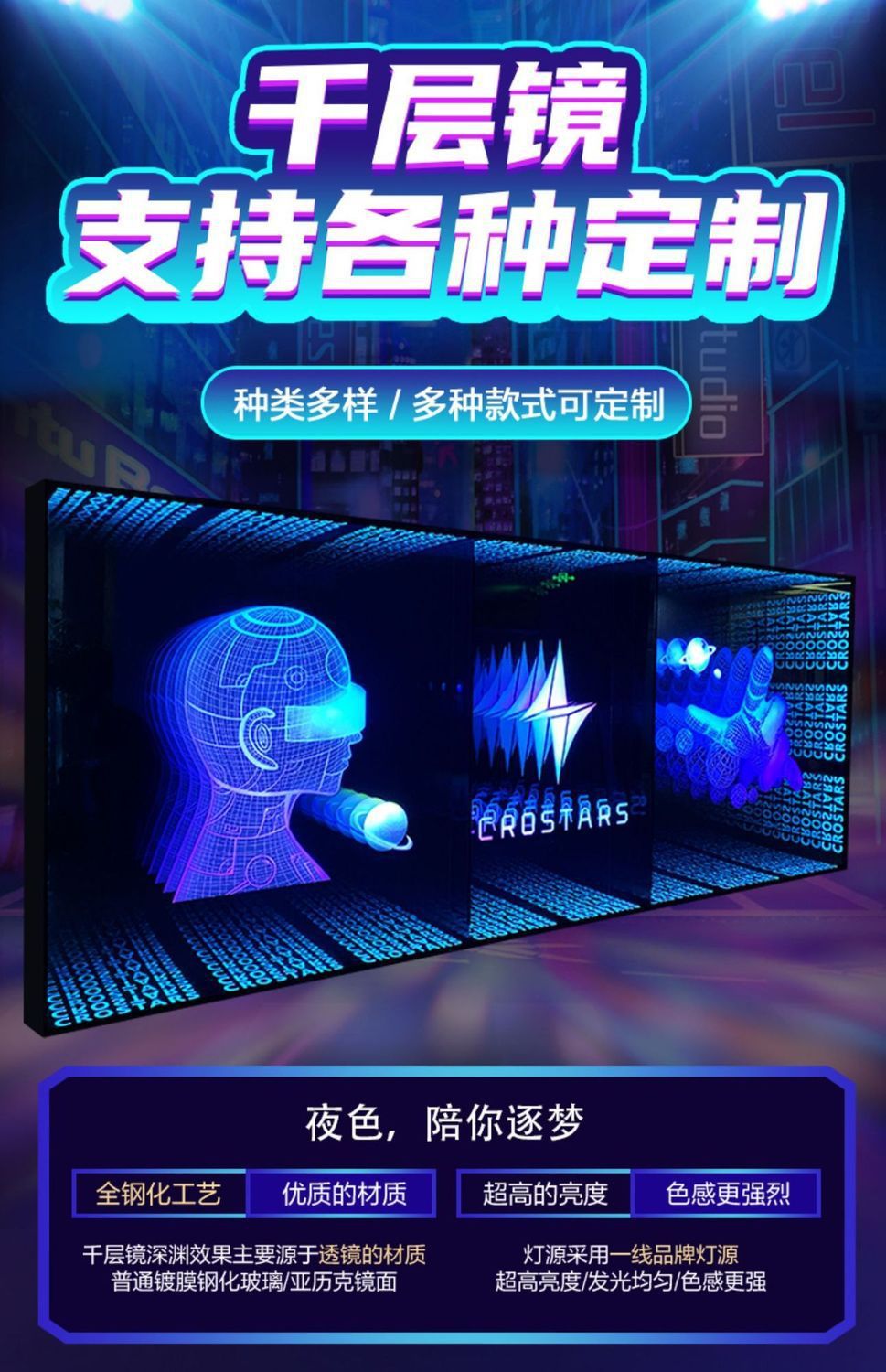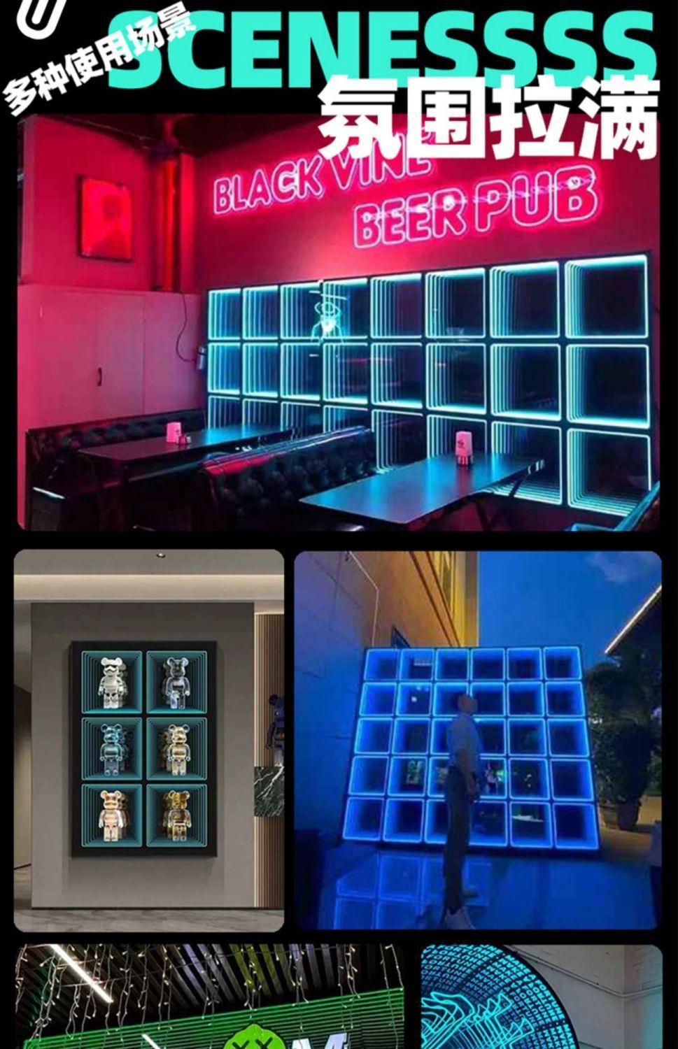 Зеркало Abyss, тысяча слоев зеркала, неоновый свет, 3D рекламный световой короб, интернет-знаменитости, бильярдный зал, фон, стена, бар, прямая трансляция