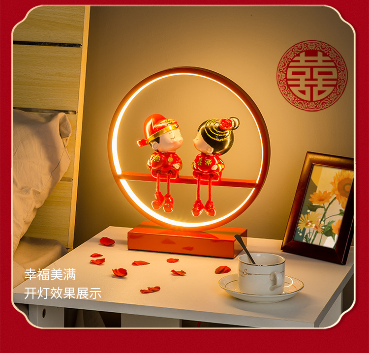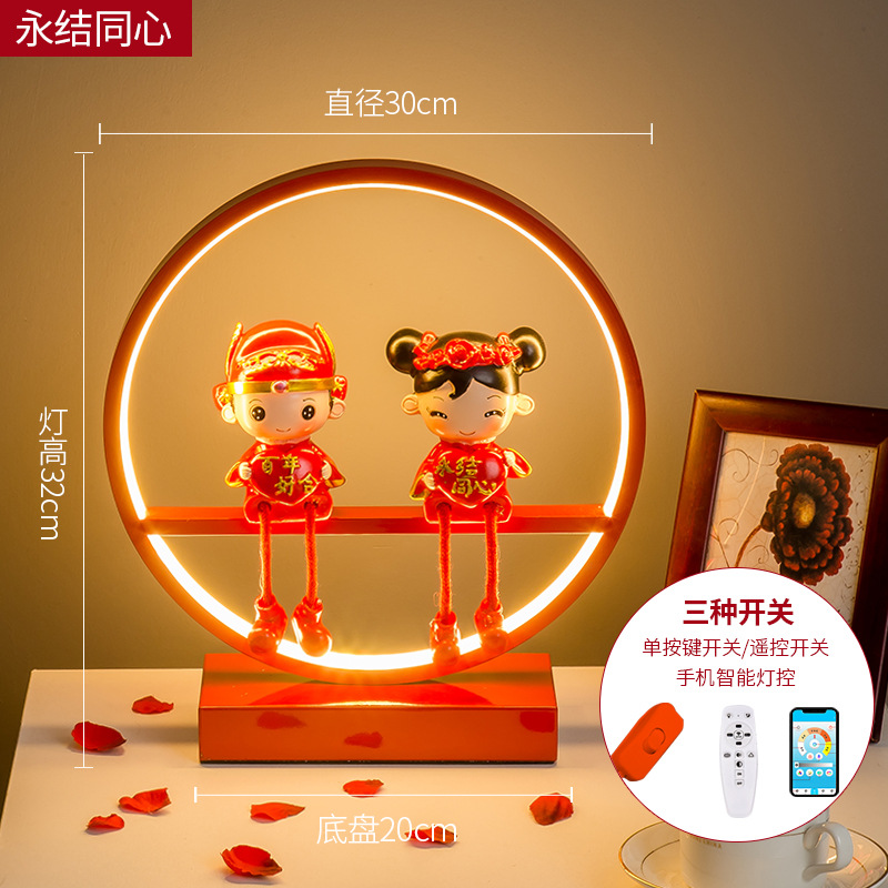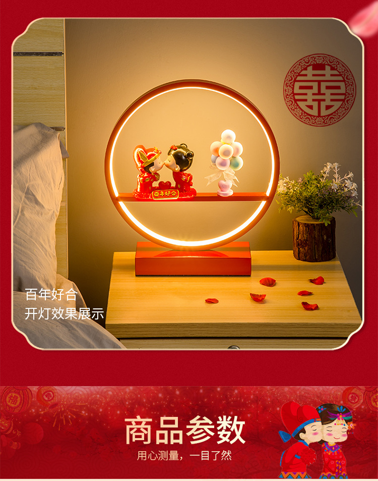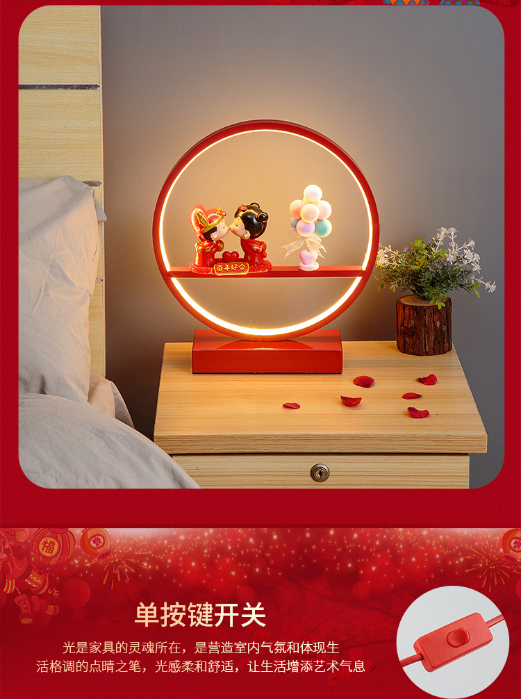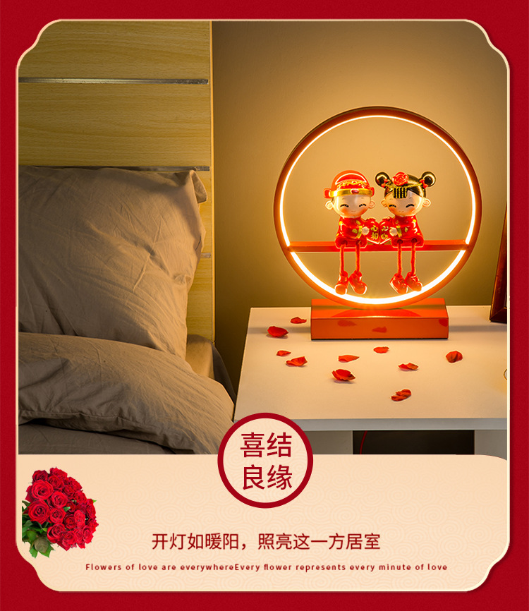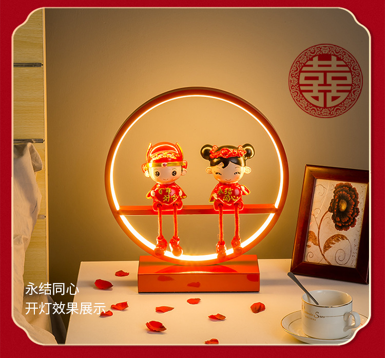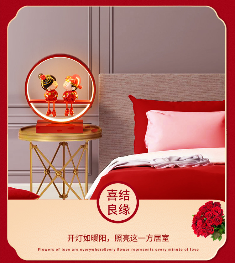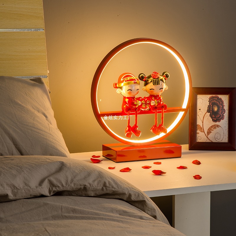Прикроватная лампа, лампа для спальни, лампа для приданого, праздничная лампа, свадебная настольная лампа с длительным сроком службы, лампа для невесты, пара для свадебной комнаты, красный
