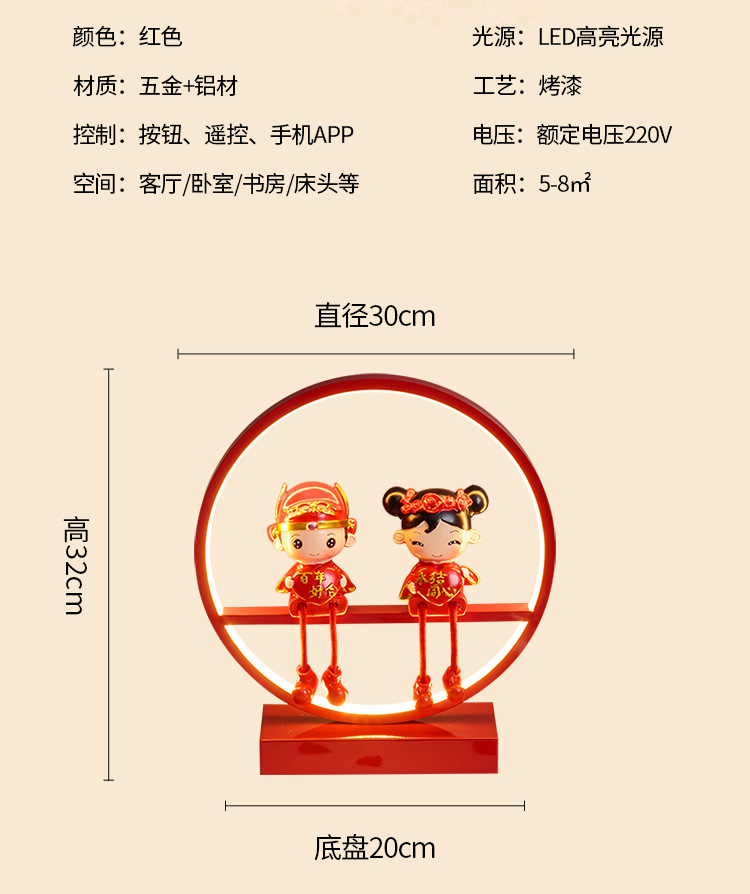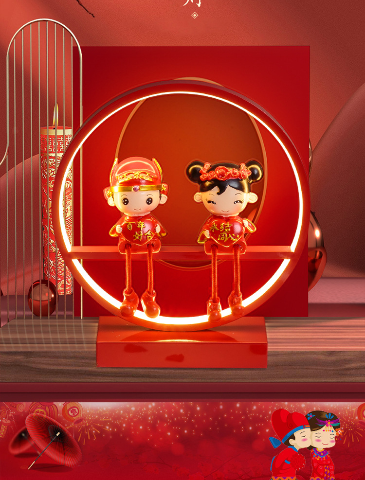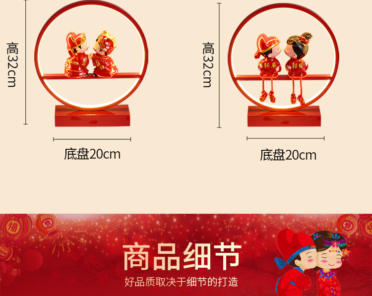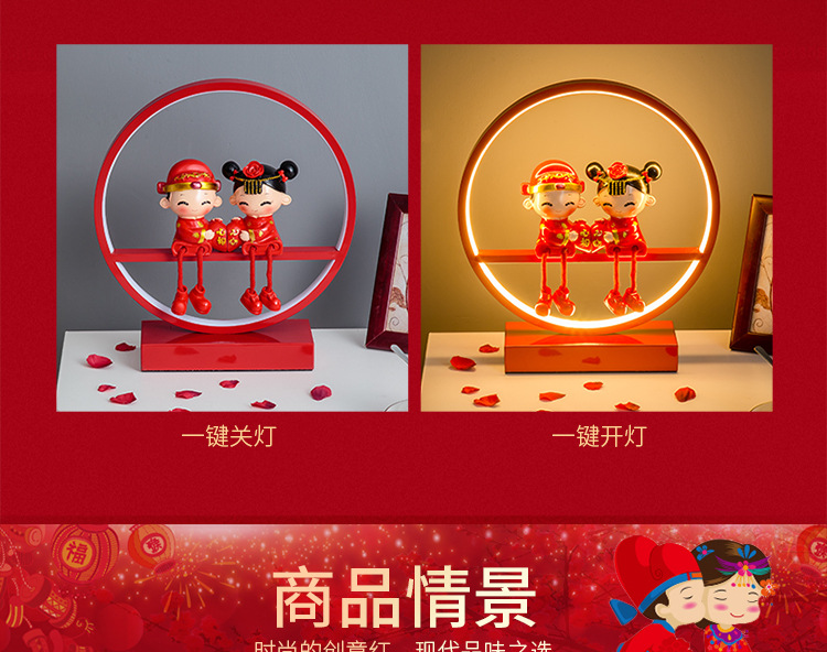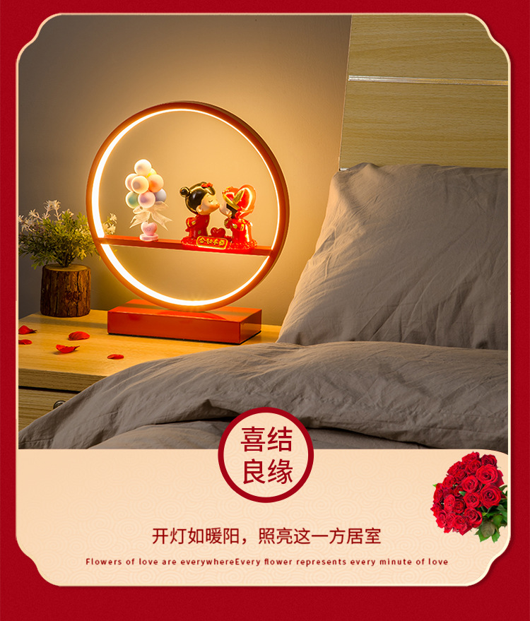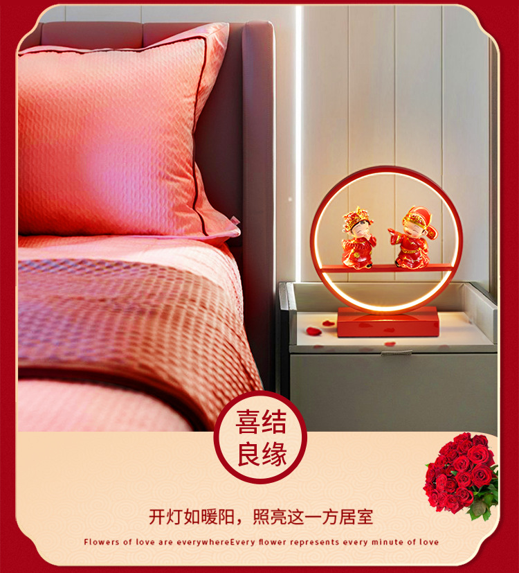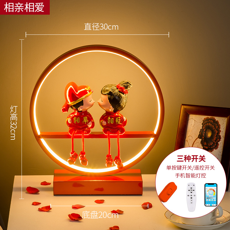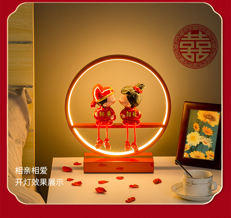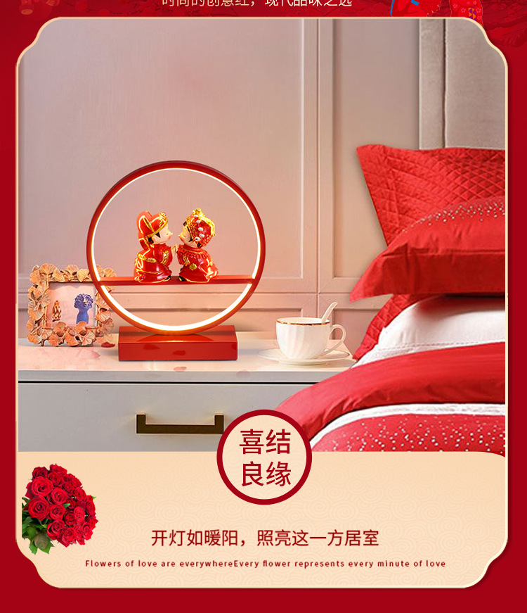 Прикроватная лампа, лампа для спальни, лампа для приданого, праздничная лампа, свадебная настольная лампа с длительным сроком службы, лампа для невесты, пара для свадебной комнаты, красный
