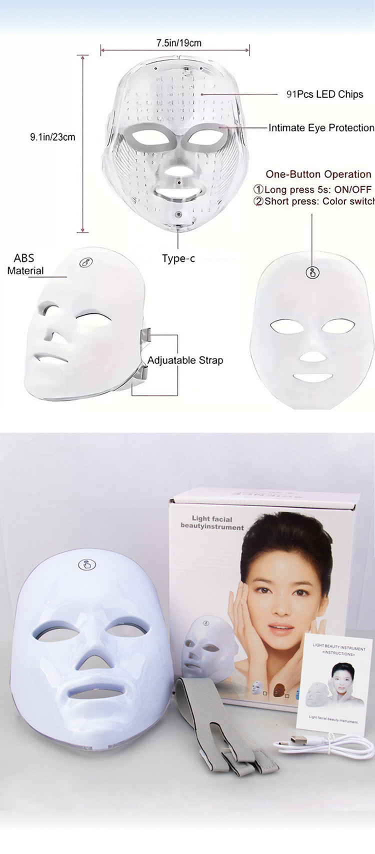 Инструмент для фотонного омоложения лица, маска с 7 цветами, прибор для омоложения лица с семицветным светом для домашнего использования