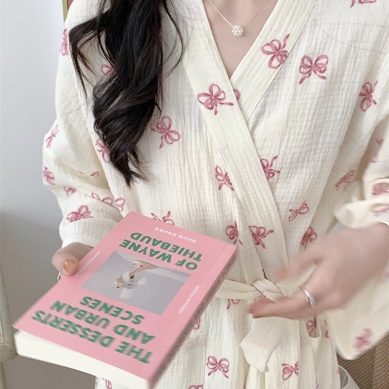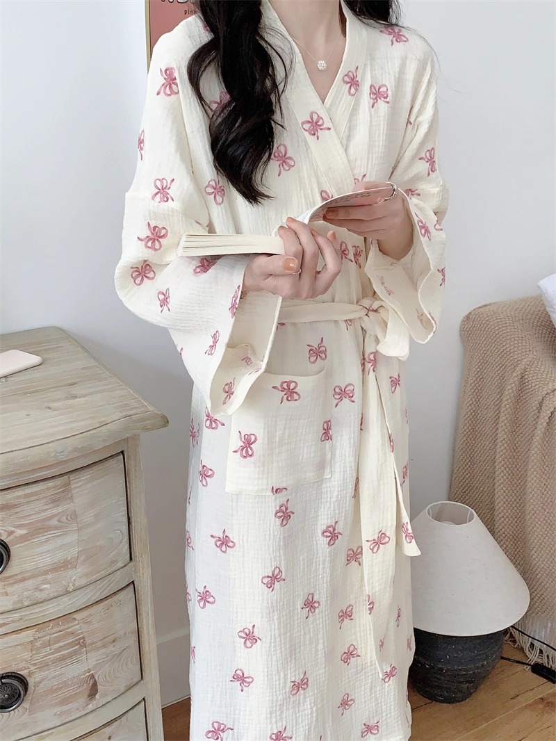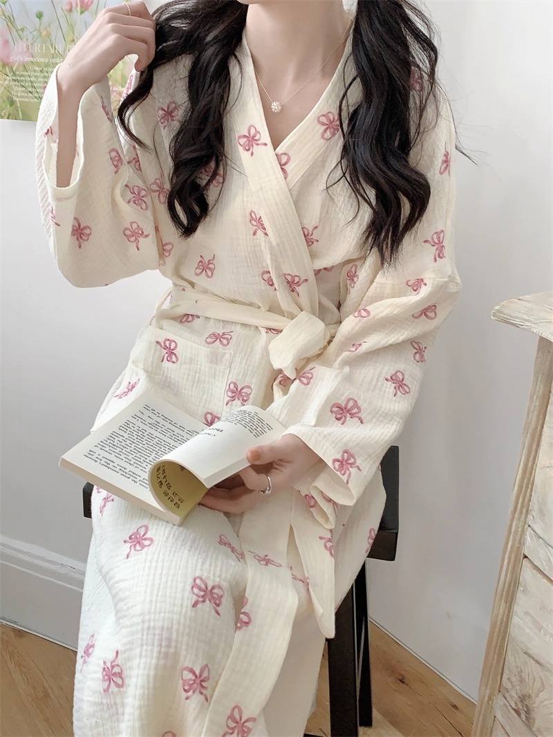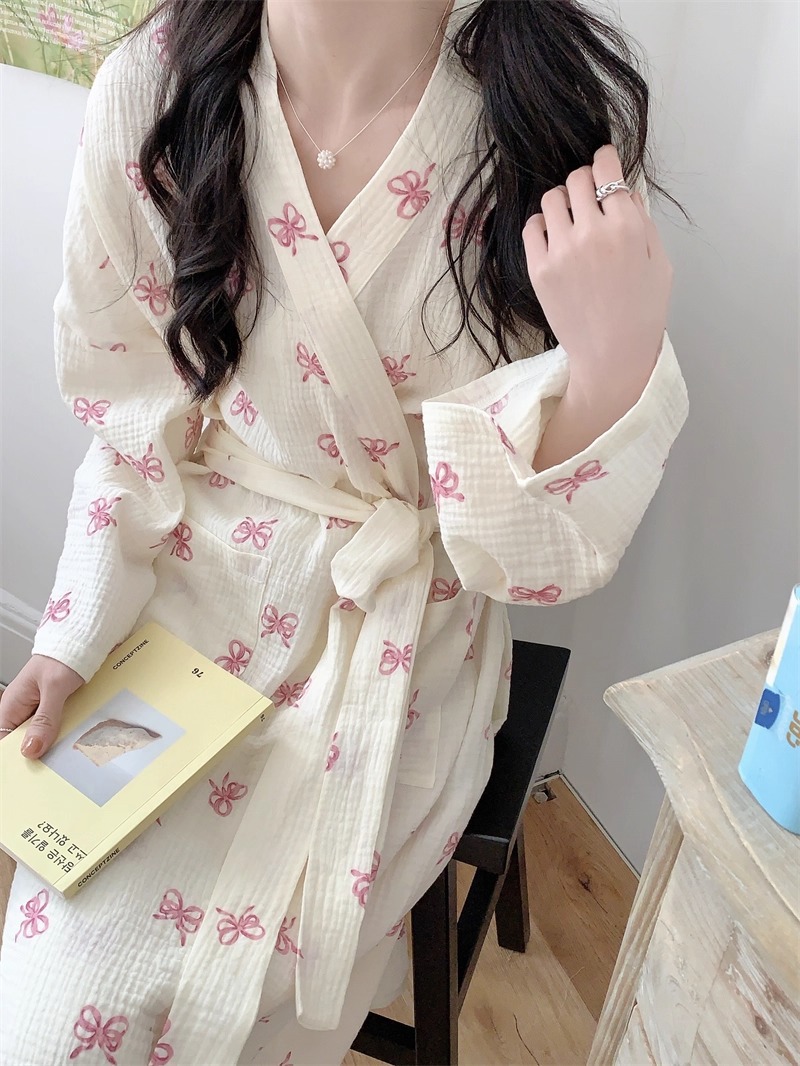 Новые пижамы для женщин на весну и осень в корейском стиле, простая и удобная ночная рубашка с розовым бантом, повседневная свободная домашняя одежда, ночная рубашка