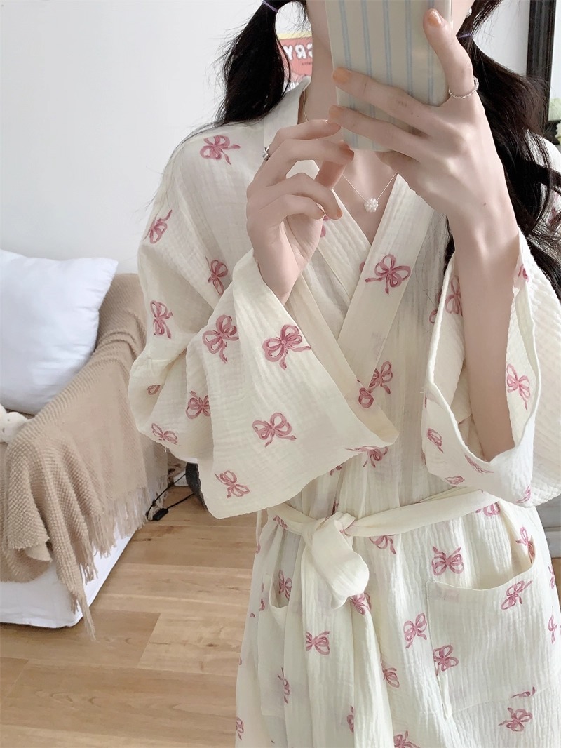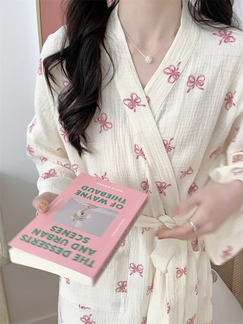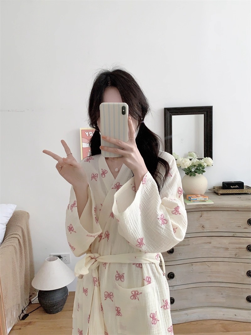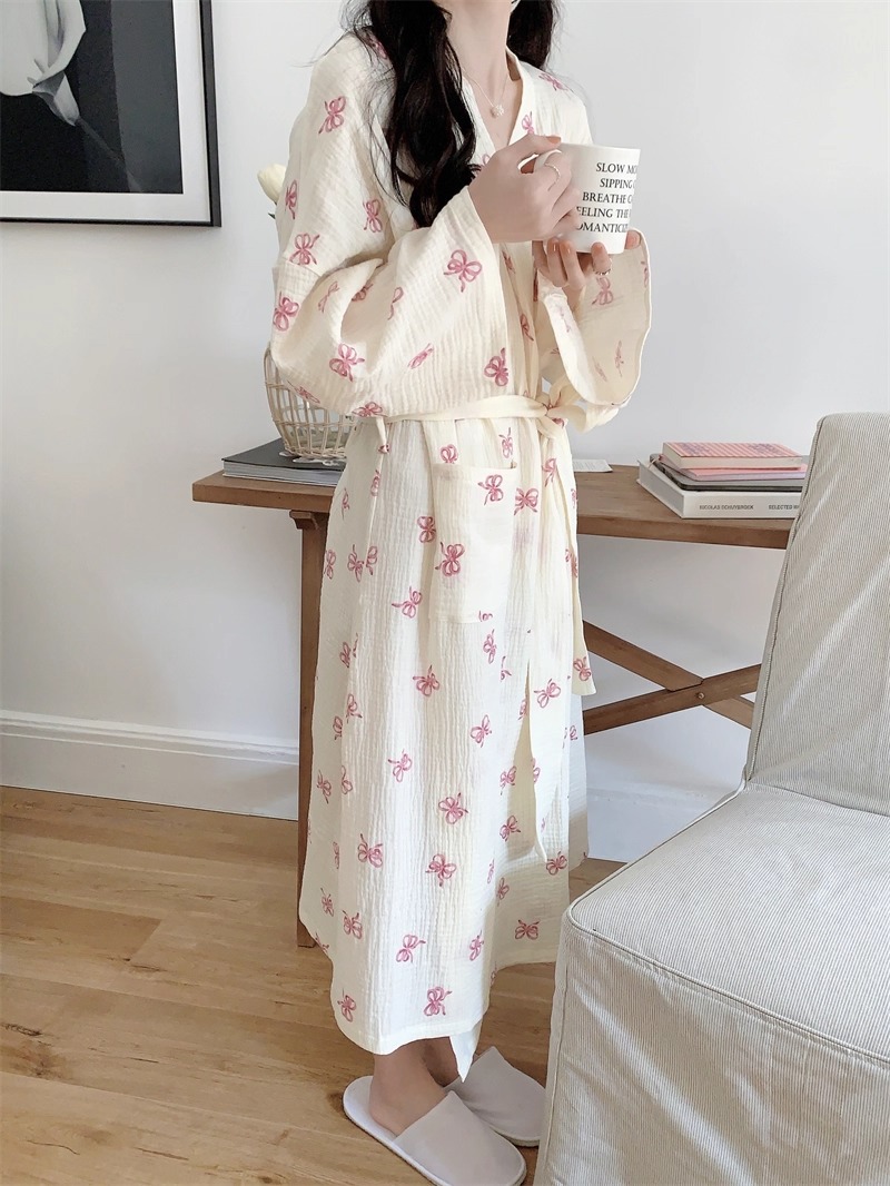 Новые пижамы для женщин на весну и осень в корейском стиле, простая и удобная ночная рубашка с розовым бантом, повседневная свободная домашняя одежда, ночная рубашка