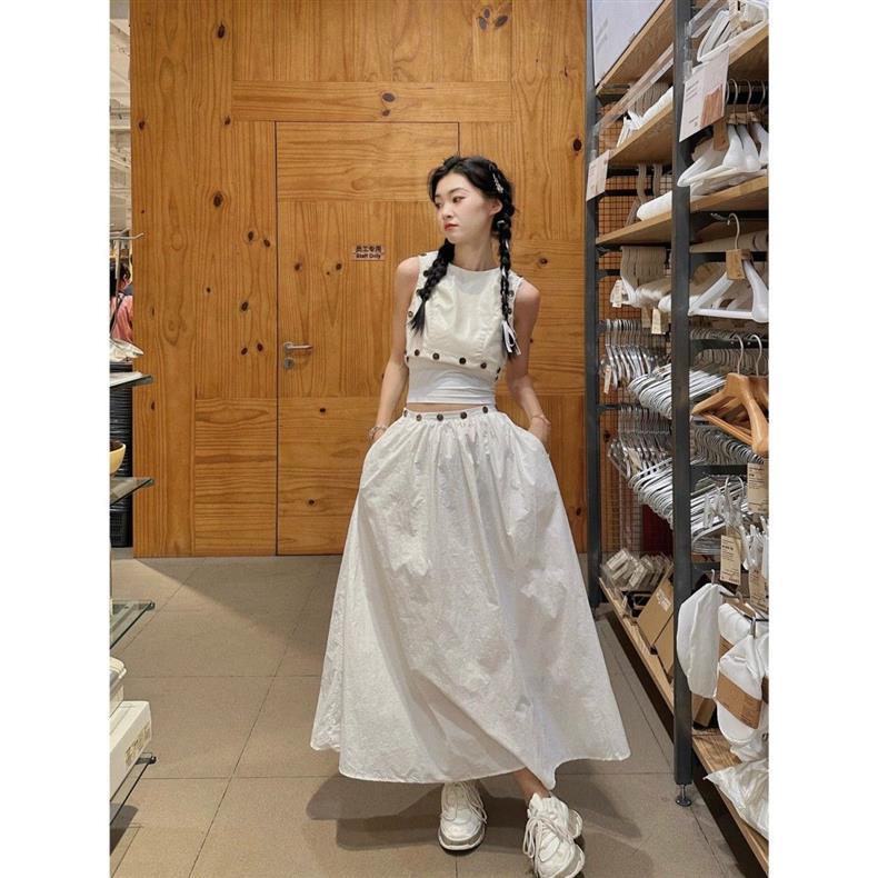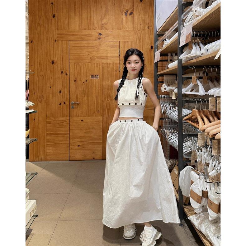 Стильный и модный комплект: короткий топ-жилет и юбка с высокой талией, летний набор 2025 года