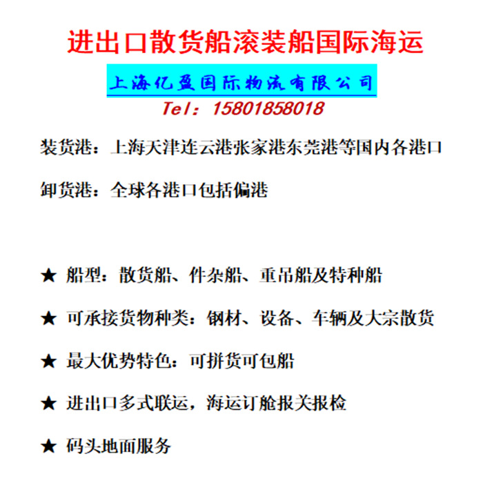 上海亿盈国际物流暨盈达船务 —— 专职散货船滚装船运作专家!