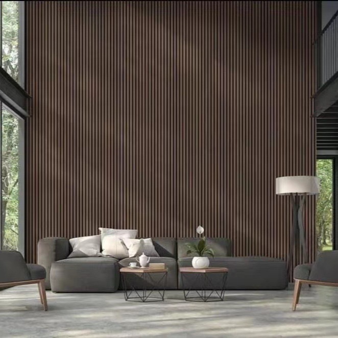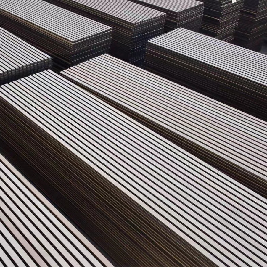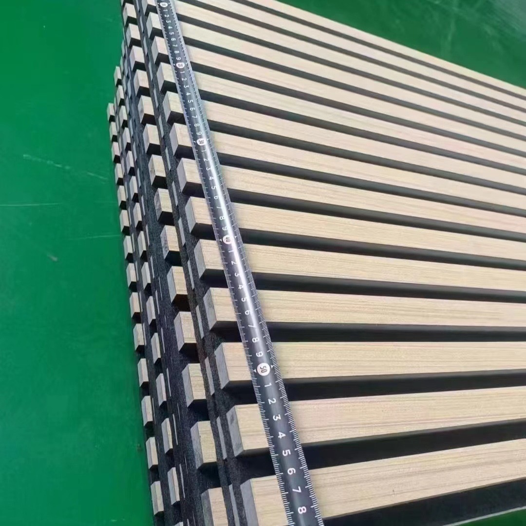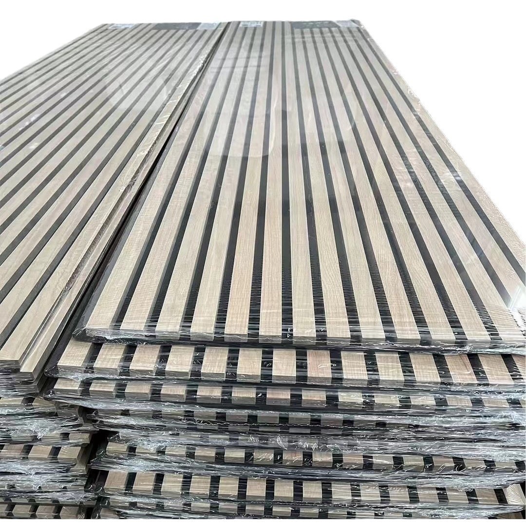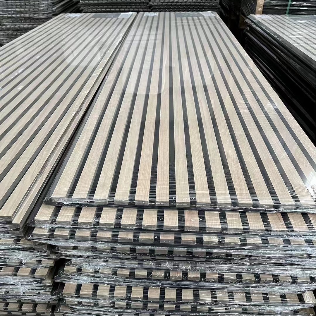 Заводская оптовая продажа звукопоглощающих панелей из полиэфирного волокна с деревянными полосами, настенного декора, шпонированных звукопоглощающих панелей, фоновых стеновых панелей