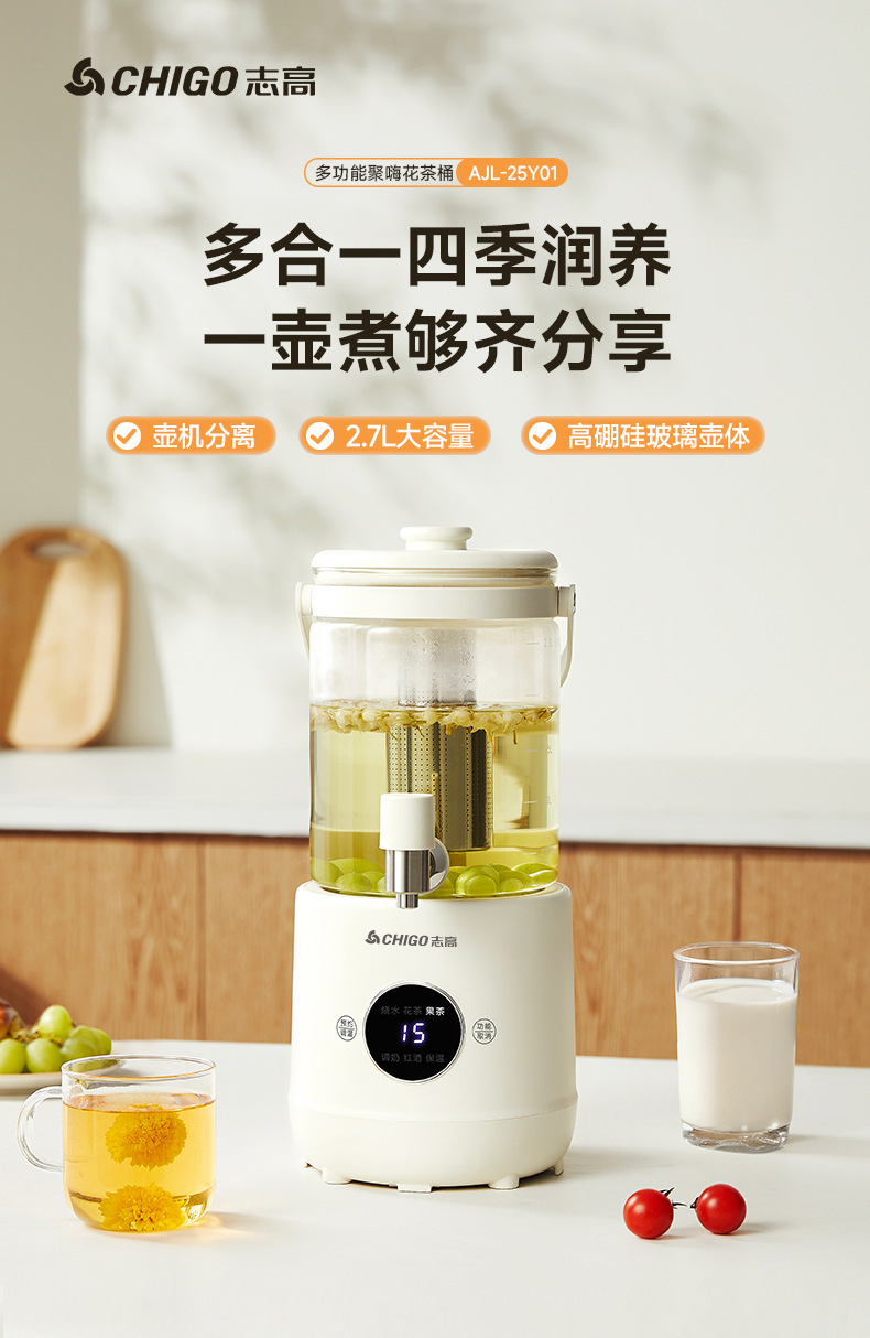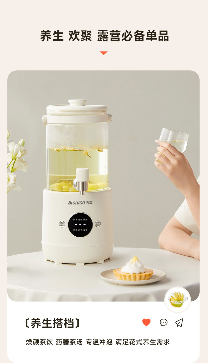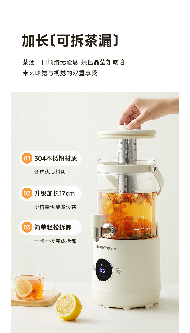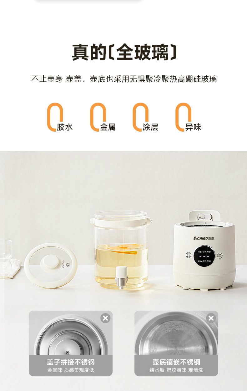 Смеситель Chigo, кастрюля для здоровья, бытовая кастрюля для тушения, универсальное ведро для фруктового чая, многофункциональная офисная полностью стеклянная чайник