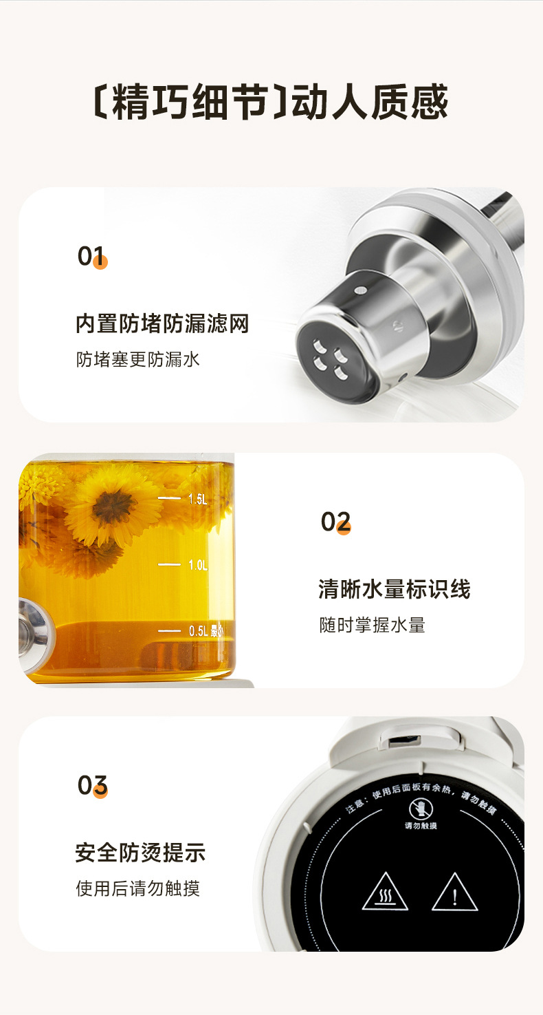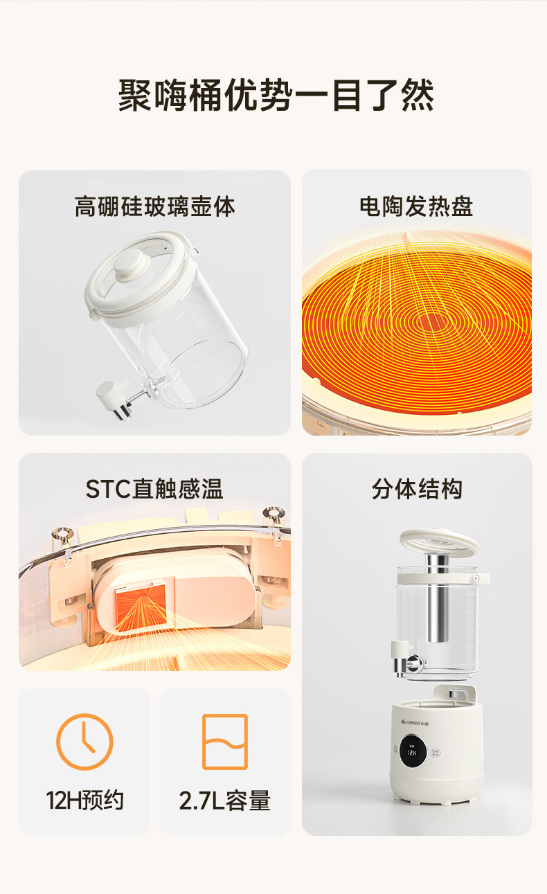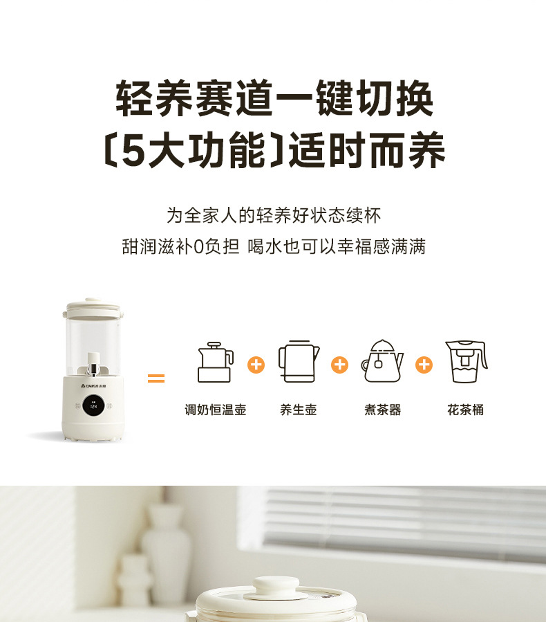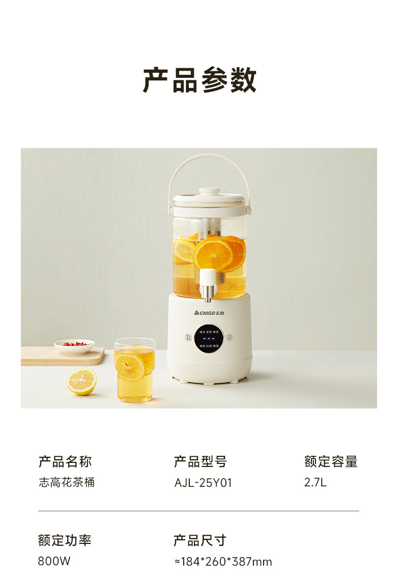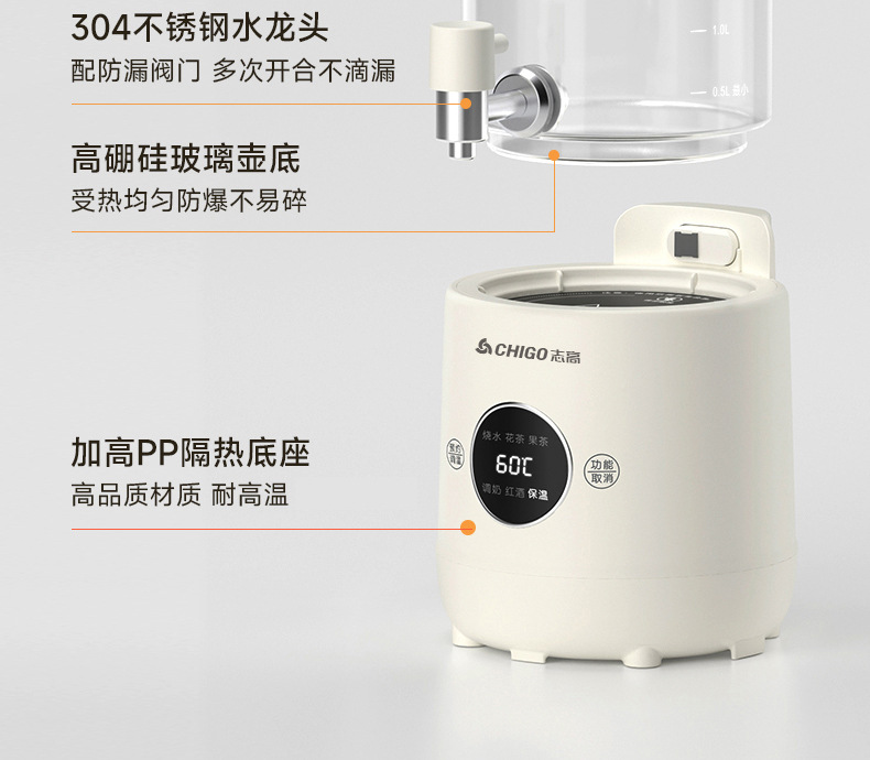Смеситель Chigo, кастрюля для здоровья, бытовая кастрюля для тушения, универсальное ведро для фруктового чая, многофункциональная офисная полностью стеклянная чайник
