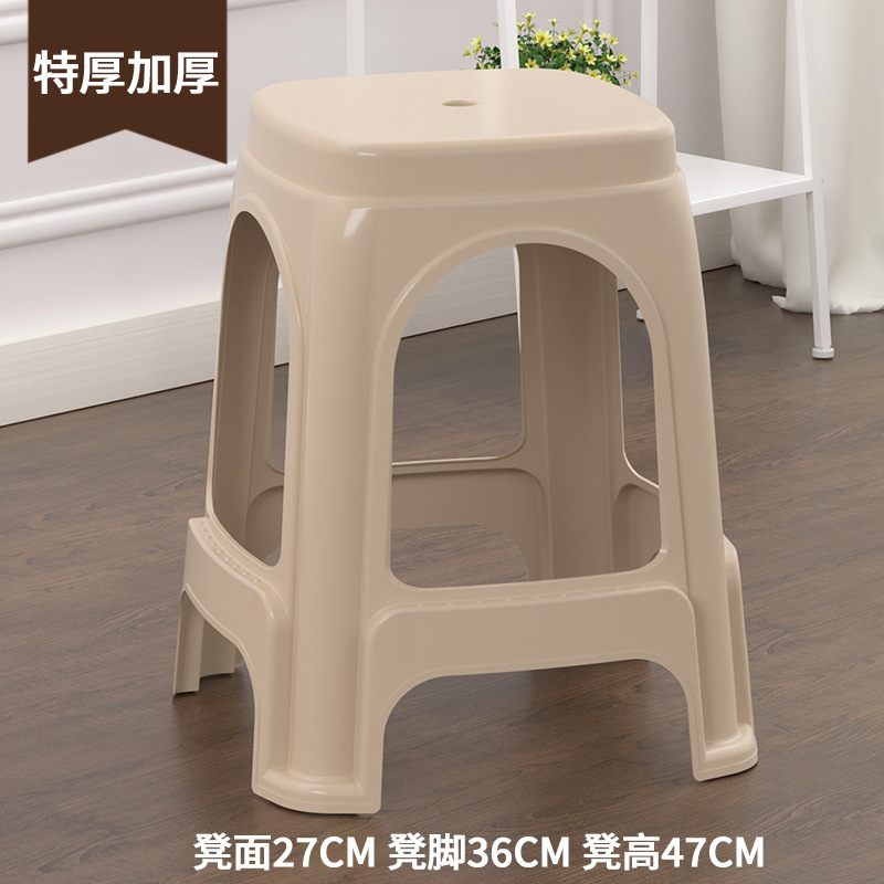 Утолщенный пластиковый табурет для домашнего использования, прочная и долговечная пластиковая скамейка для взрослых, журнальный столик, высокий табурет, небольшой табурет, штабелируемый.