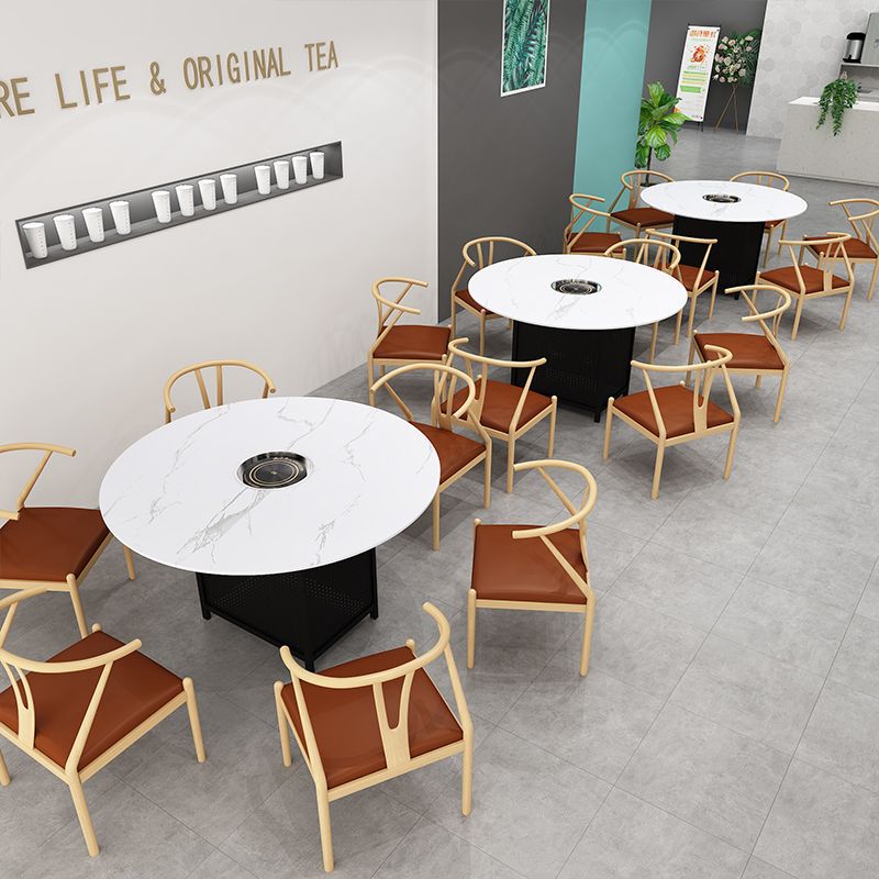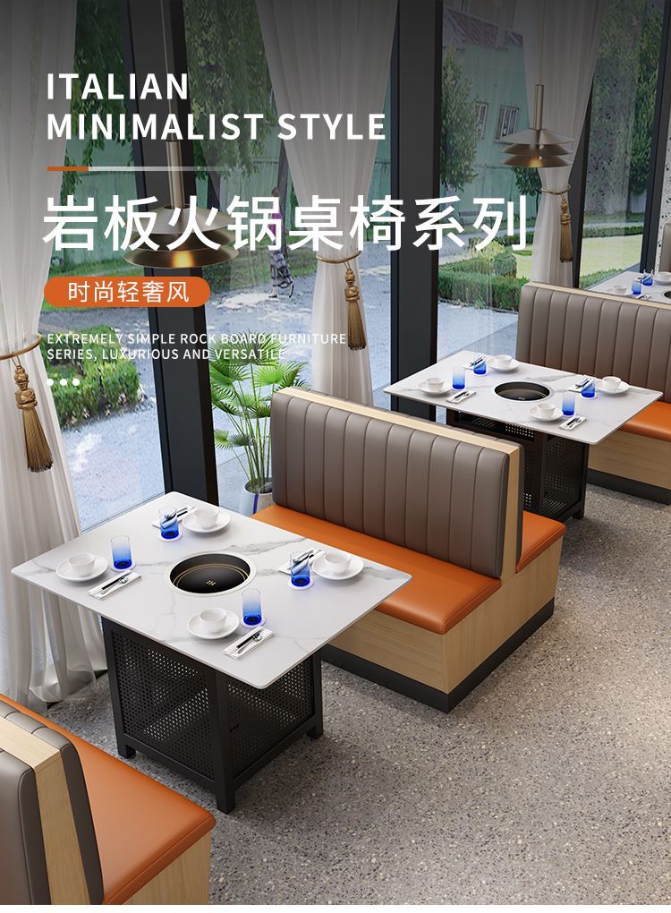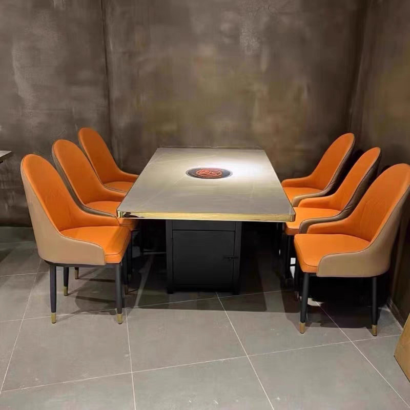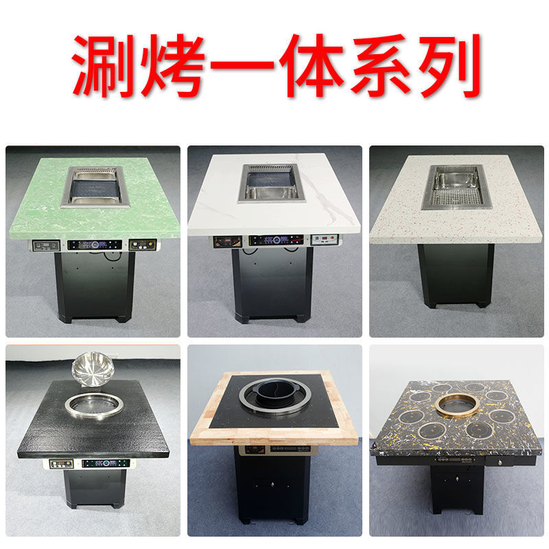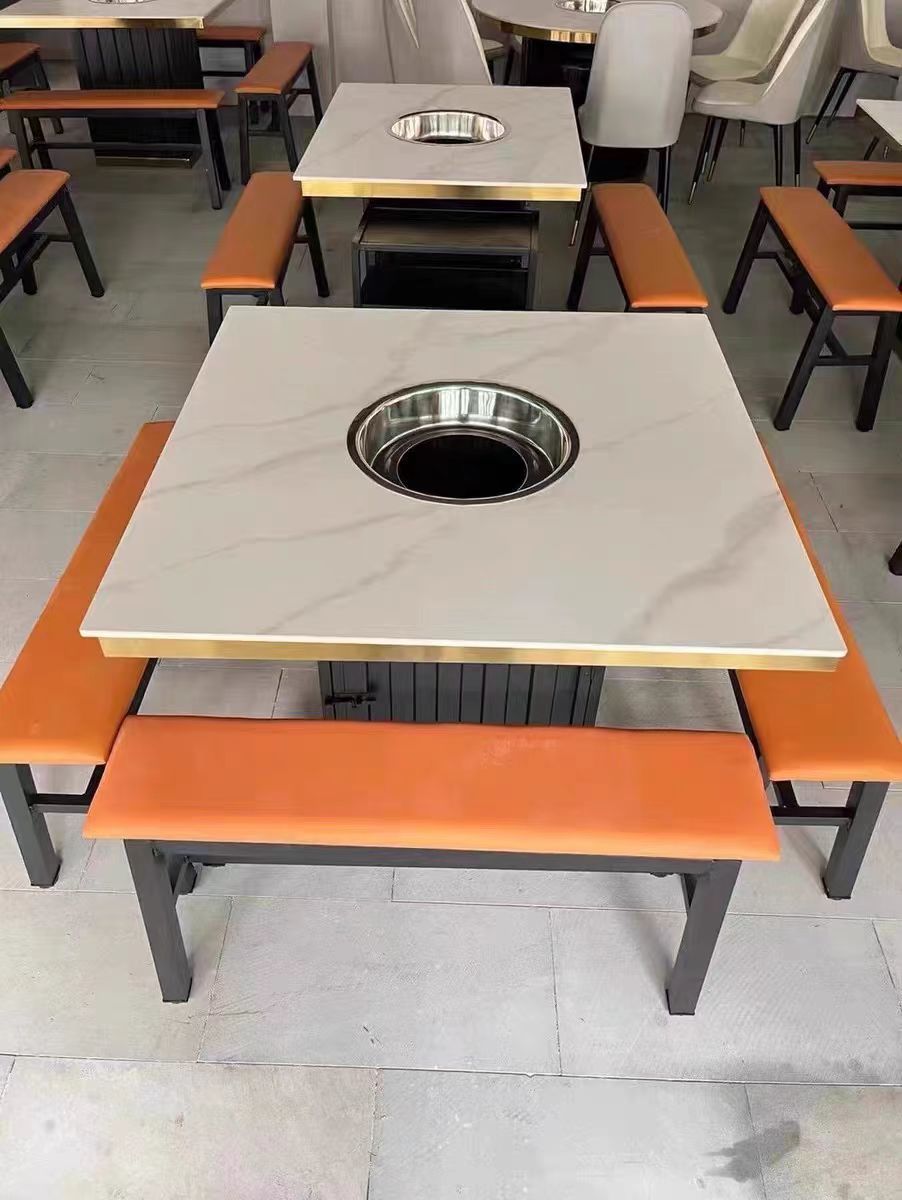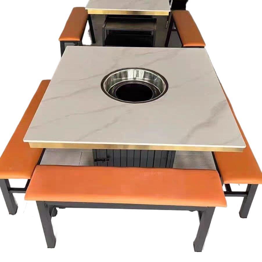Стол для горячего горшка из сланцевого мрамора, индукционная плита, гриль и шабу-шабу, коммерческая корейская газовая плита «все в одном», бездымный стол для барбекю и стулья