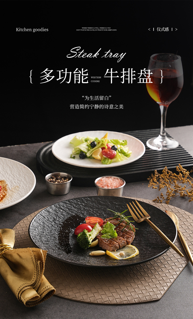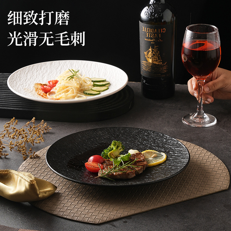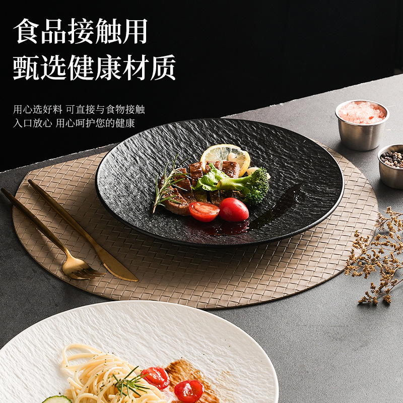 Пластиковая тарелка с каменным узором из полипропилена, доступная роскошная черно-белая тарелка для стейка, тарелка для западной еды, тарелка для пасты, бытовая обеденная тарелка с имитацией камня