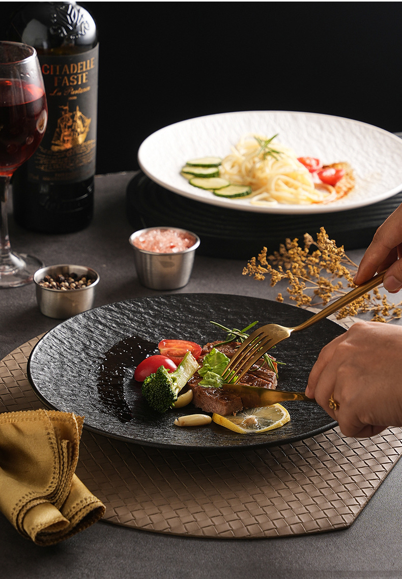 Тарелка для стейка с каменным узором [черная] 20 см; Тарелка для стейка с каменным узором [черная] 25 см; Тарелка для стейка с каменным узором [черная] 30 см; Тарелка для стейка с каменным узором [белая] 20 см; Тарелка для стейка с каменным узором [белая] 25 см; Тарелка для стейка с каменным узором [белая] 30 см; Тарелка для стейка с каменным узором [черная] 15 см; Тарелка для стейка с каменным узором [белая] 15 см