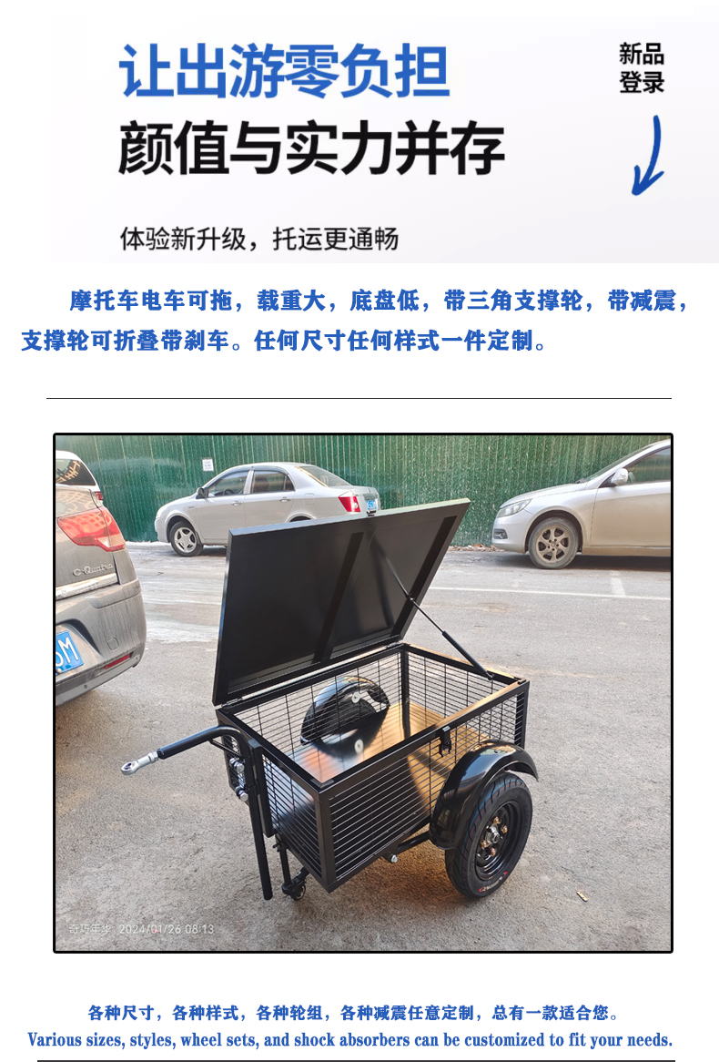 Подходит для модного нового подвесного ведра, электрического мотоцикла, велосипеда, заднего маленького прицепа для уличной торговли и кемпинга.